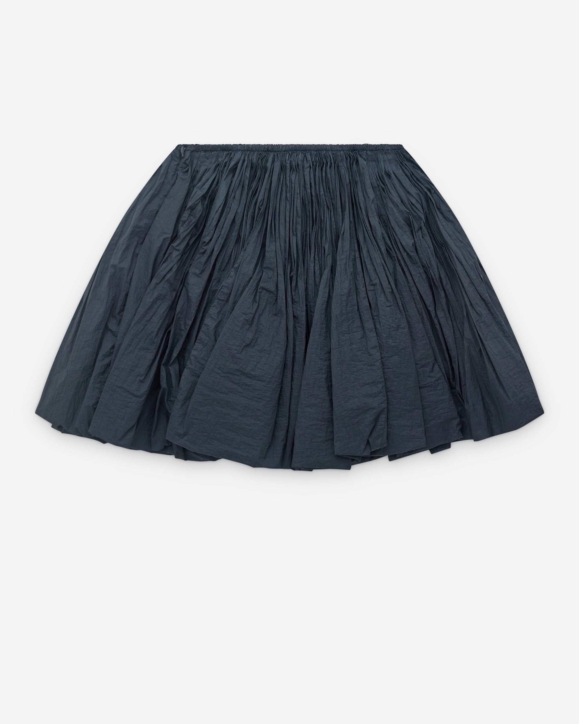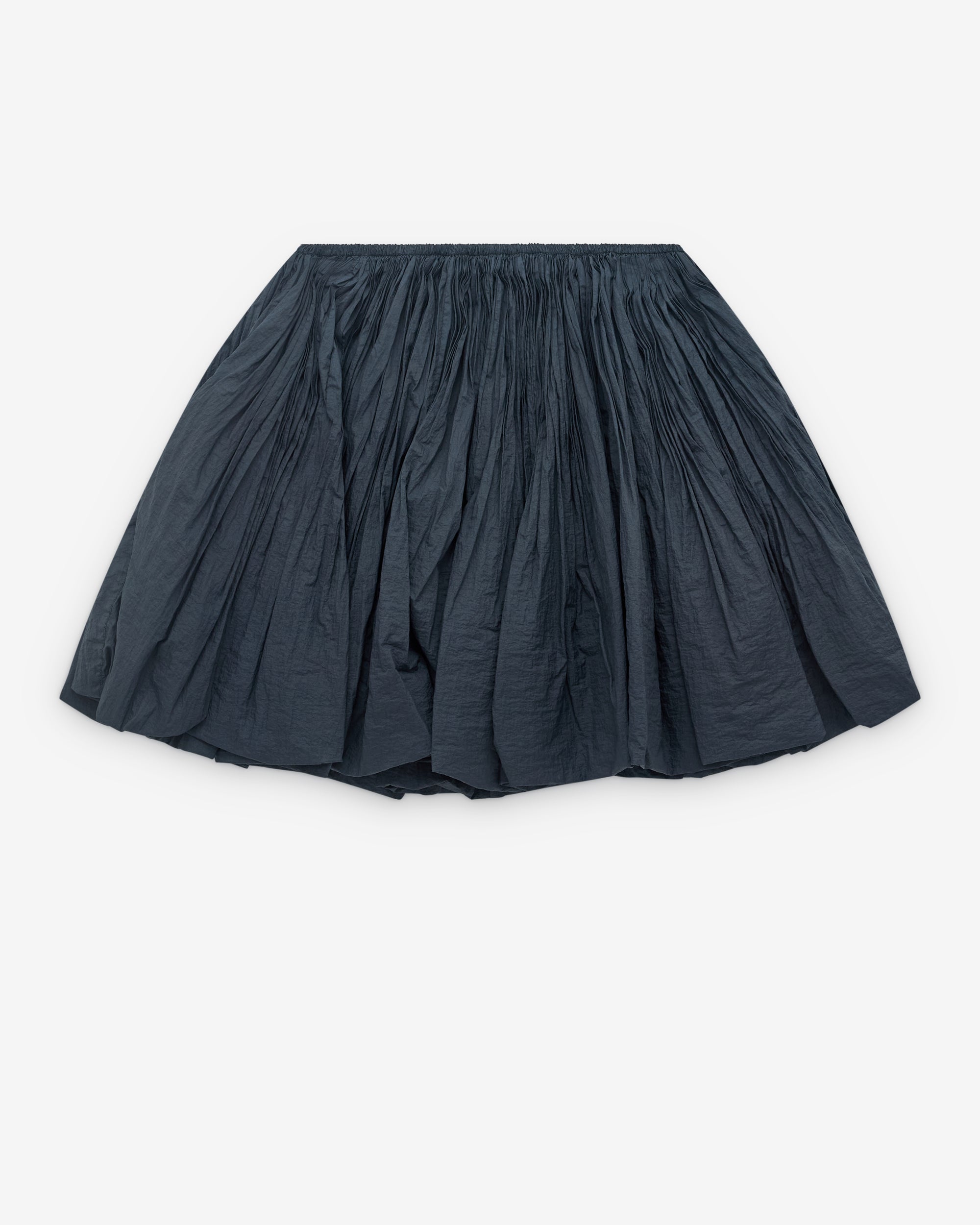 Short bubble skirt in soft nylonElasticated waistbandGathered hemlineSide seam pocketsFlare cut