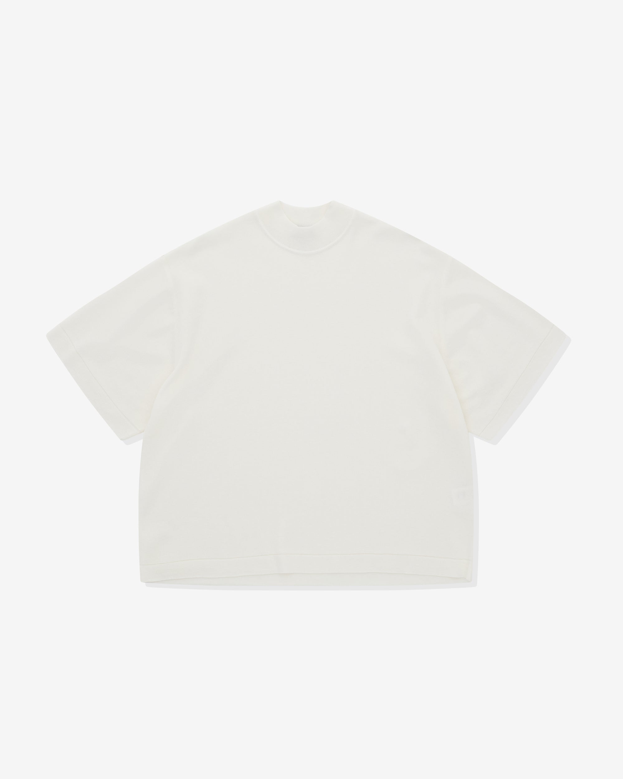 T-shirt knitted from light weight cottonMock neckSquare short sleevesLoose fit