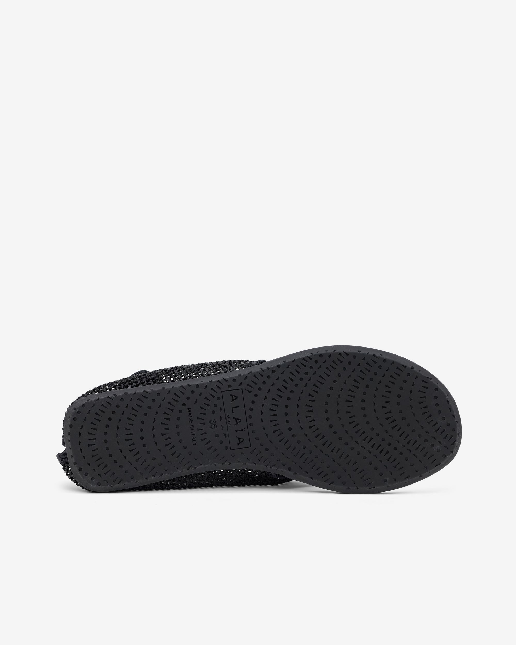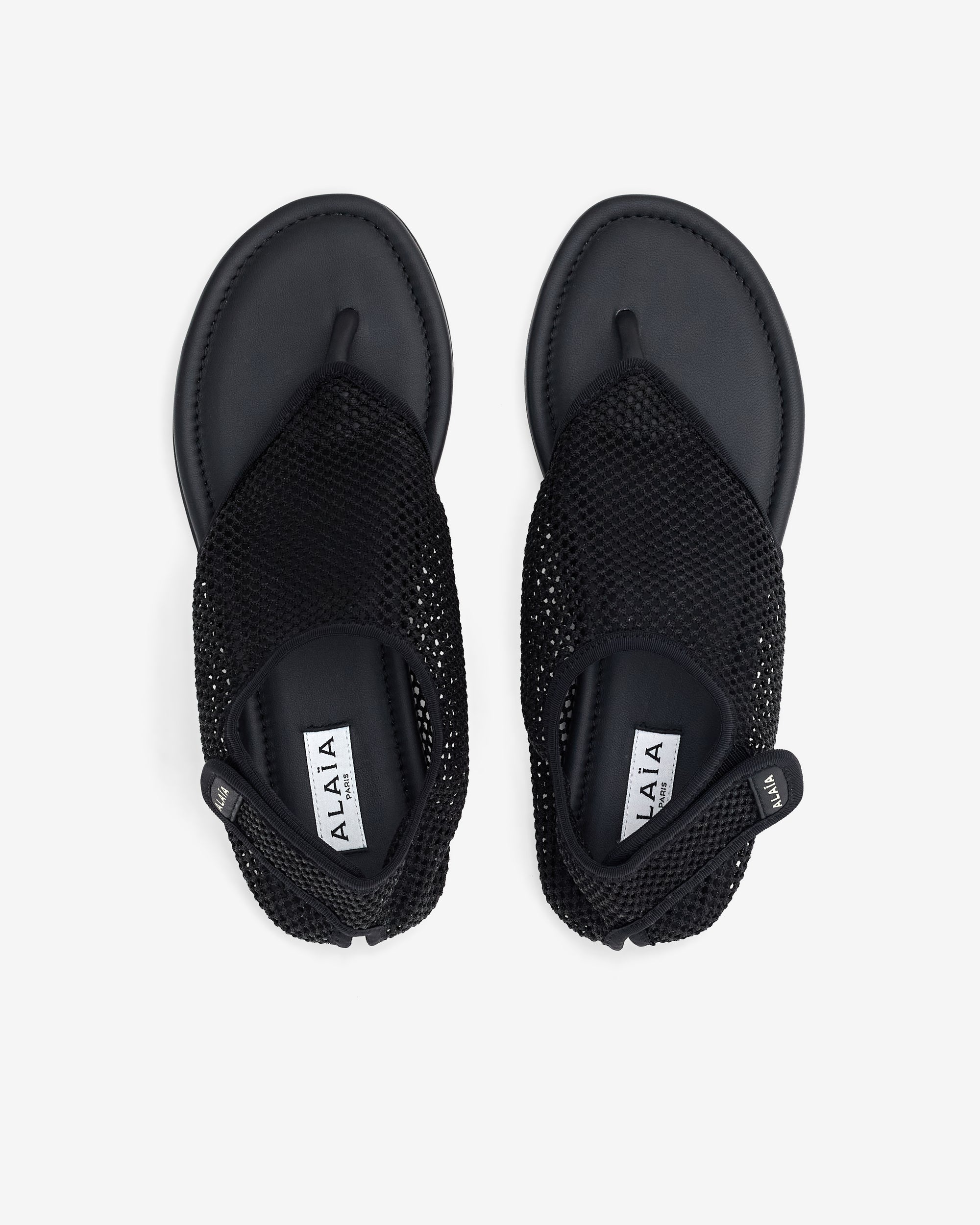 Naked feel thong sandalsHook-and-loop front closureVertical Alaïa logo at the backRubber soleFishnet textile upper & leather insole