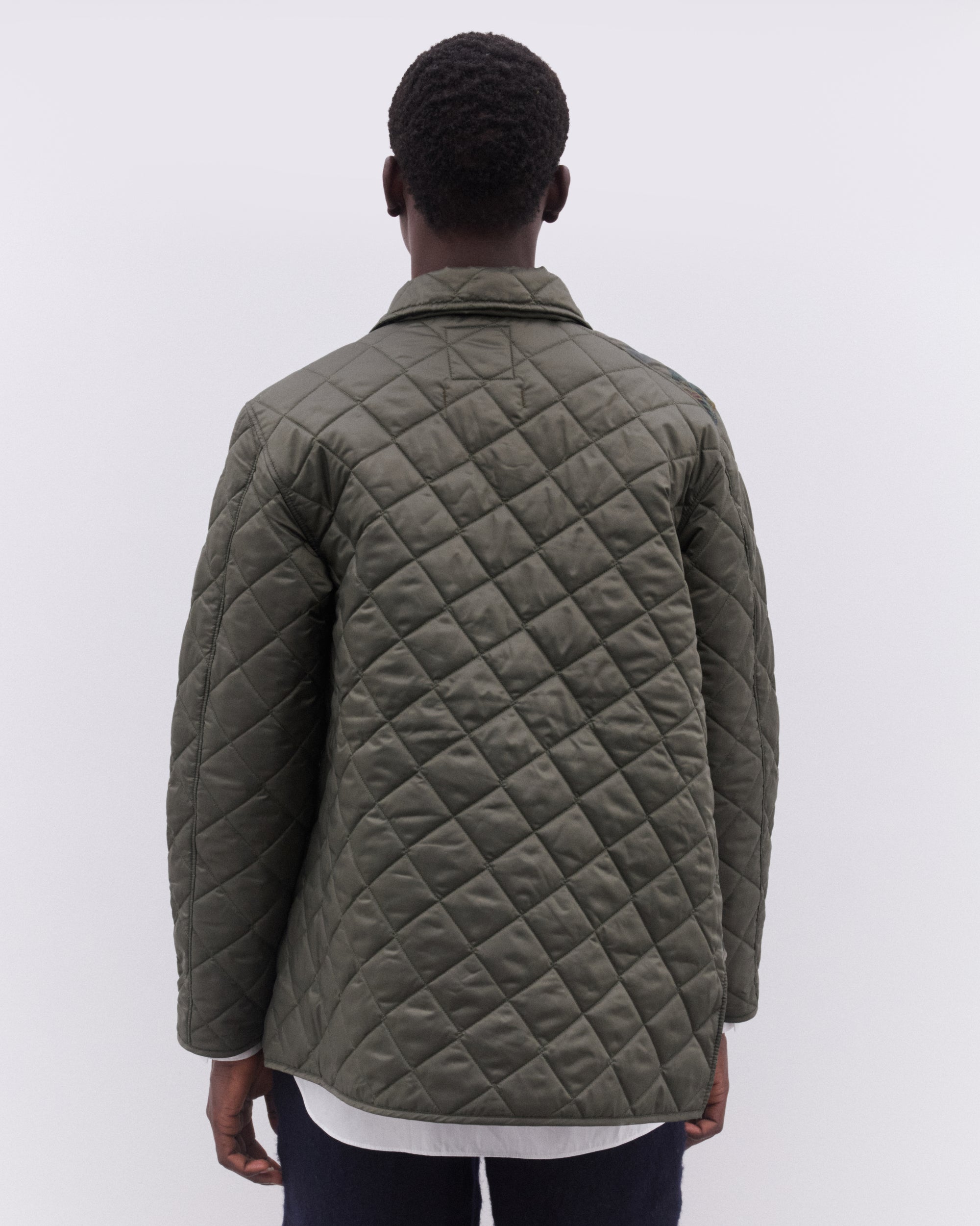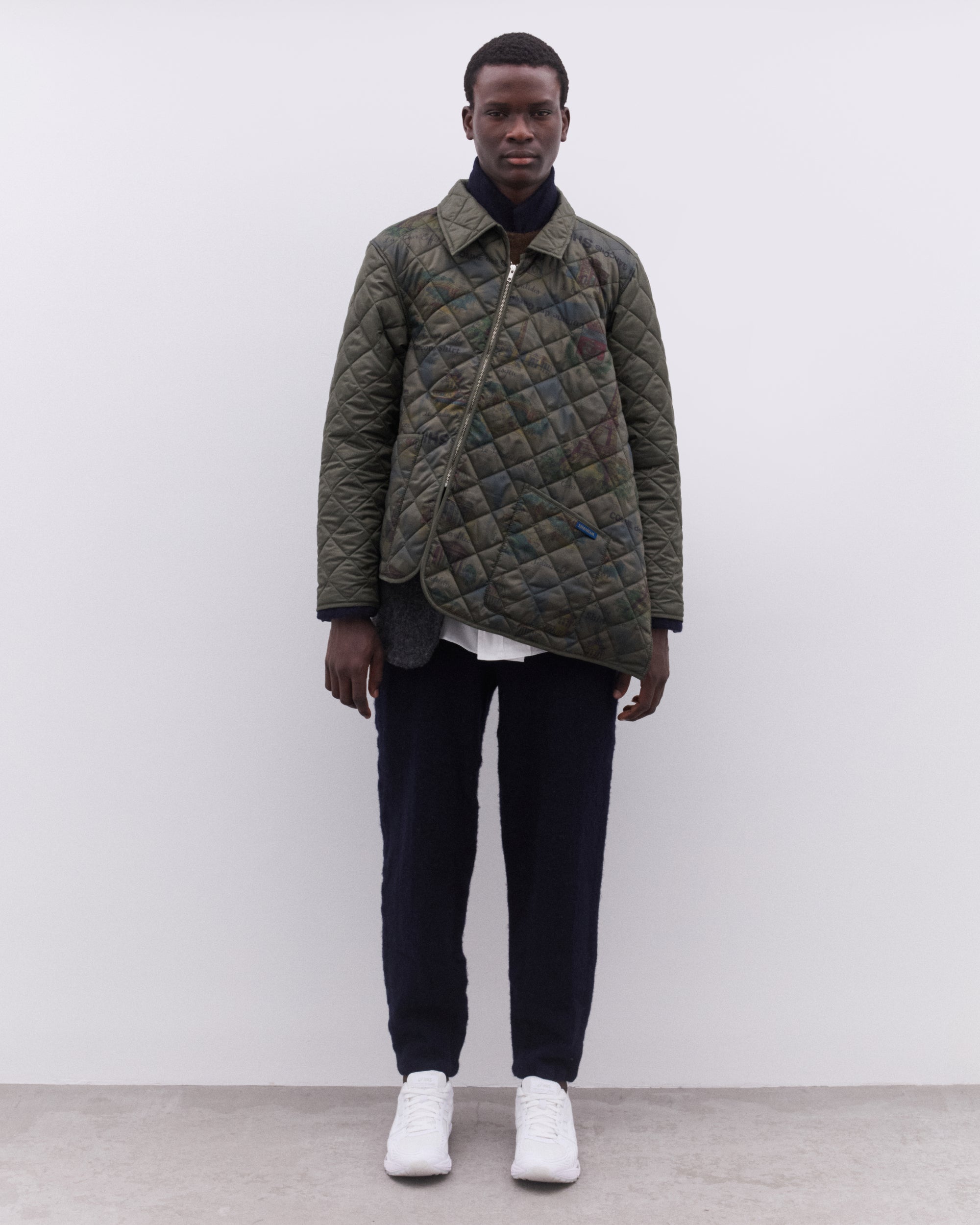 Made in collaboration with LavenhamPoint collarAsymmetric constructionZip fasteningParisian landmark printPatch pocketsQuilted100% PolyesterMade in The United Kingdom