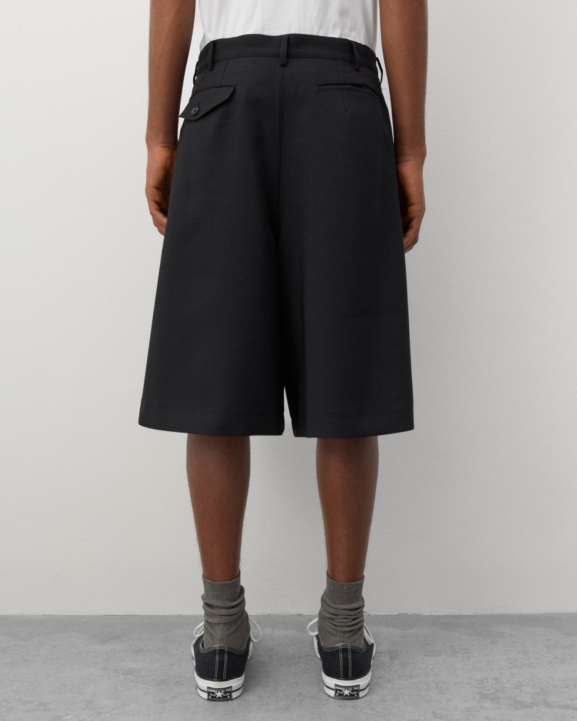 Button close waist, zip flySlip pocketsAdjustable zip side hemKnee length