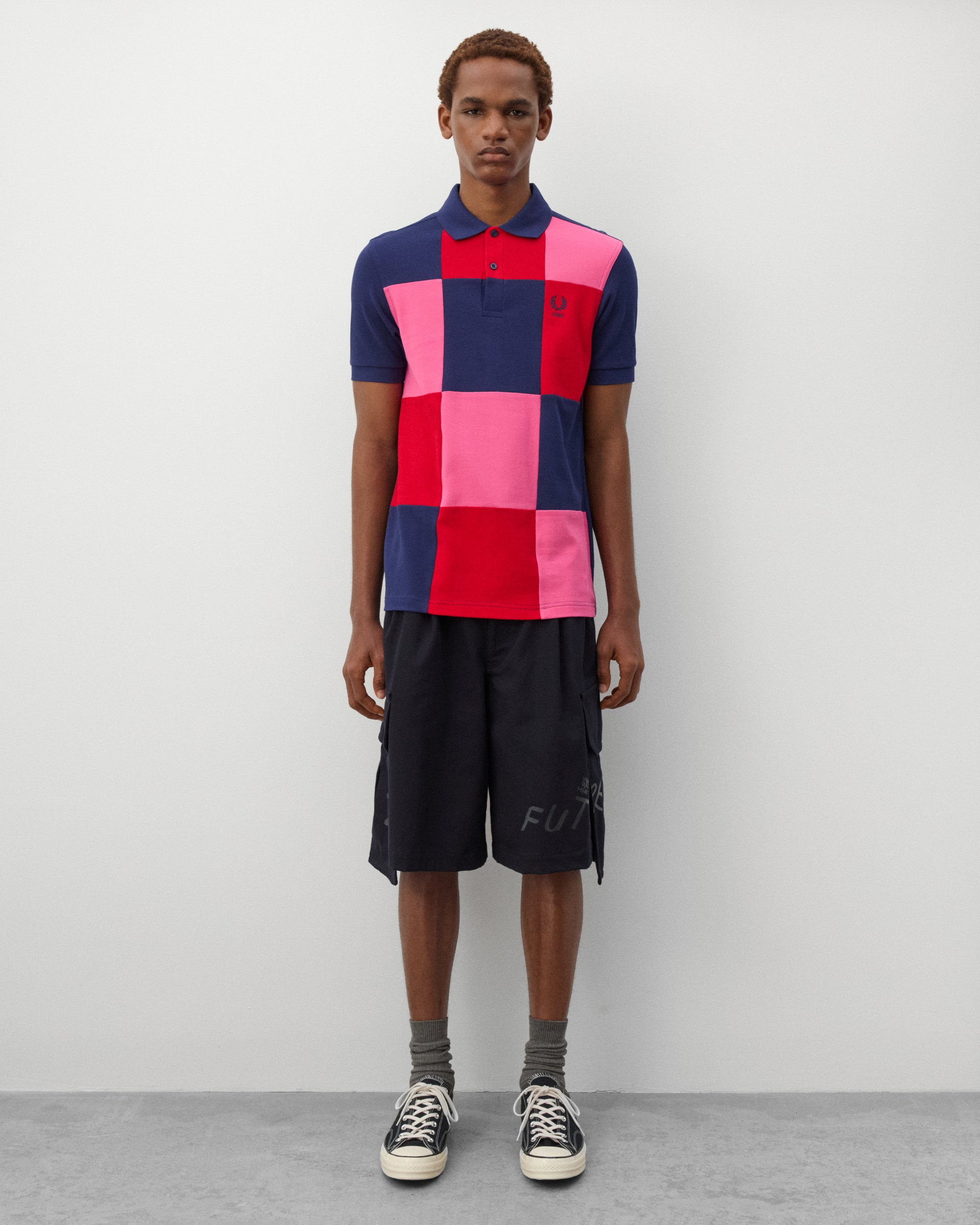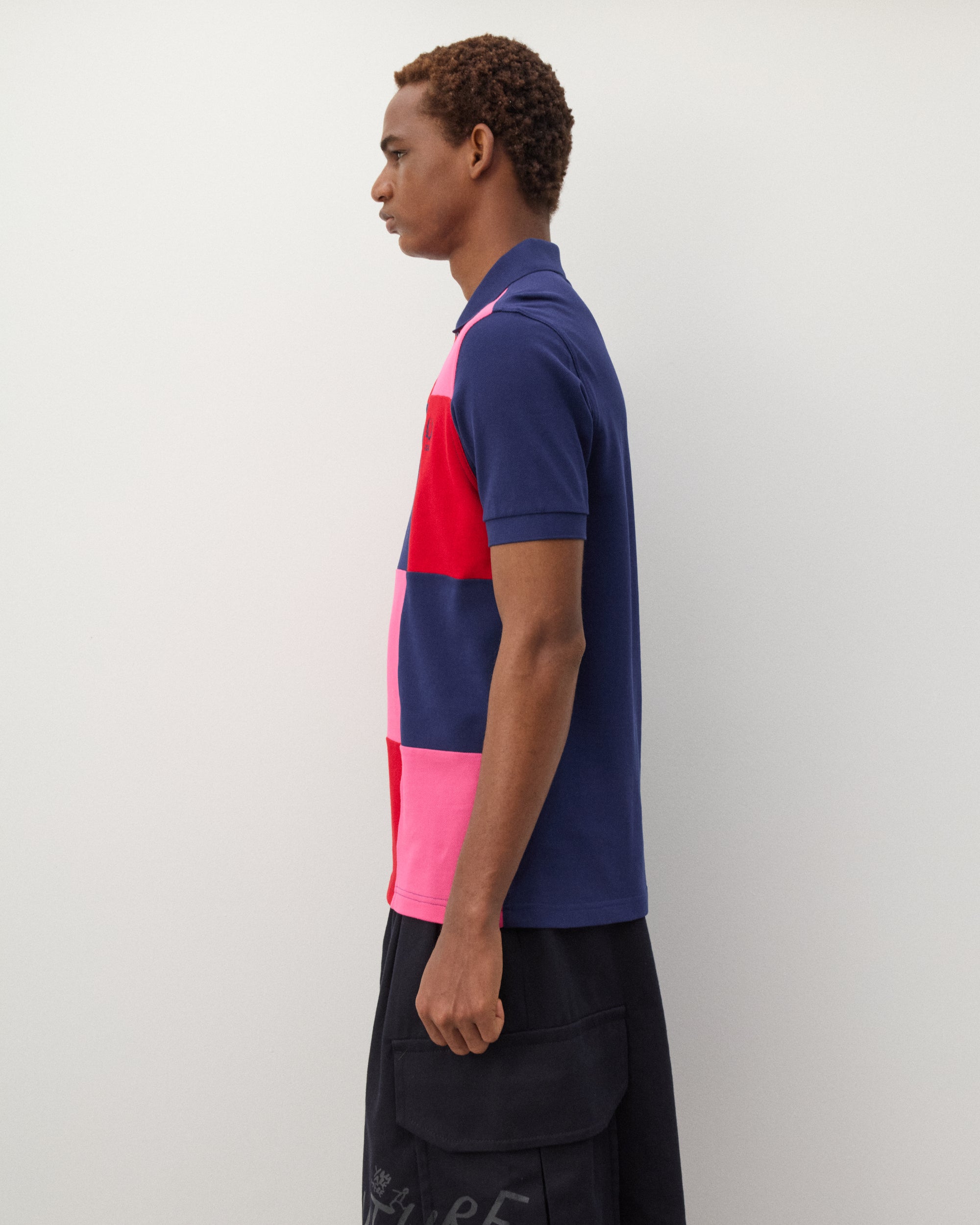 Made in collaboration with Fred PerryWing tipped collar and cuffsEmbroidered chest logoColour block panelsWide short sleeves100% CottonMade in China