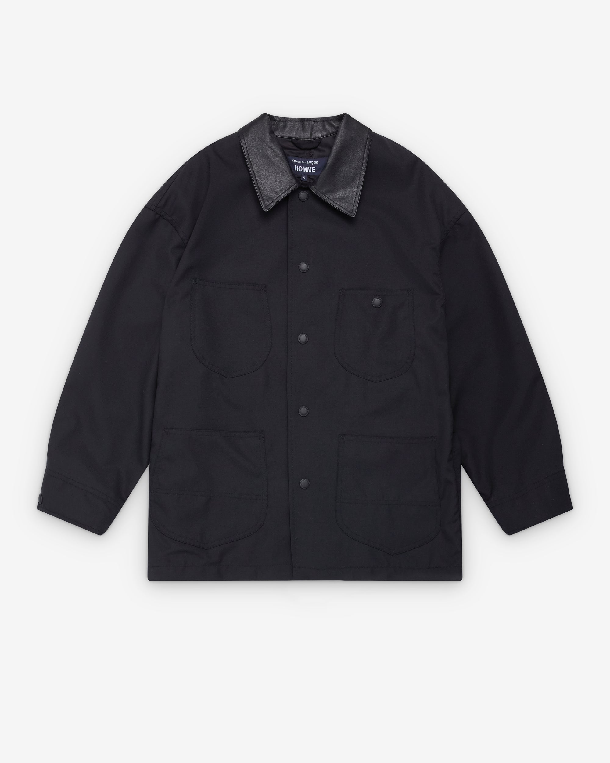 Four front pocketsPop button closureInternal liningBoxy fitSynthetic leather collarButton cuffs
