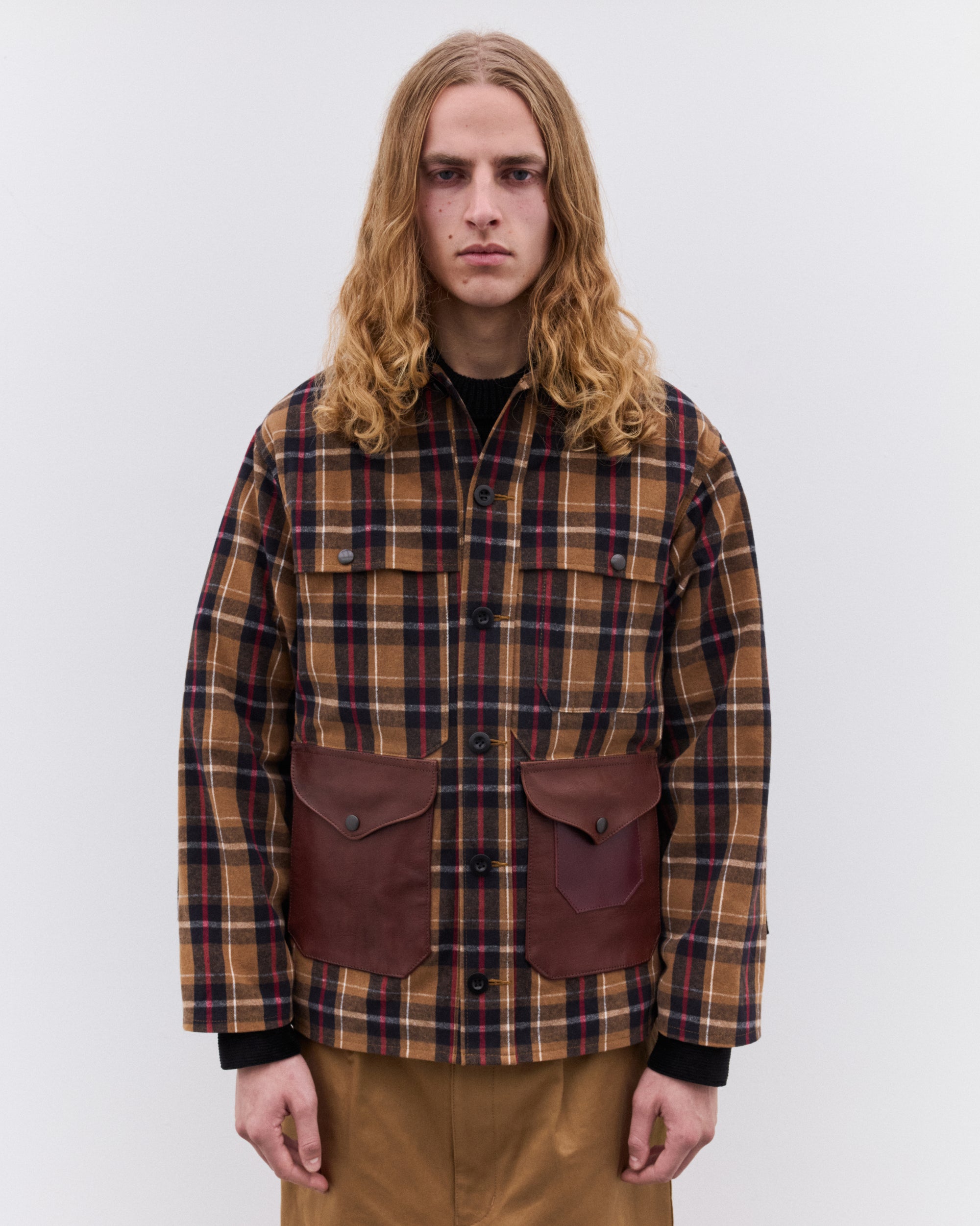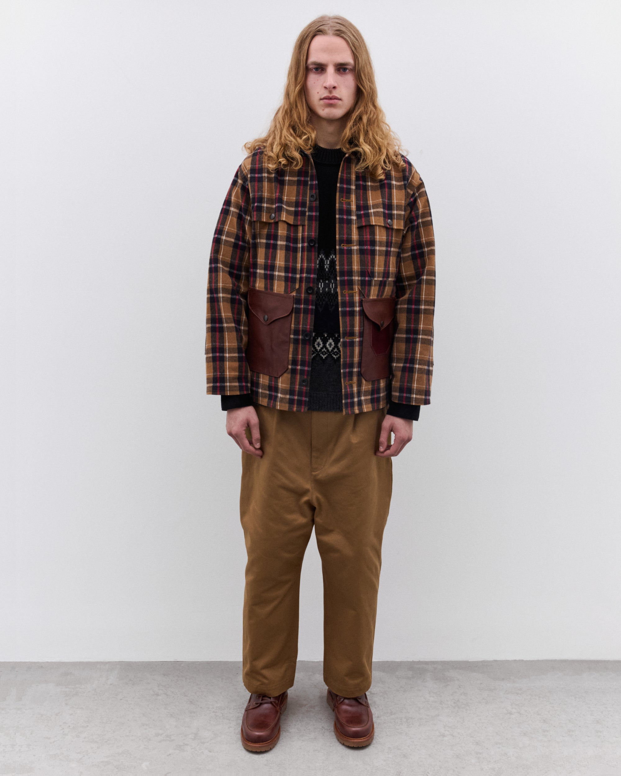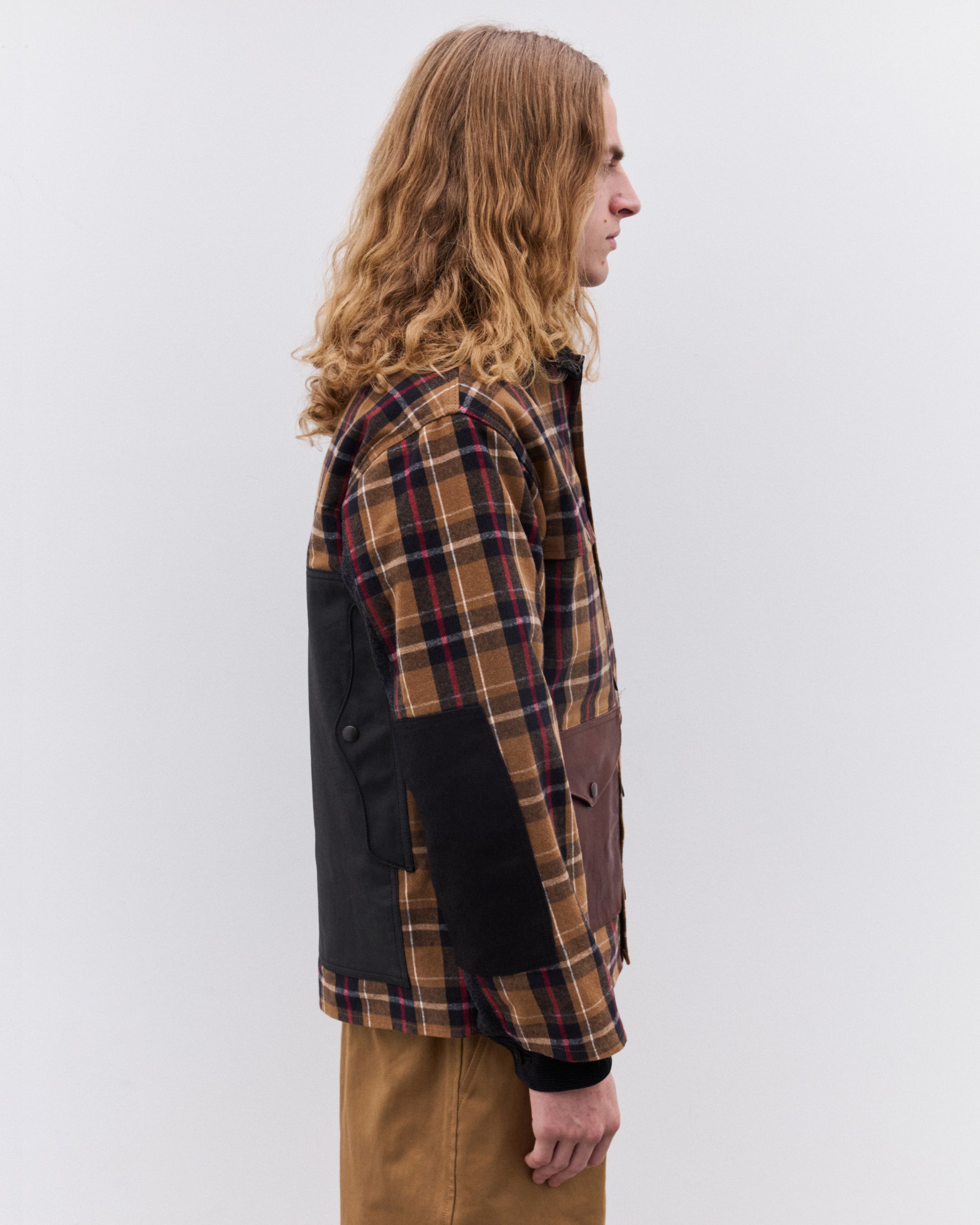 Contrast corduroy collar and cuffsCoated cotton back panel and elbow patchesTwo chest pocketsTwo leather front flap pocketsTwo snap fastened back pocketsButton fastening