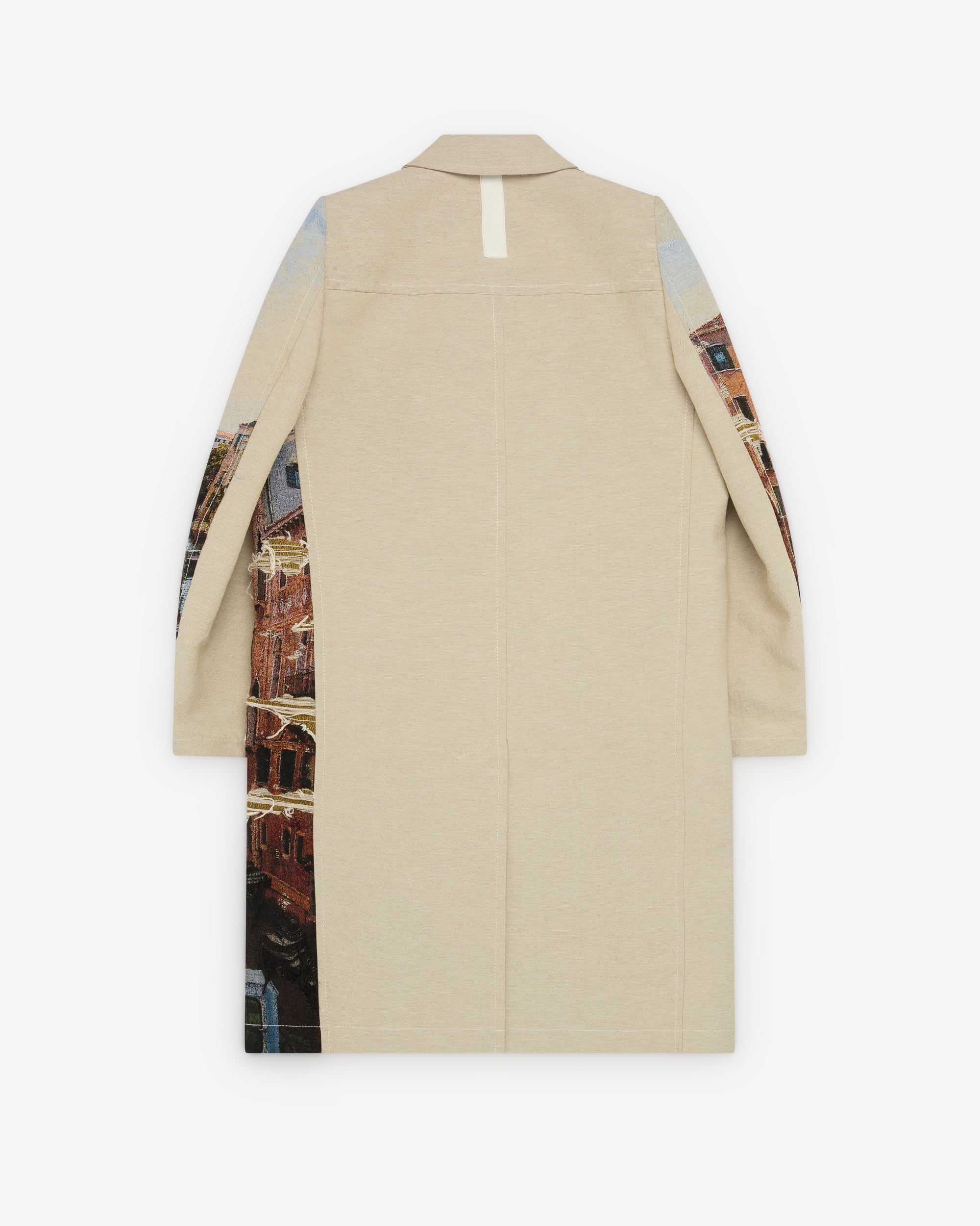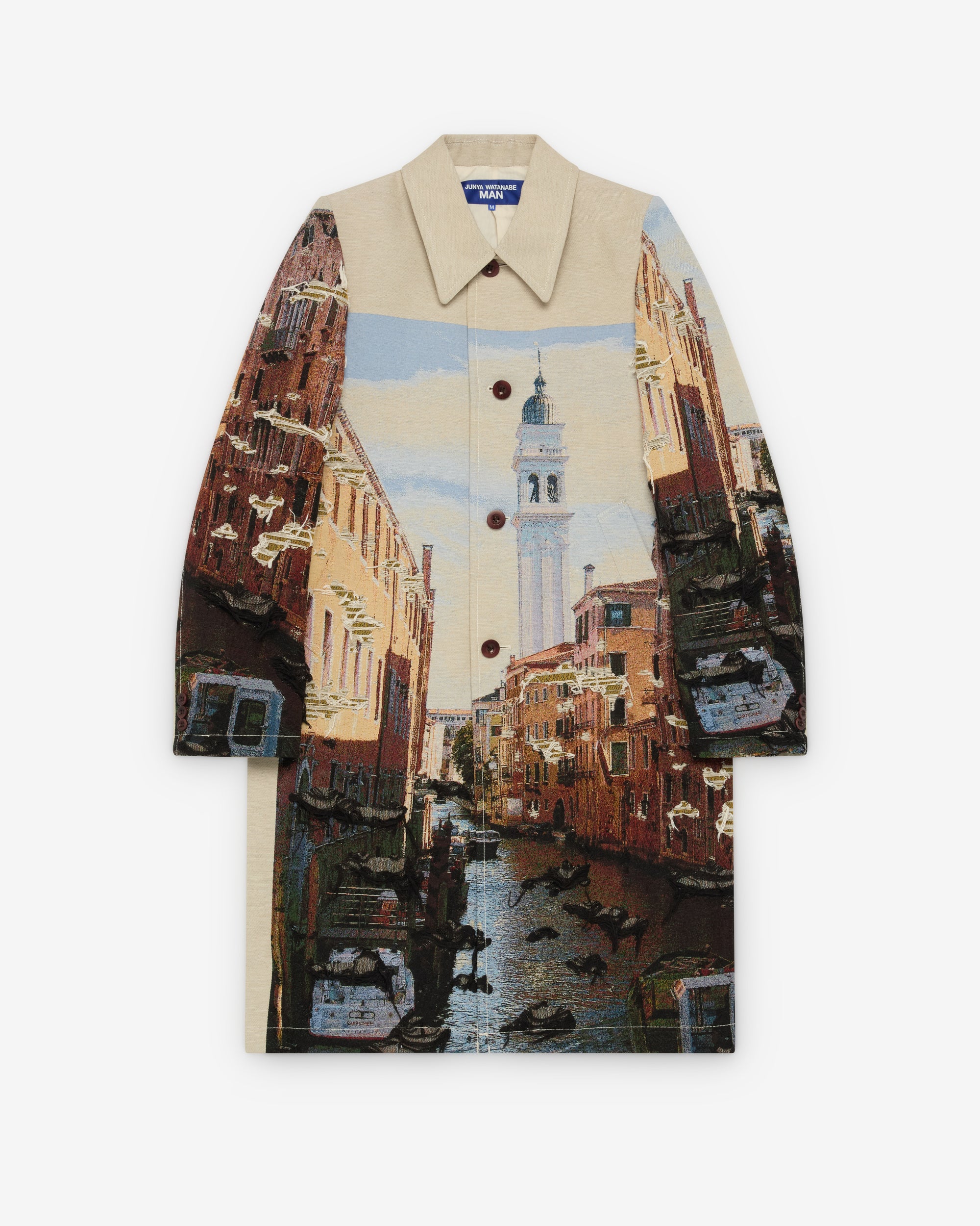 Classic collarSplit rear ventFront button closure Distressed embroidered fabricStructured shoulders