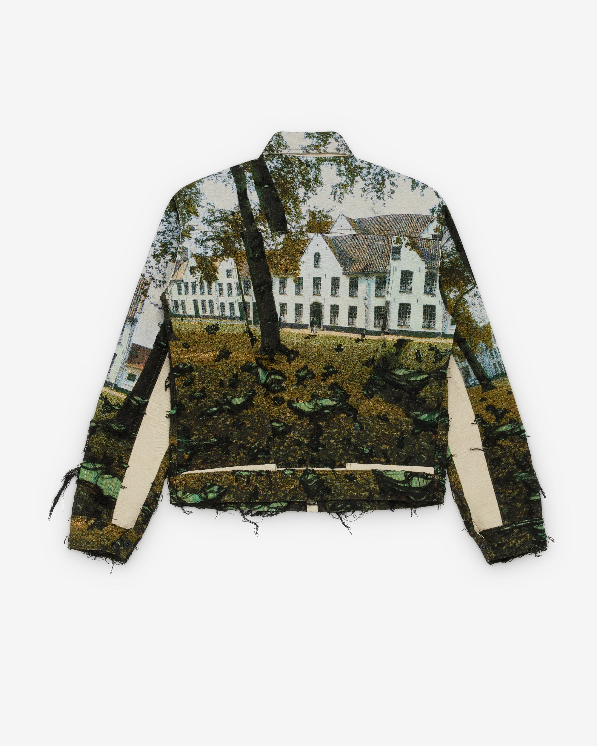 Classic spread collarFront button closureSingle flat close chest pocketDistressed fabricButton close cuffs