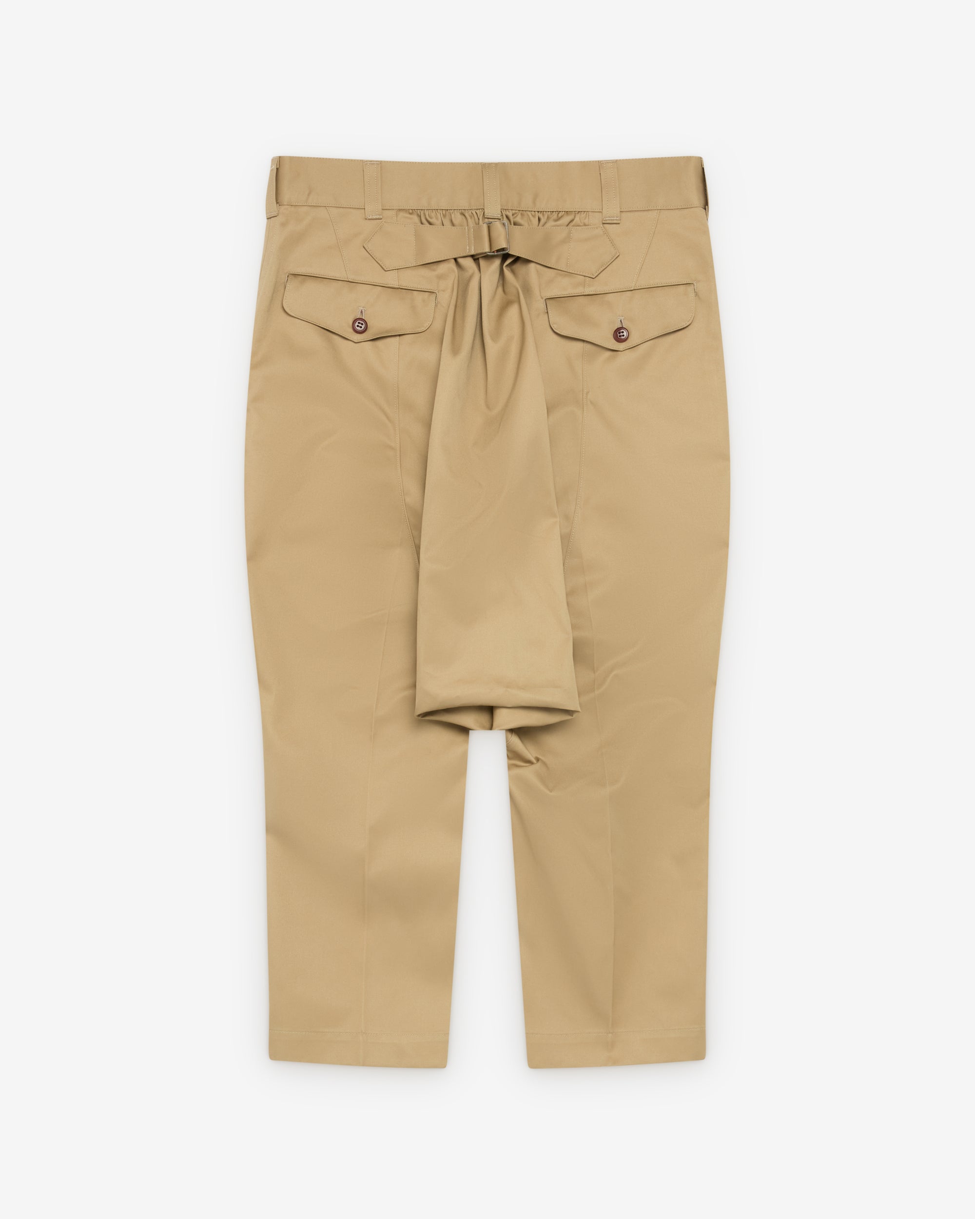 Cropped legFront pleat Button waist, zip flySide seam pocketTwo back pocketsDrop crotch
