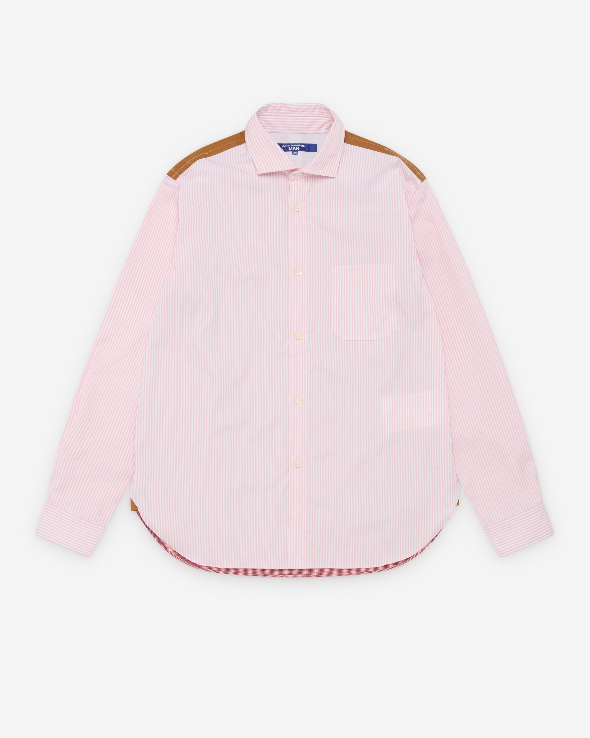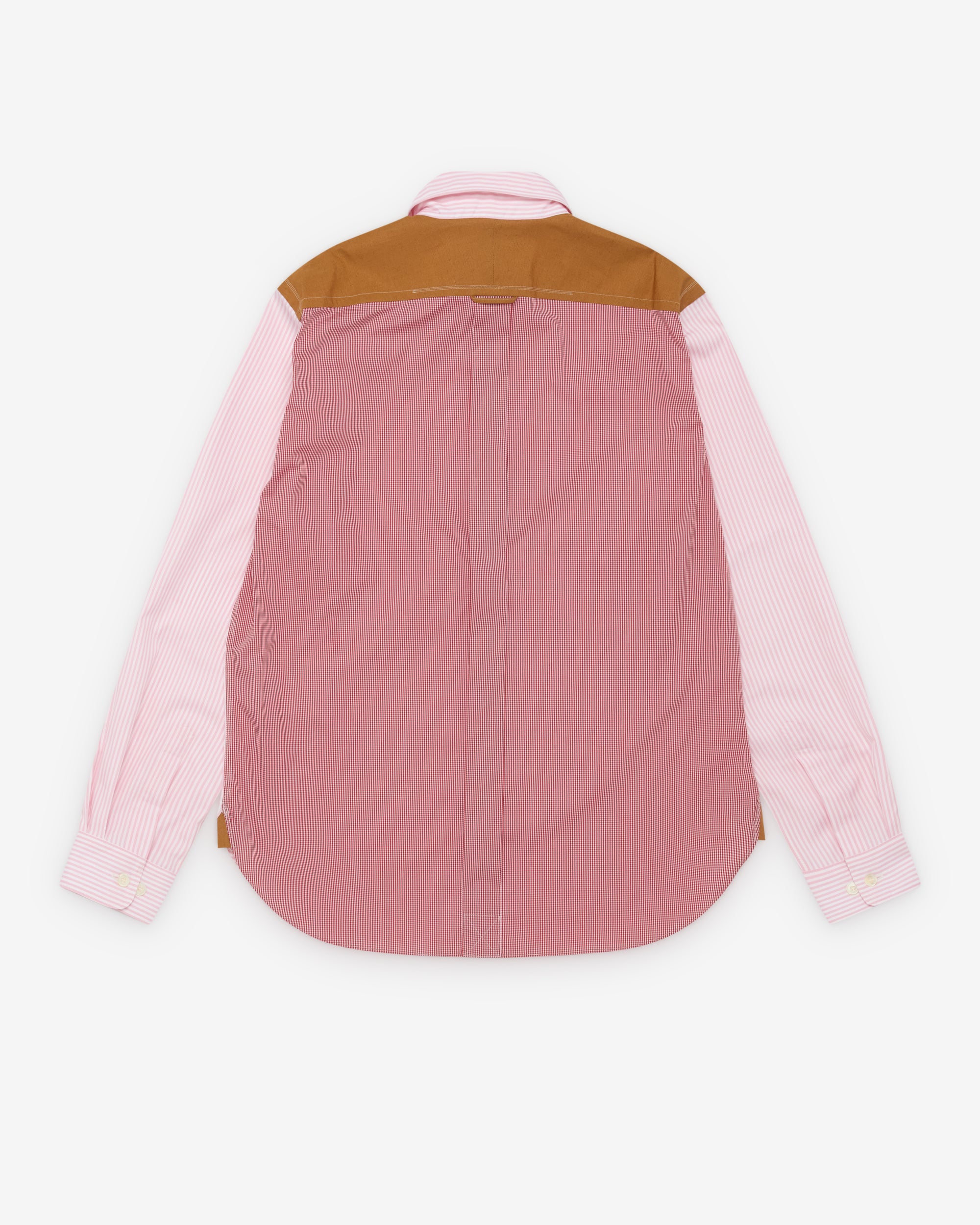 Classic Spread collarChest pocketCurved shirttail hemRear box pleatButton closure at frontButton close cuffsContrast panel at back neckCheck back panel
