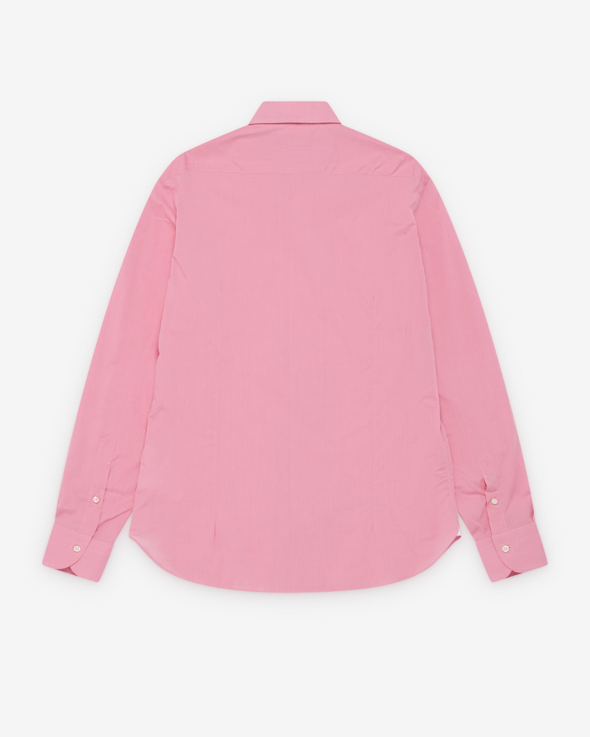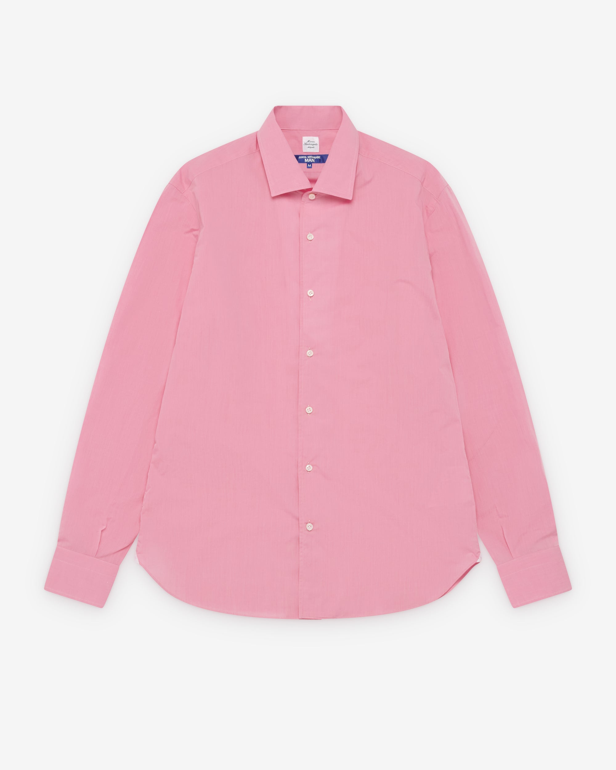 Cutaway collarFront mother of pearl button closureRounded hemSlim fitRear darting