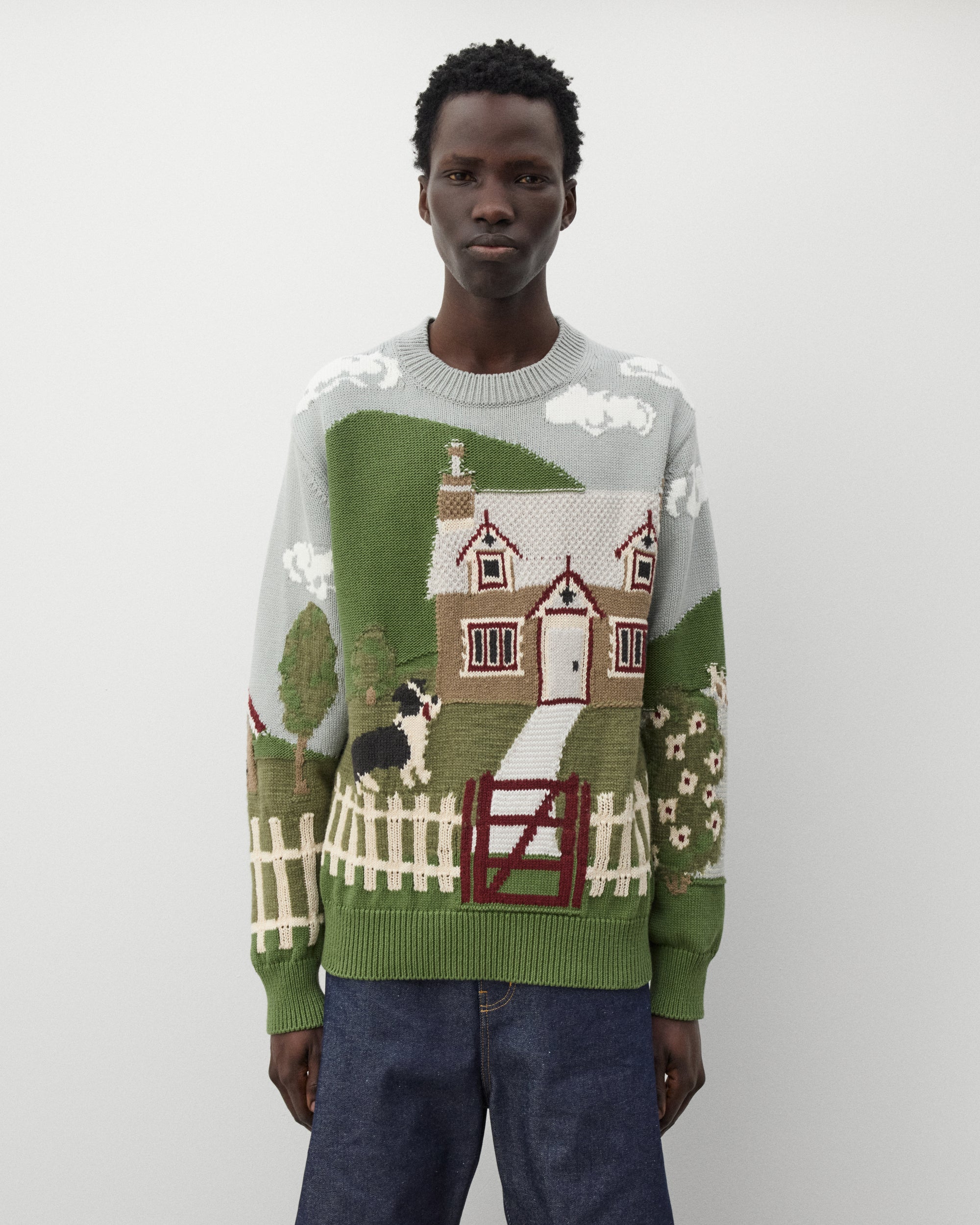Ribbed crew necklineIntarsia graphic knitRegular fitRibbed knit cuffs and hemLong sleeves