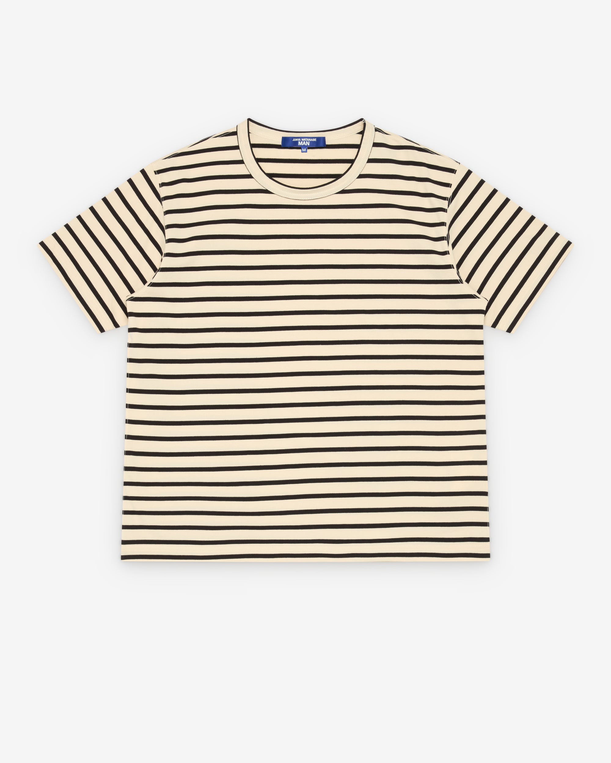Rounded crew necklineShort sleevesStriped knit fabricStraight hem