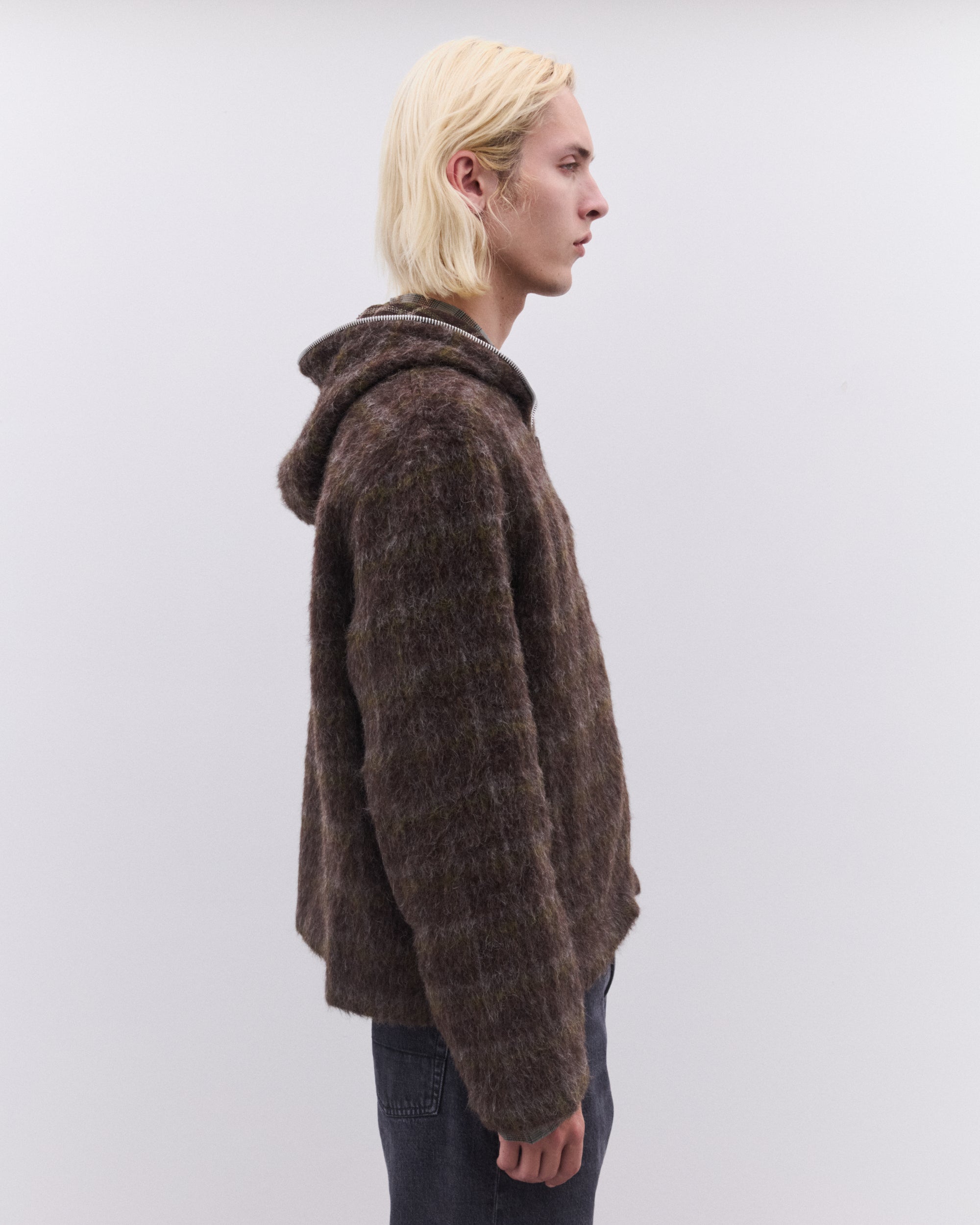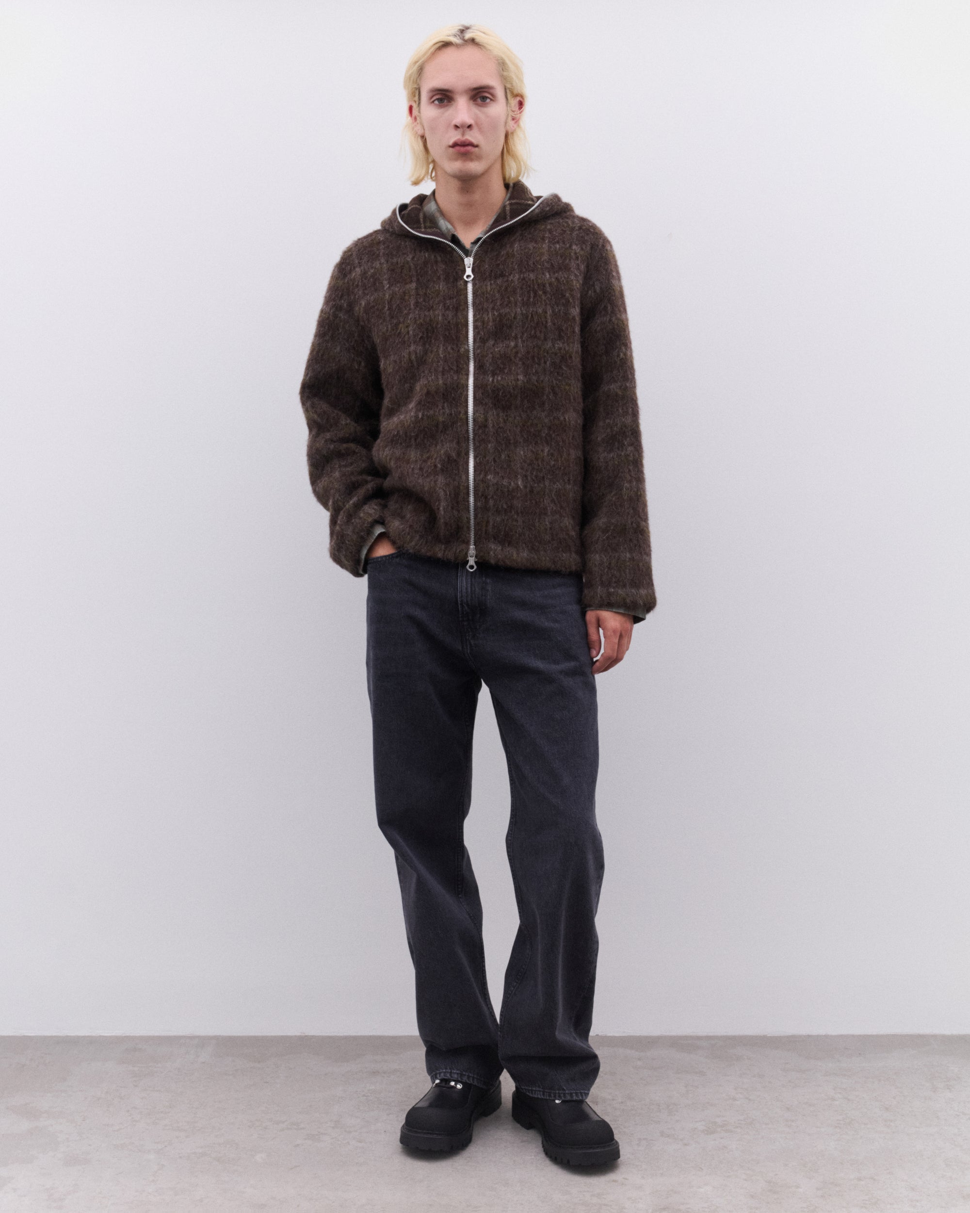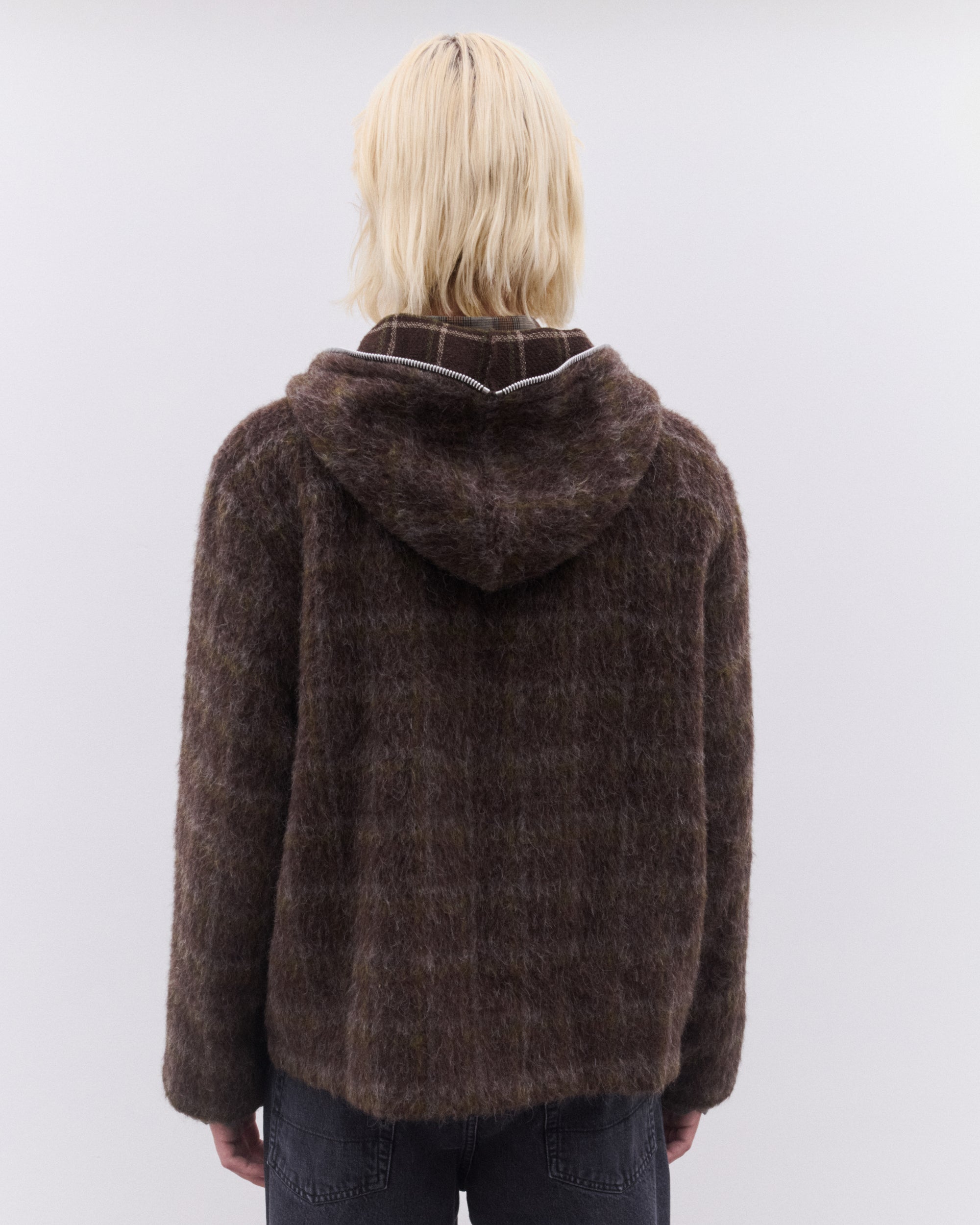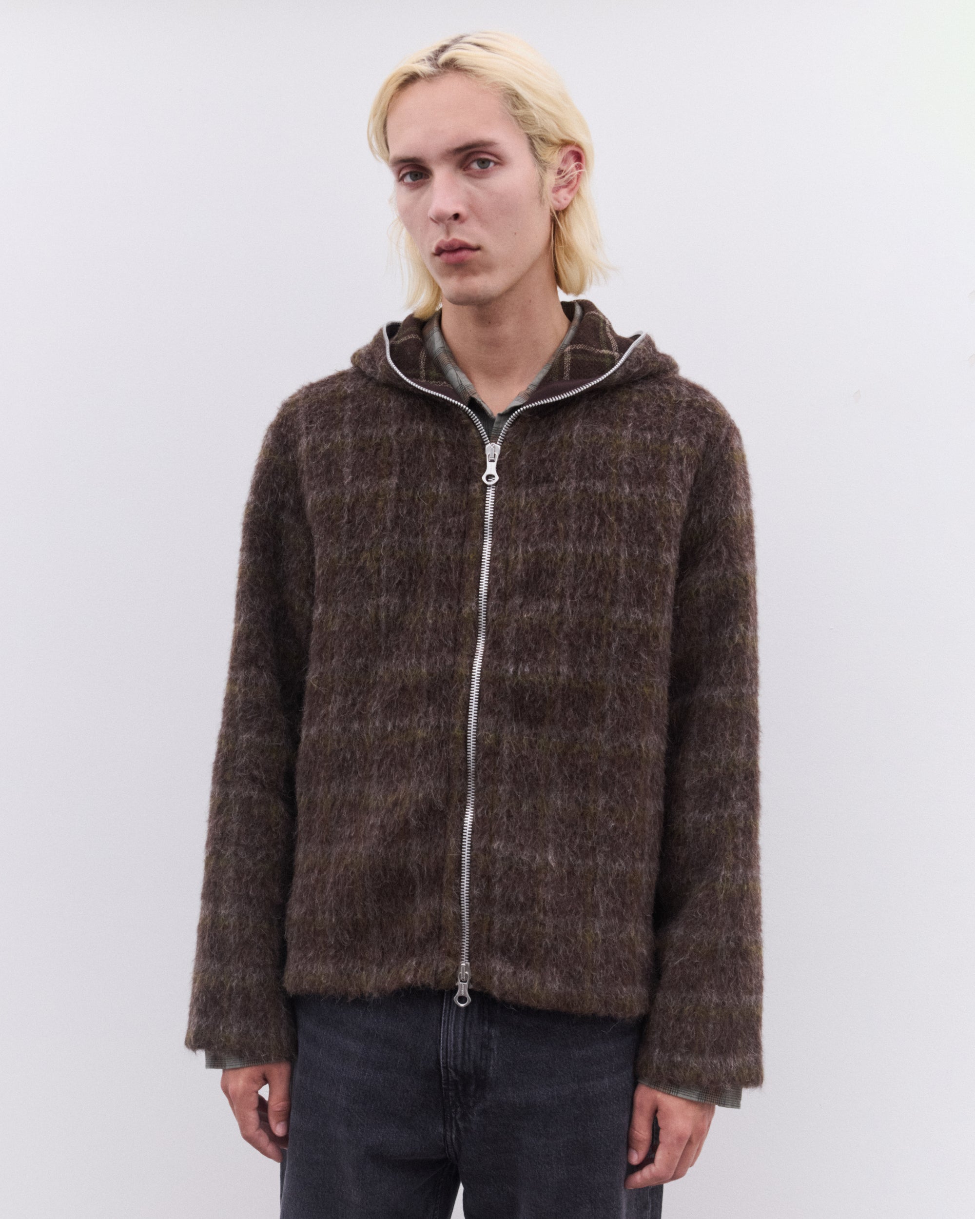 Our Legacy Men’s Full Zip Hood Dorf Check Hairy Wool