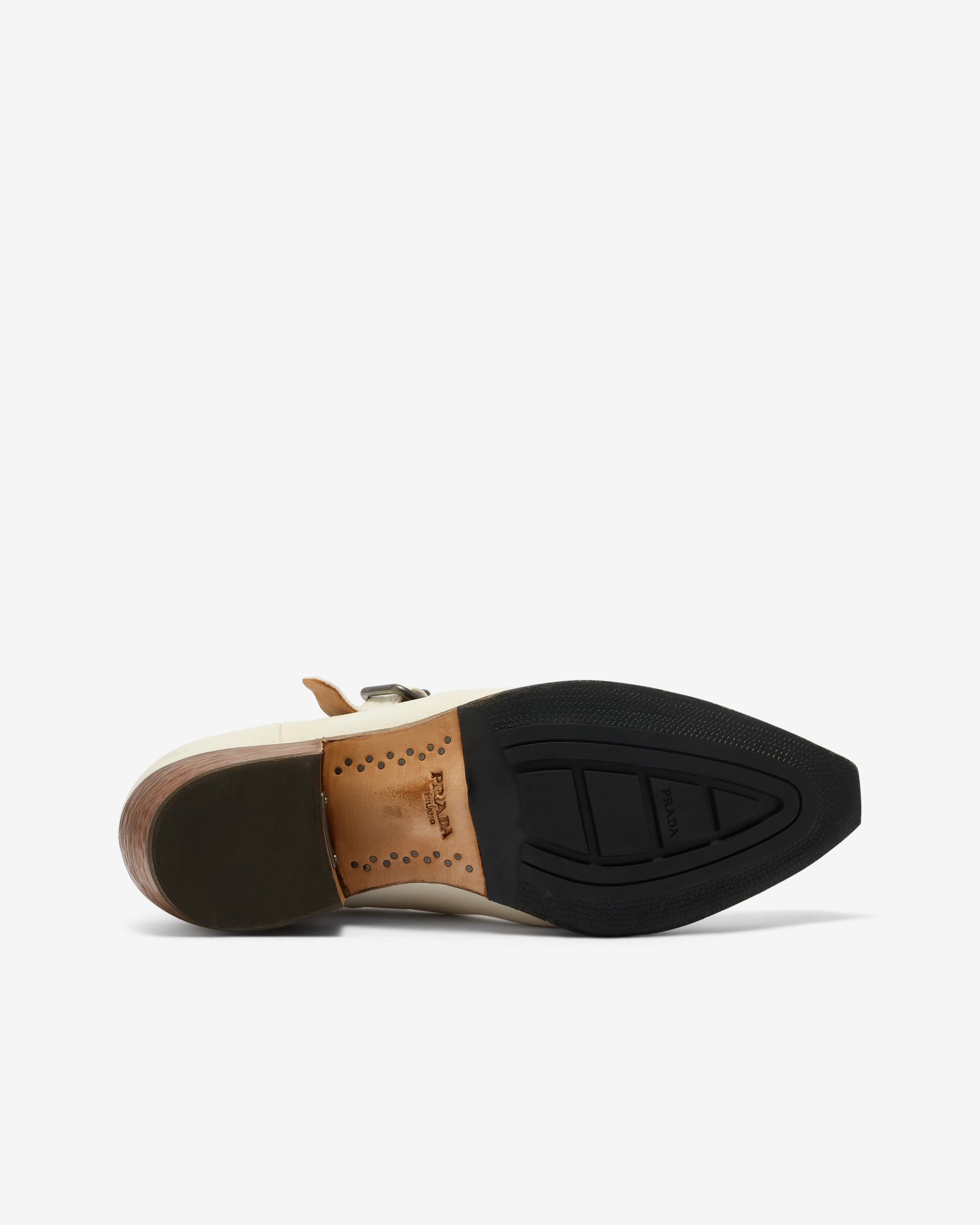 Buckle fasteningUpper with decorative stitchingLeather sole with rubber half-sole and heel layer with hot-stamped logoSole height: 53 mmLeather insole
