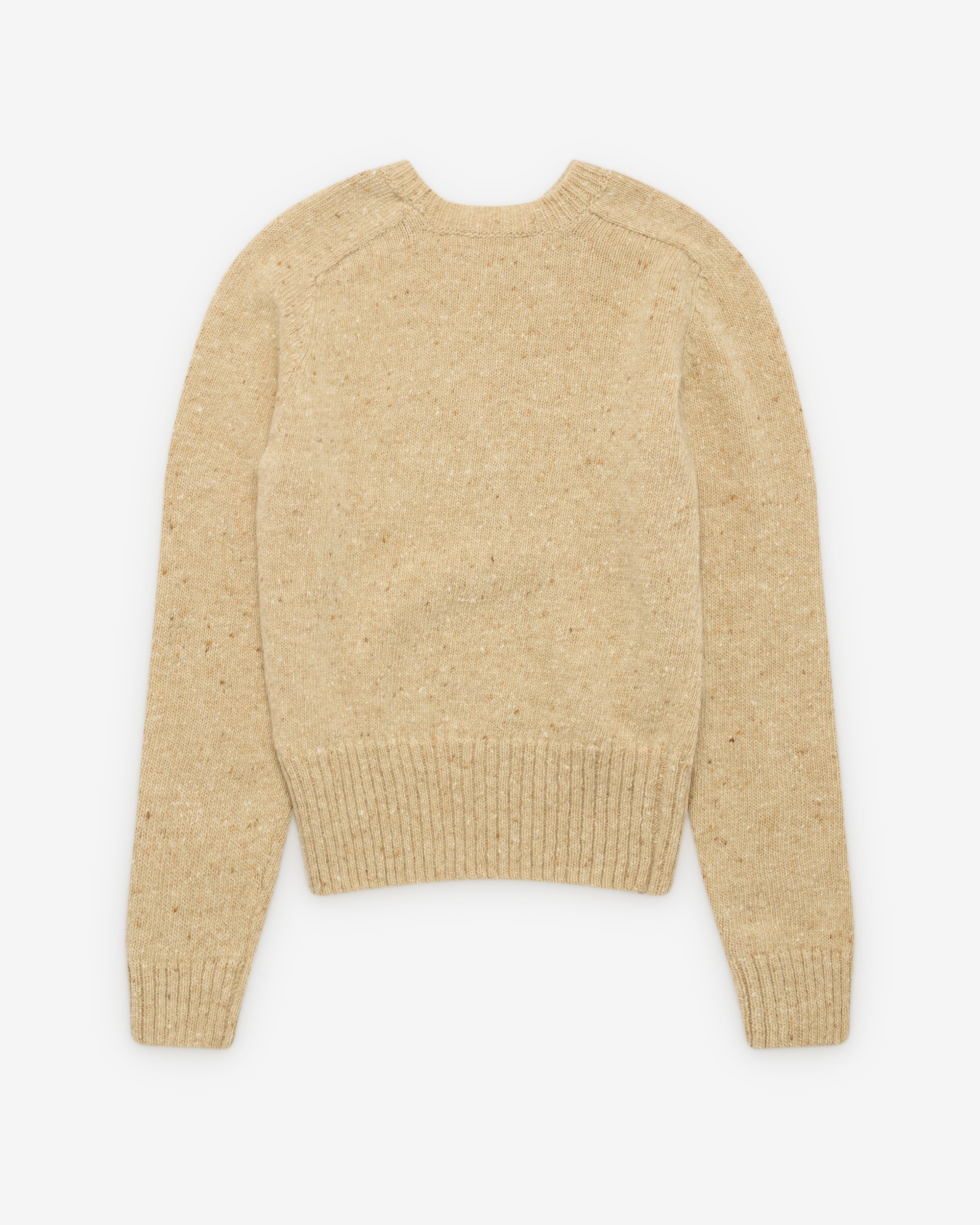 Embroidered throughoutSaddle sleeveCropped fitRib knit trimsHand wovenMelange knit