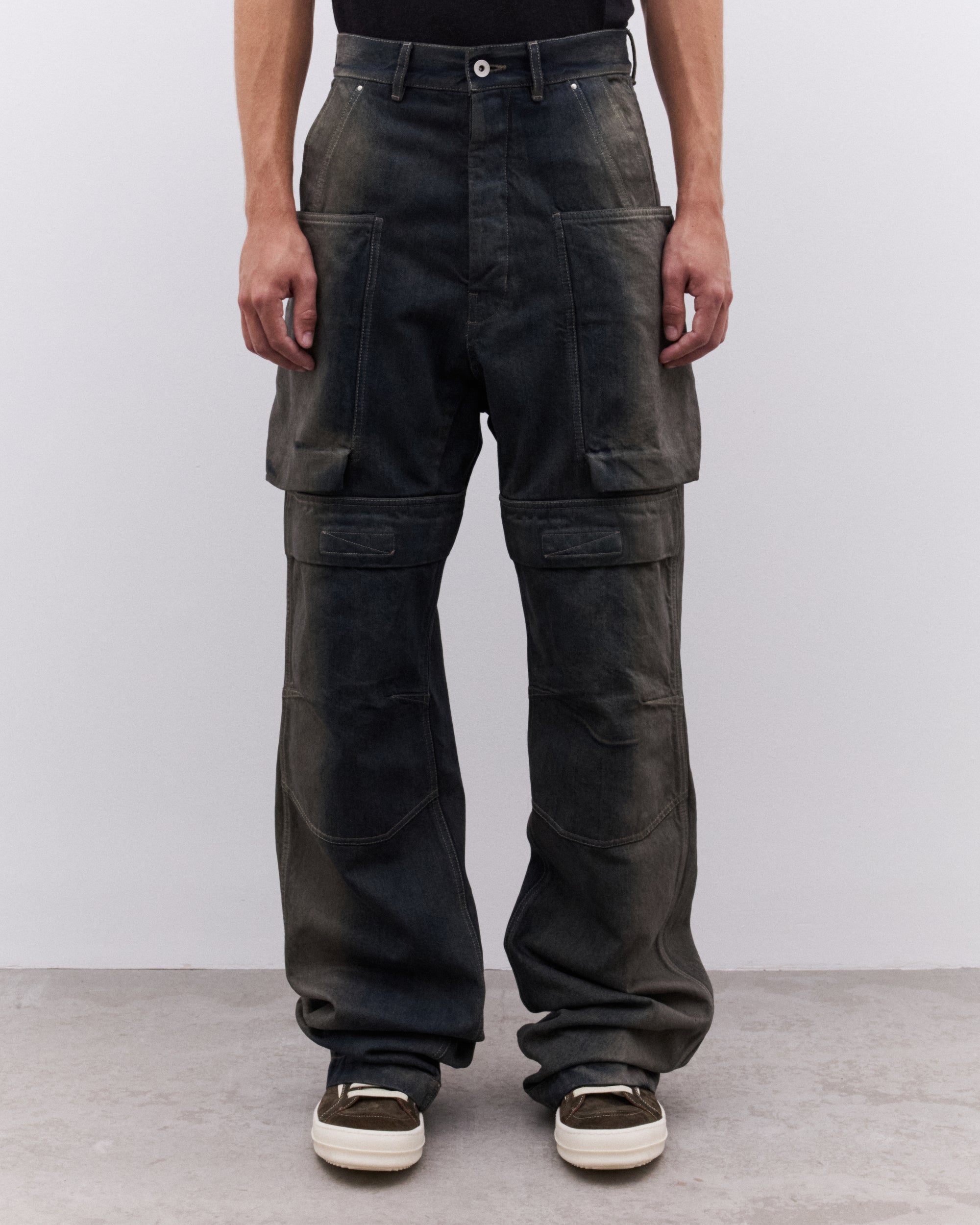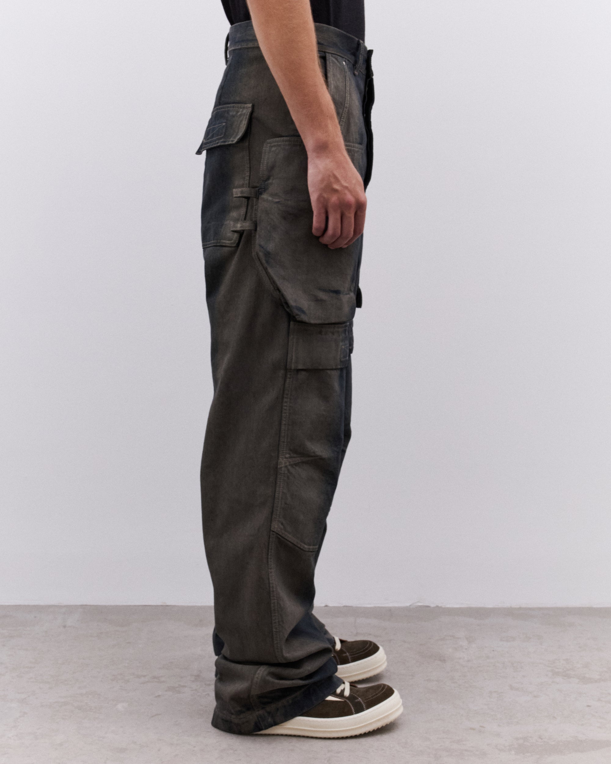 Waist button closureSide seam pocketsReinforced kneeCargo leg pocketsRear pockets