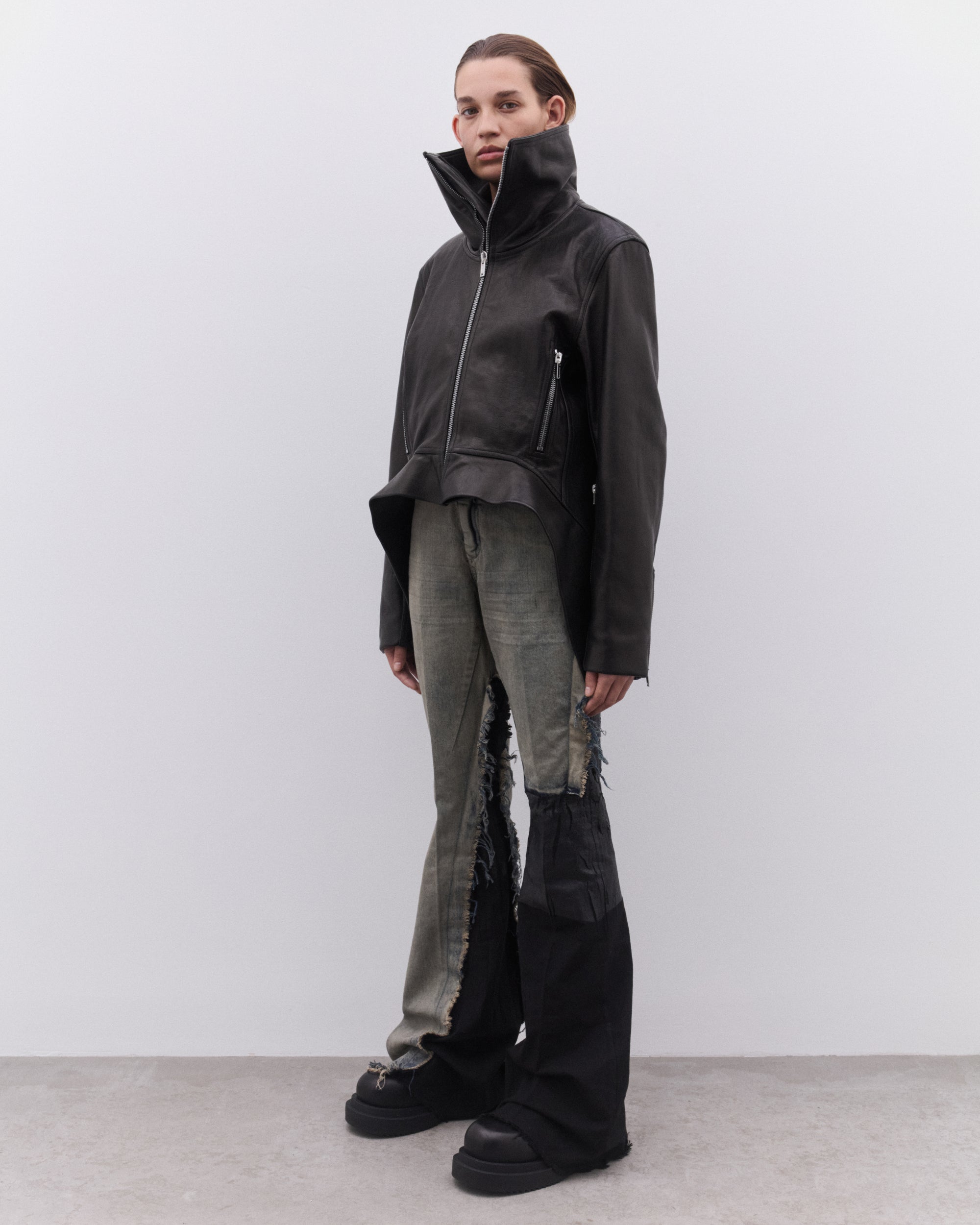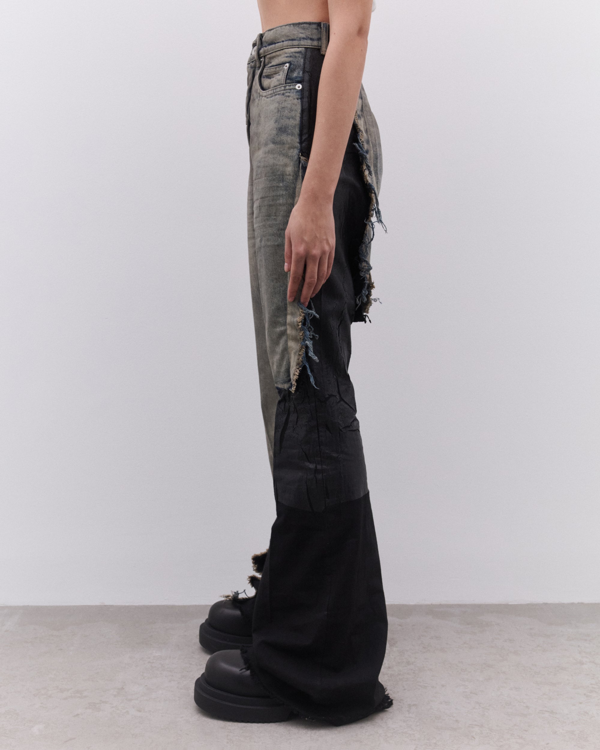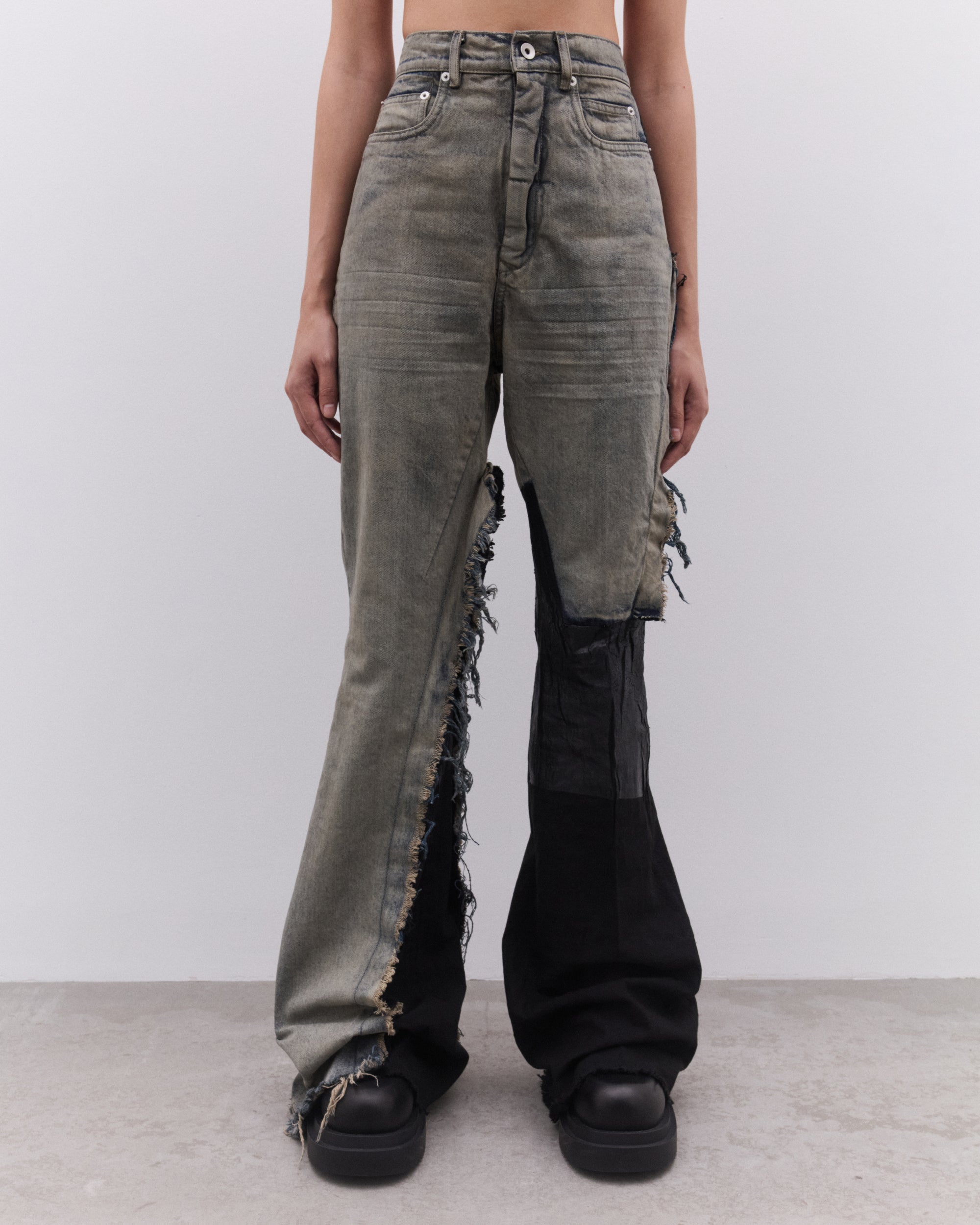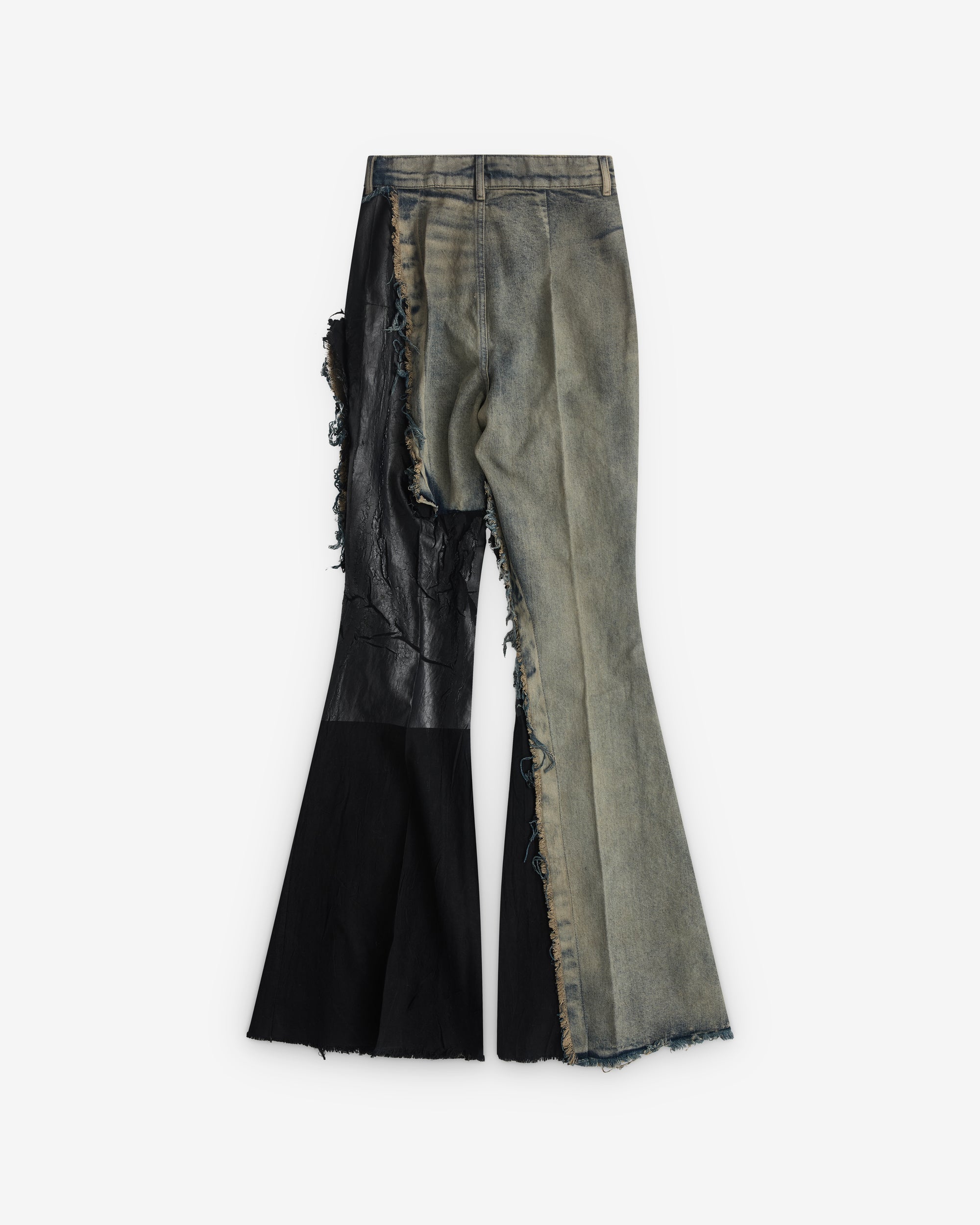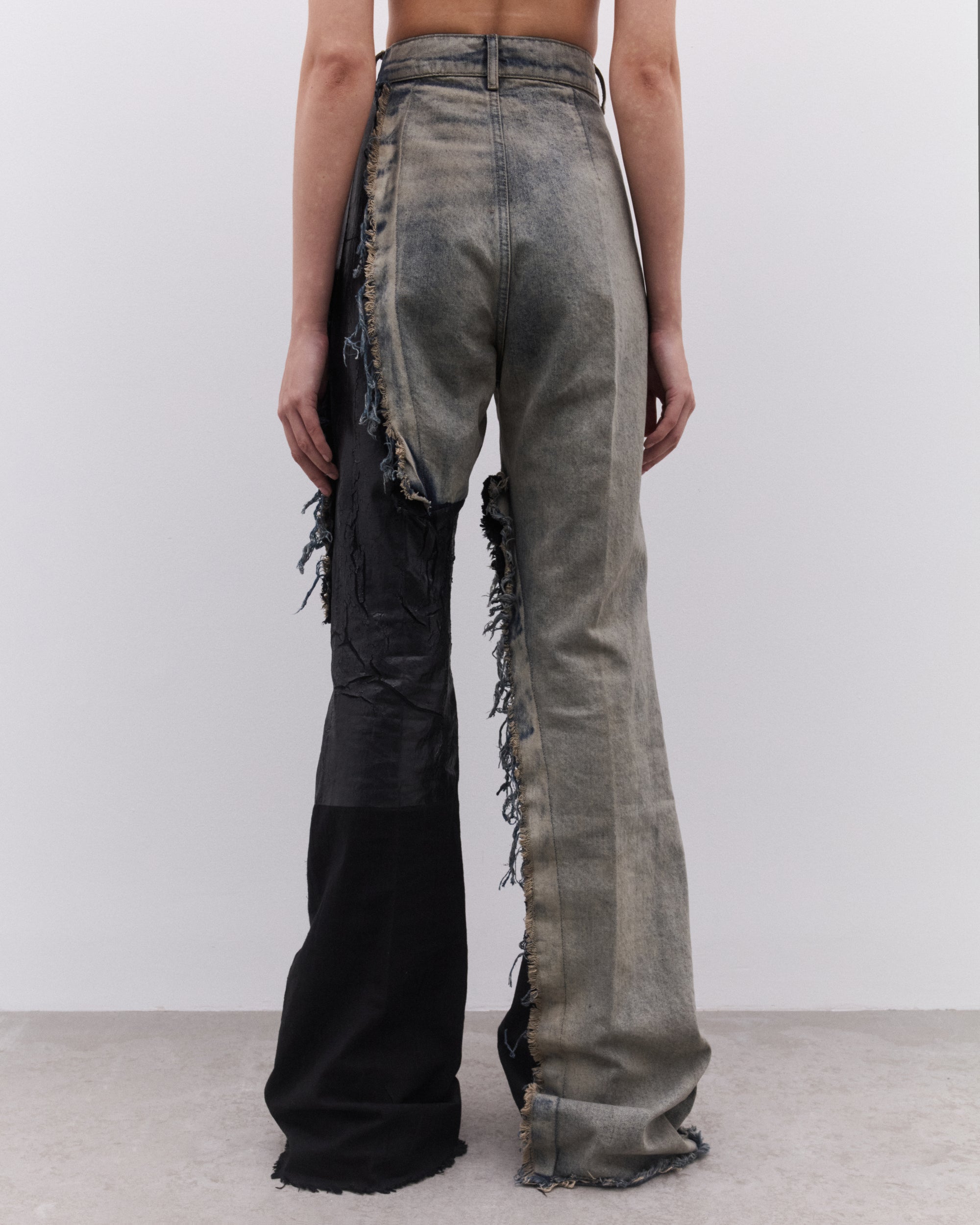 High waistFlared hemButton and zip fly fasteningRaw edge hemBelt loops