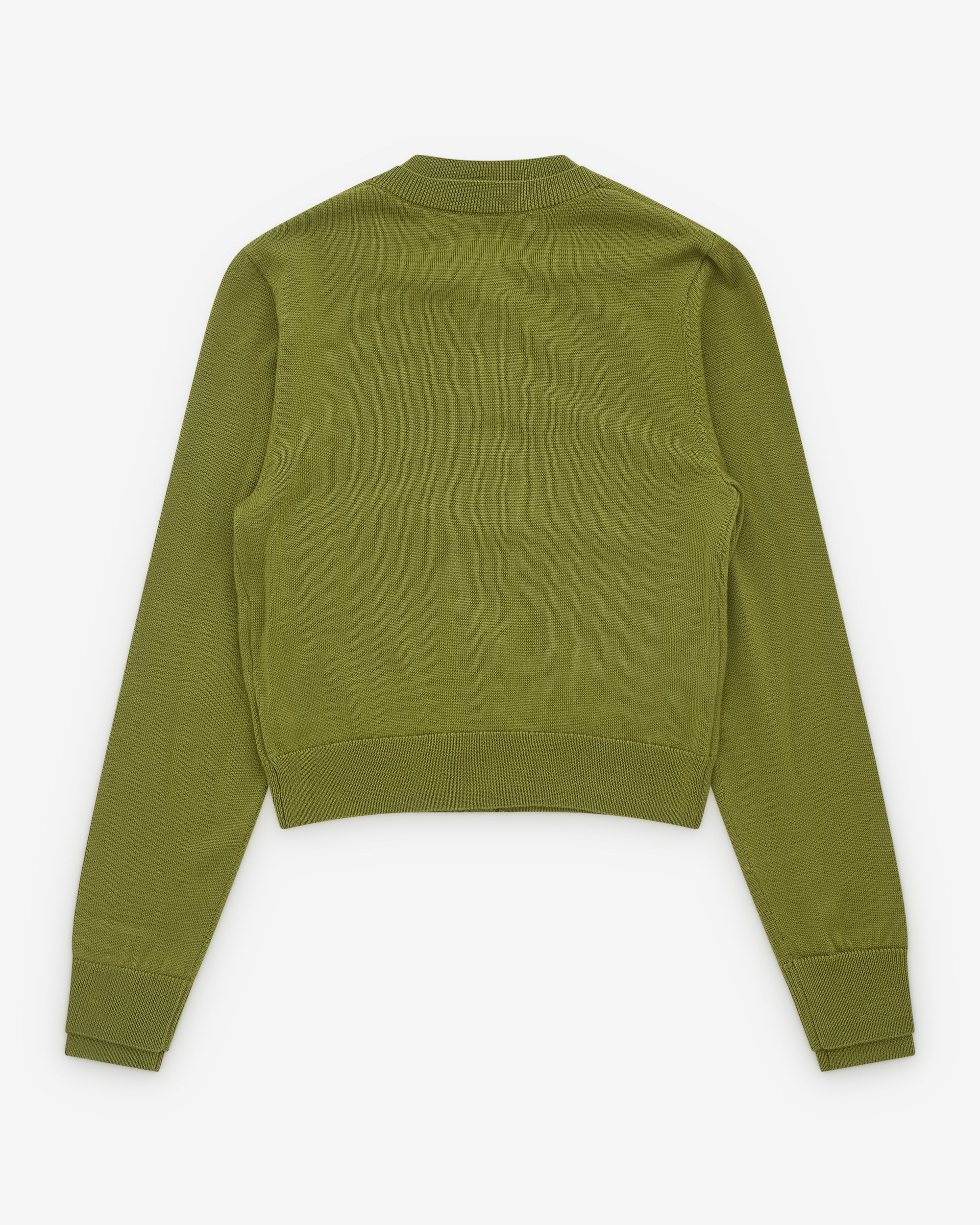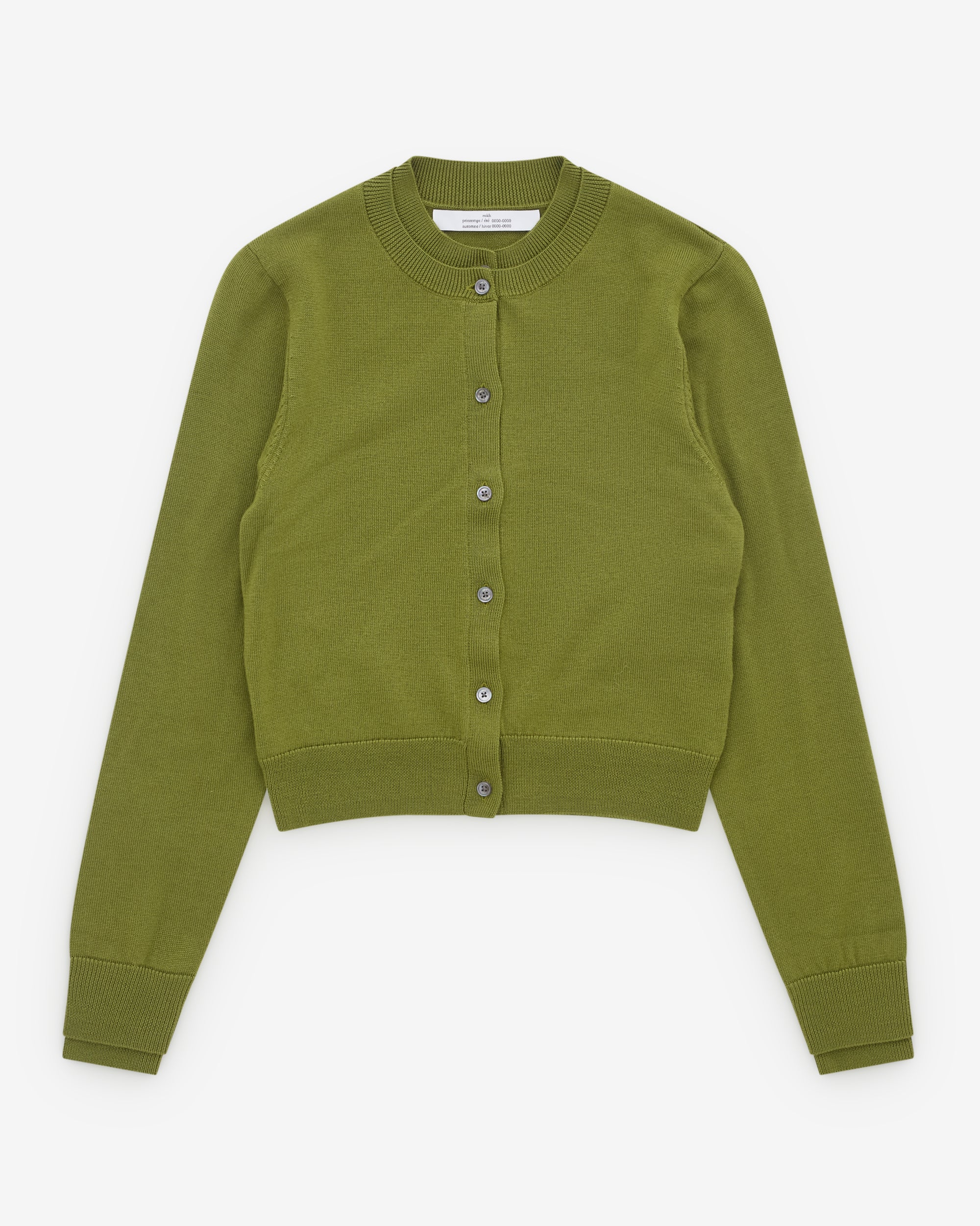 Layered rounded necklineFront button closureLong sleevesRibbed cuffs and hem
