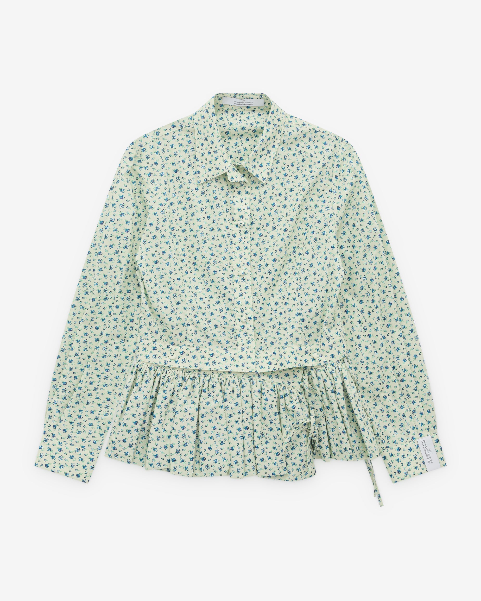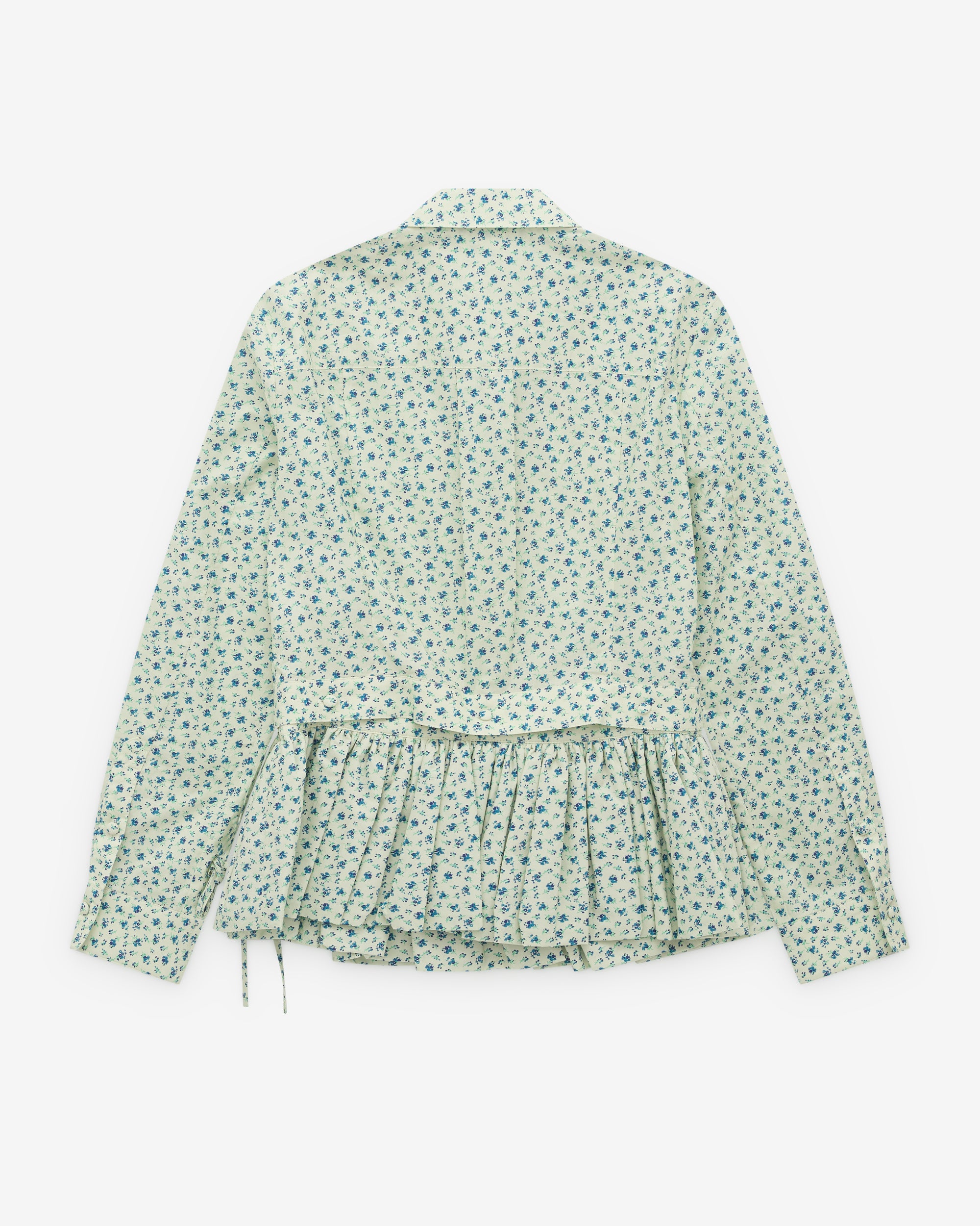 Point collarConcealed button fasteningButton off peplum detailButton cuffsRear central box pleat