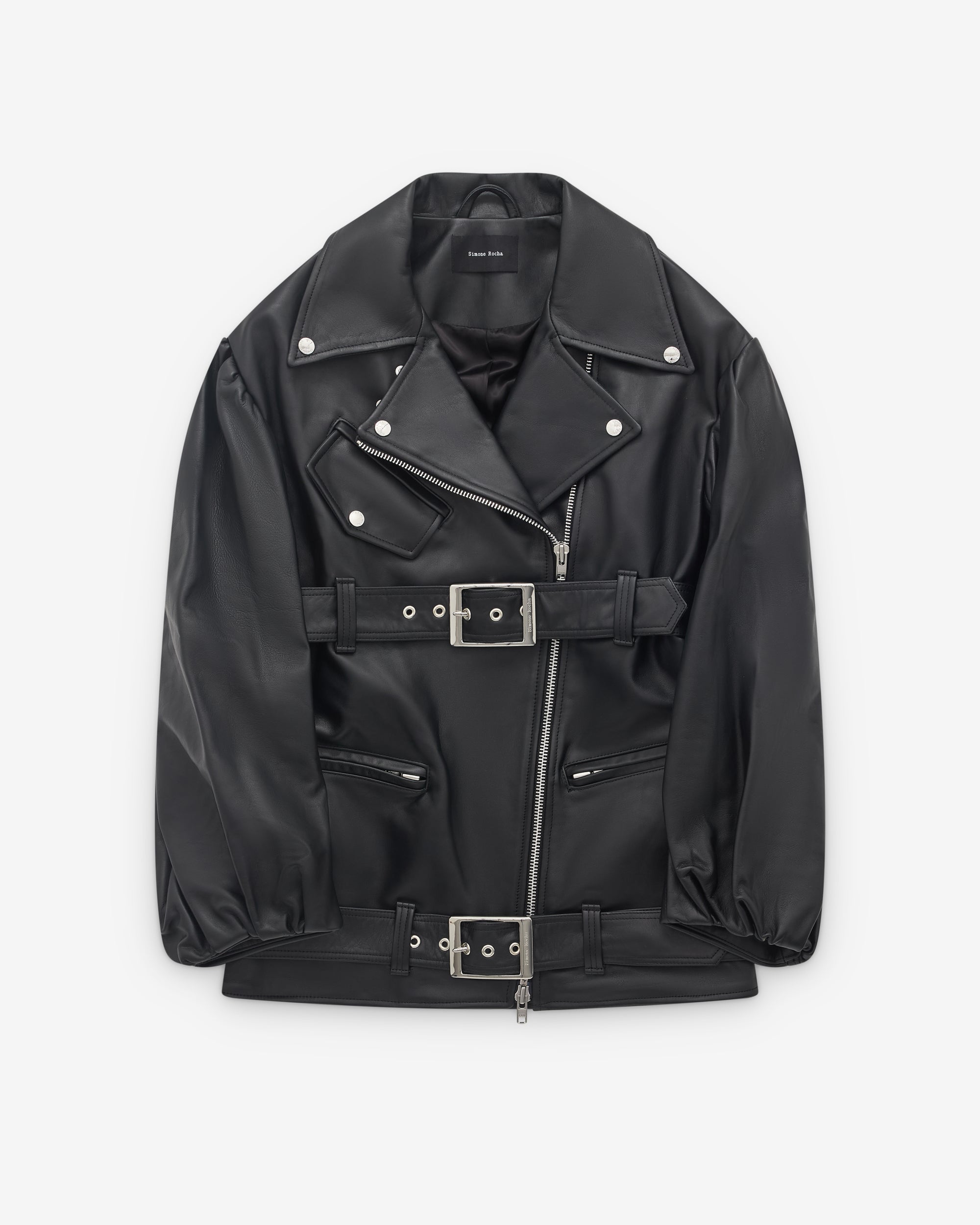 Simone Rocha Women’s Puff Sleeve Belted Biker Jacket Black