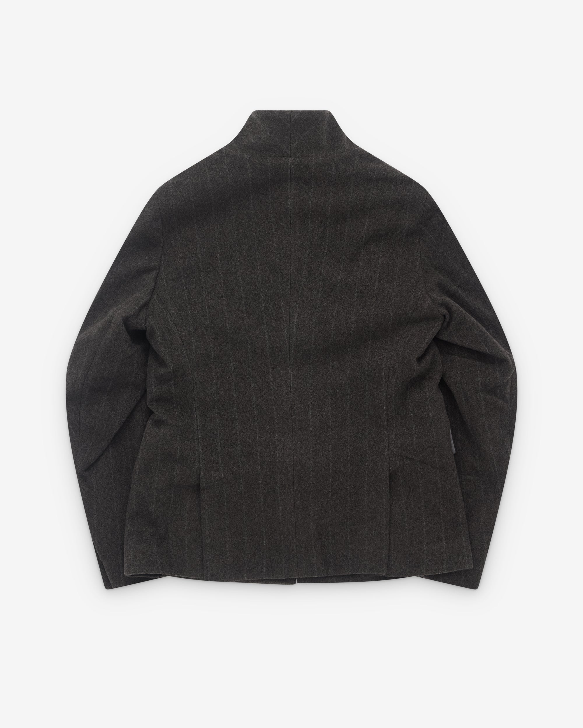 Stand collarStriped knit cashmere fabricFront button closureTailored fitFront patch pocketsTwo rear vents