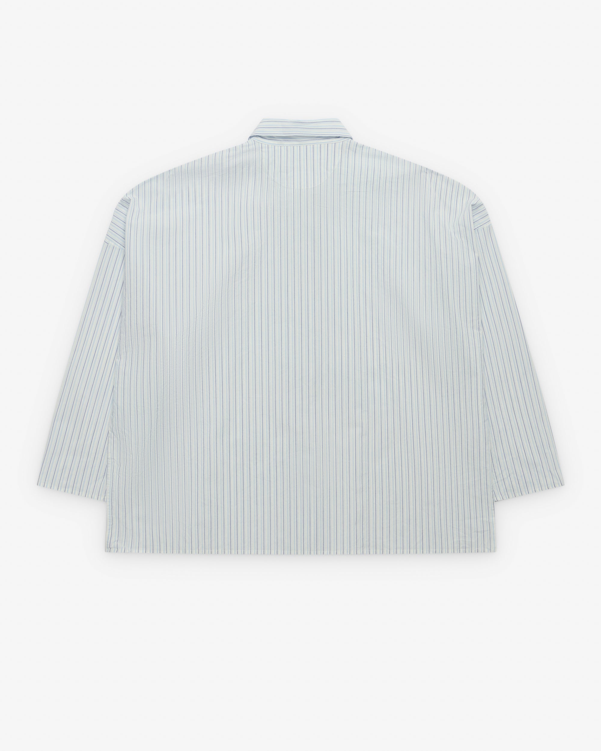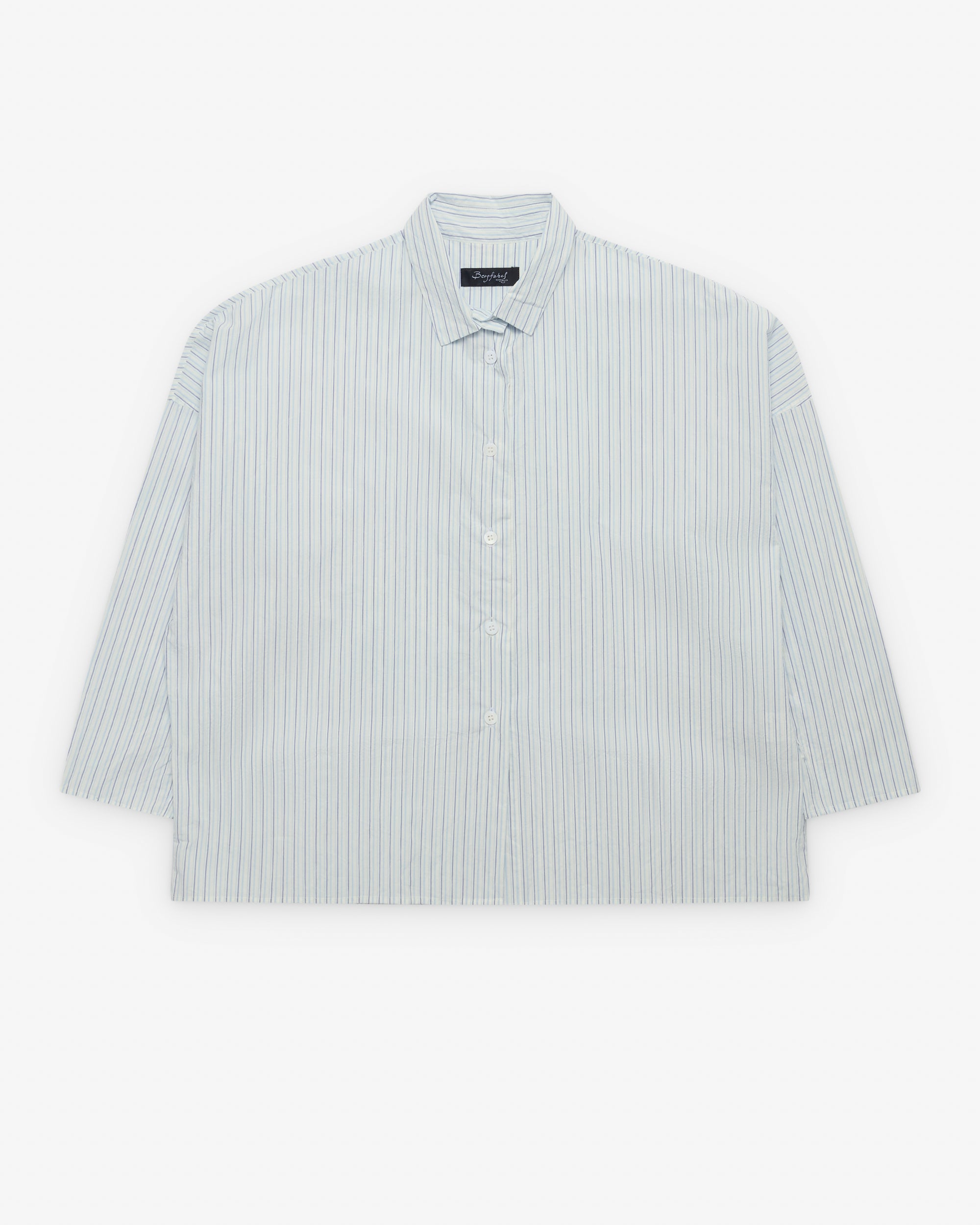 Cotton striped fabricClassic shirt collarFront button collarBoxy fit