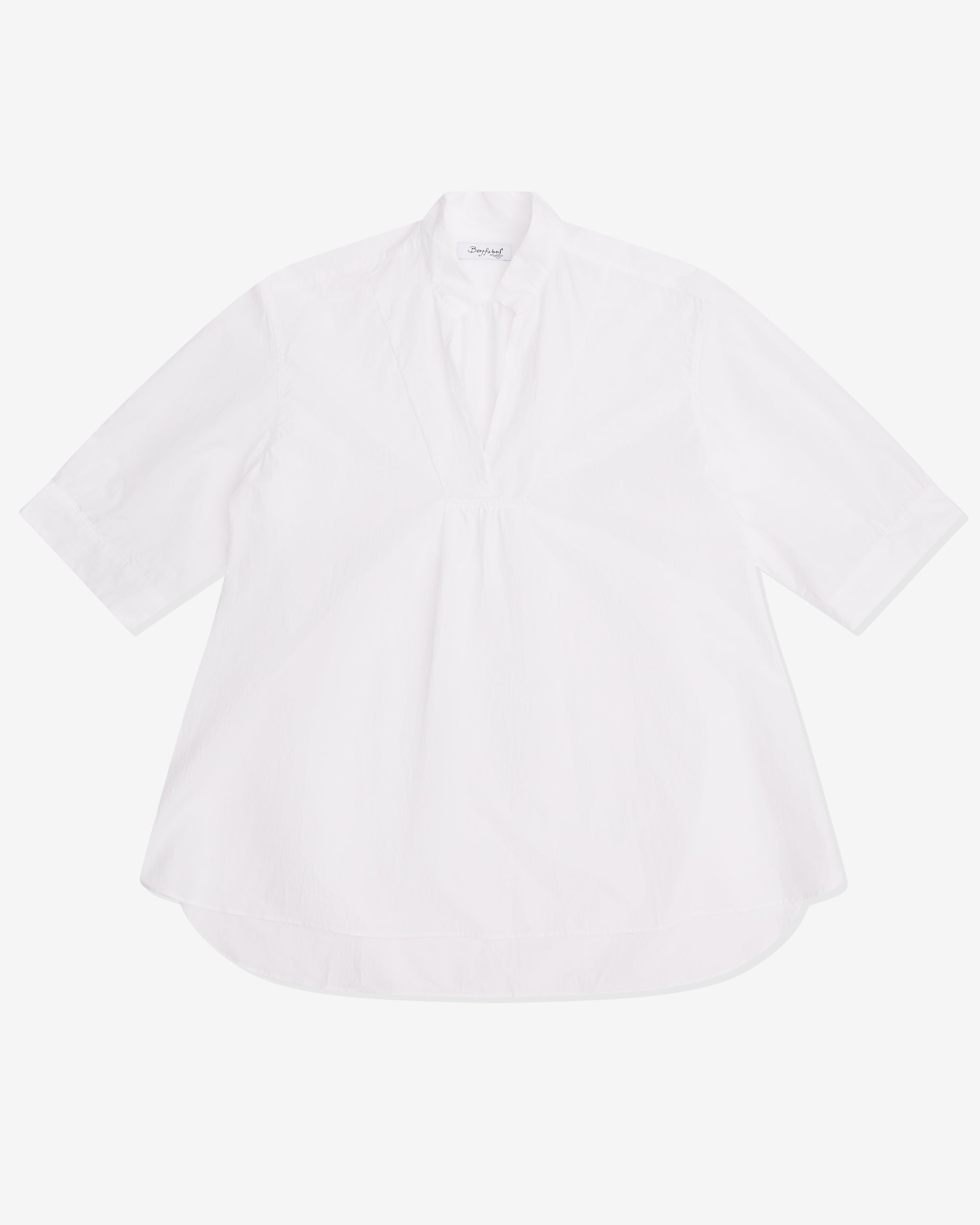 Short sleevesV-neckCurved hemPleated frontPleated yoke