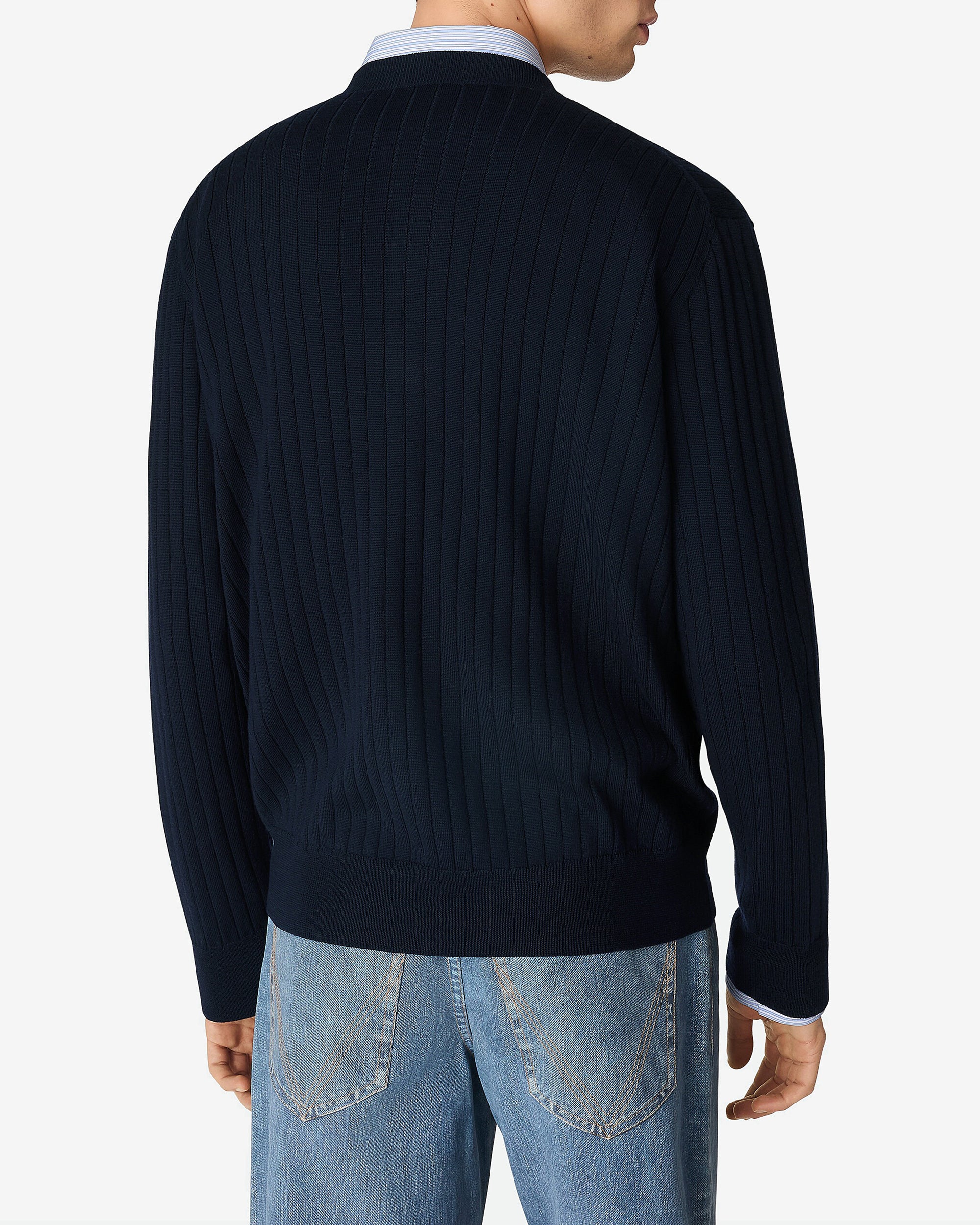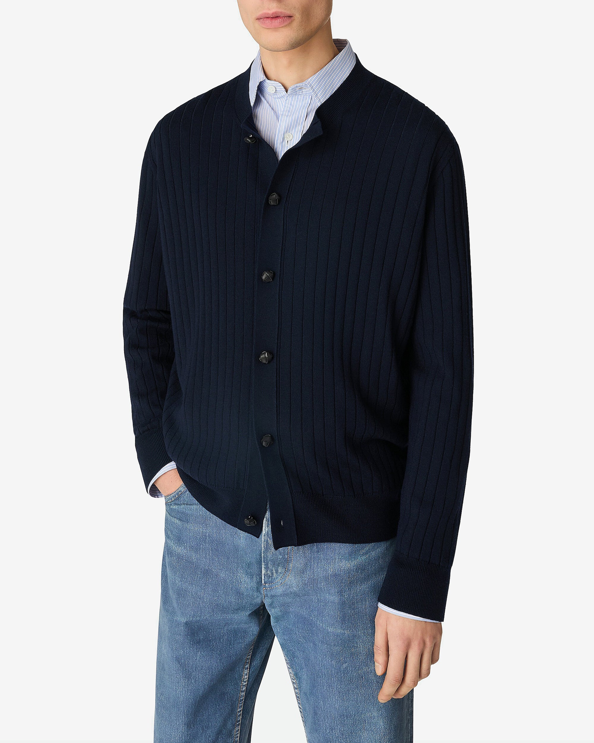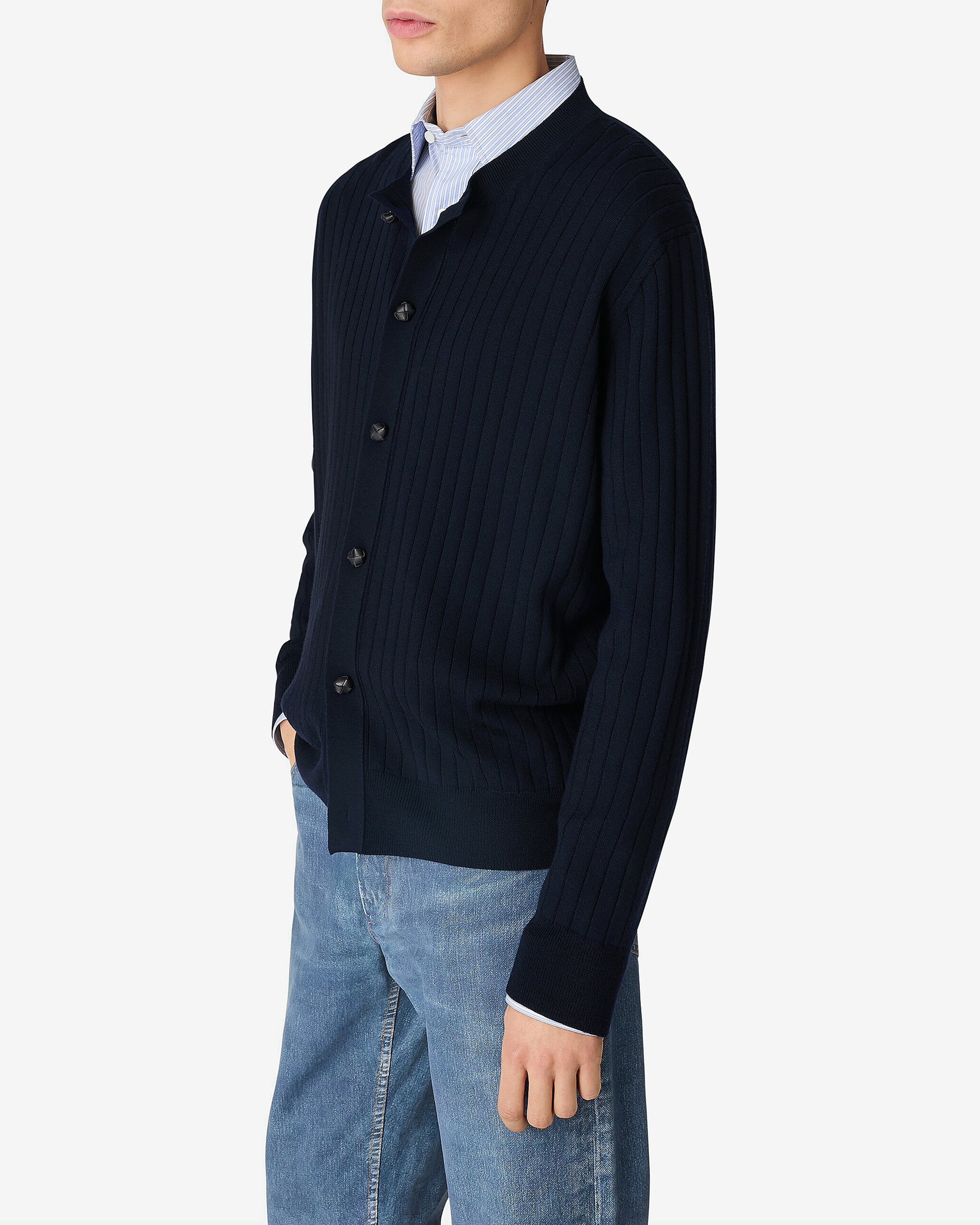 Wool rib cardigan Intrecciato leather buttons Regular fit