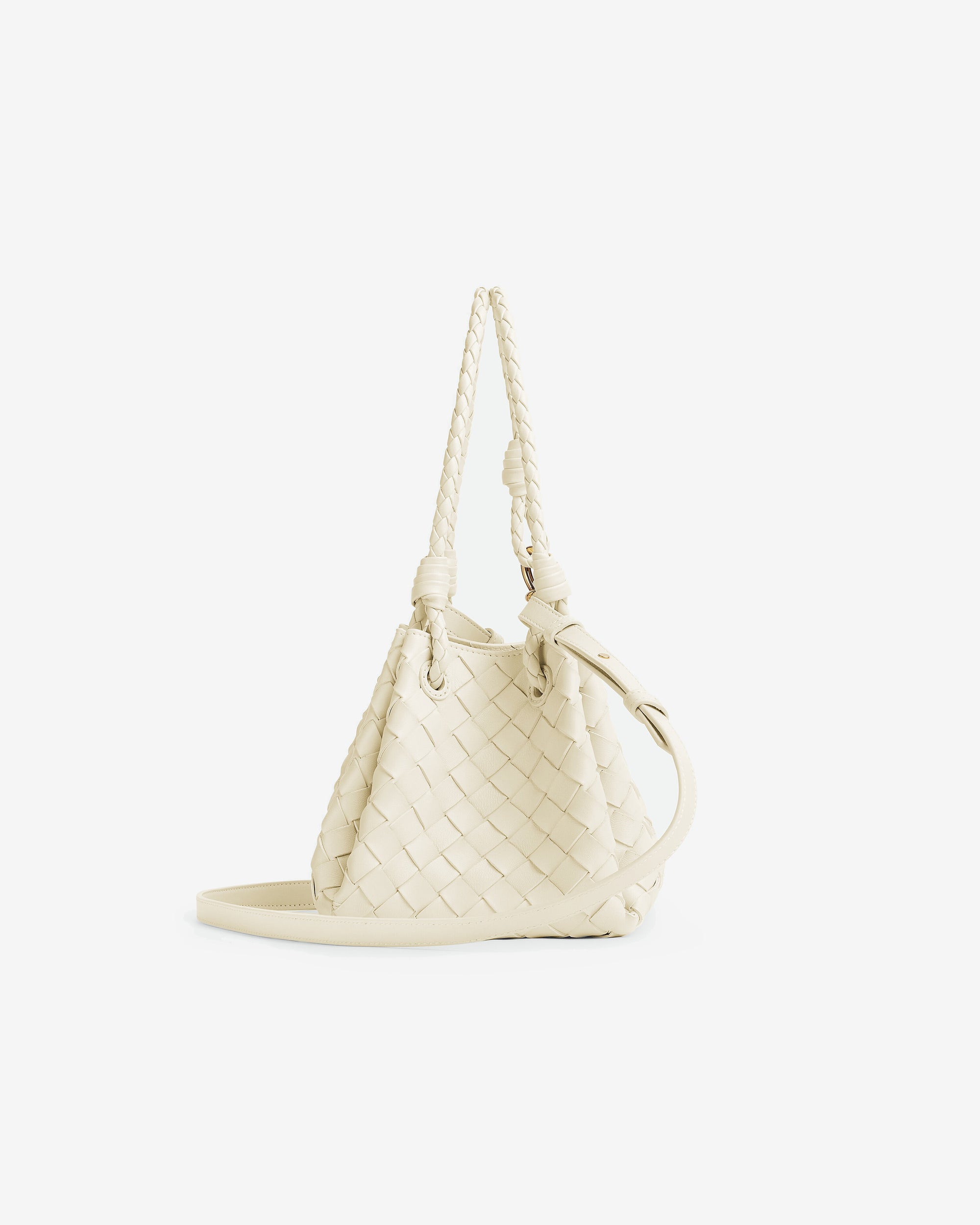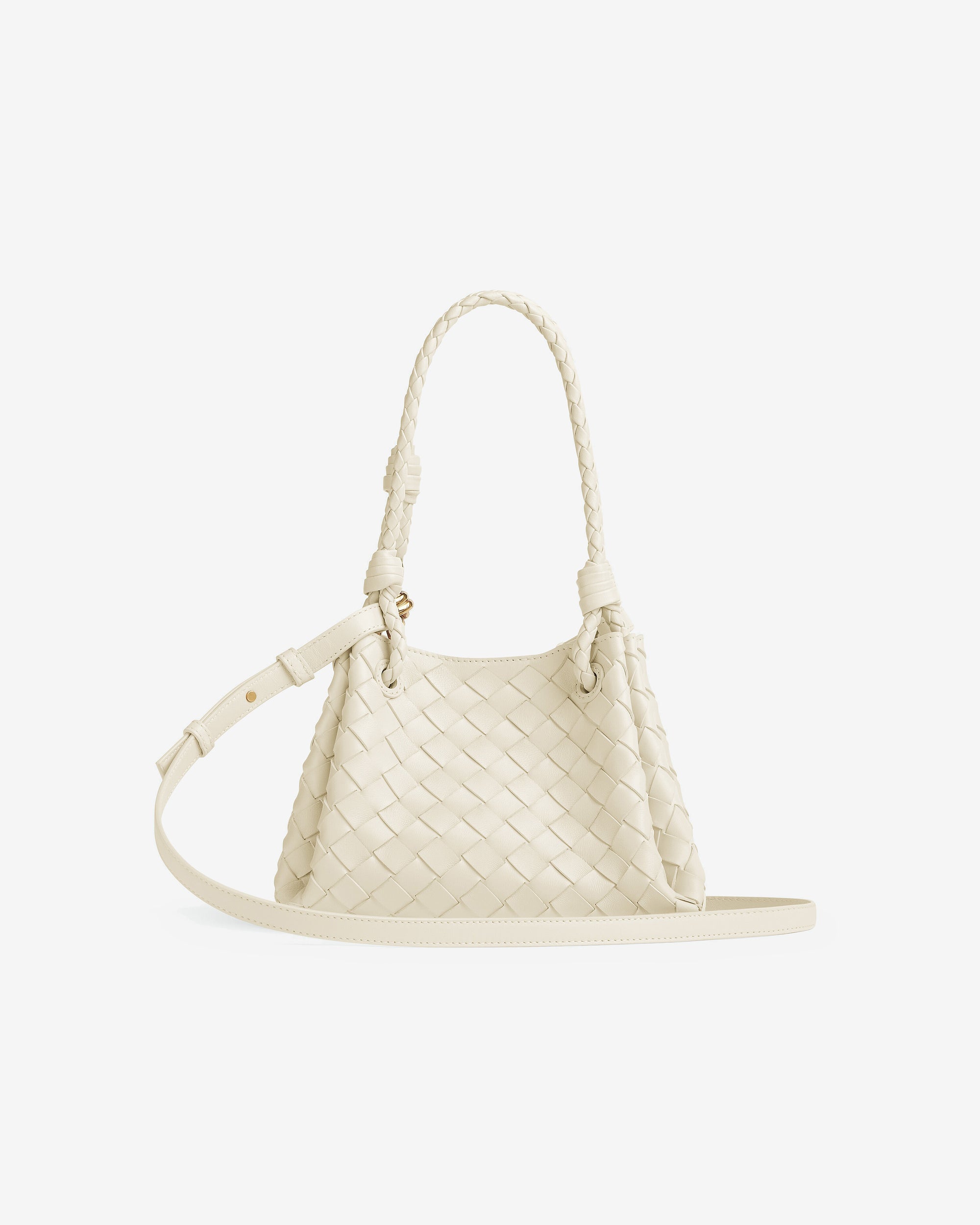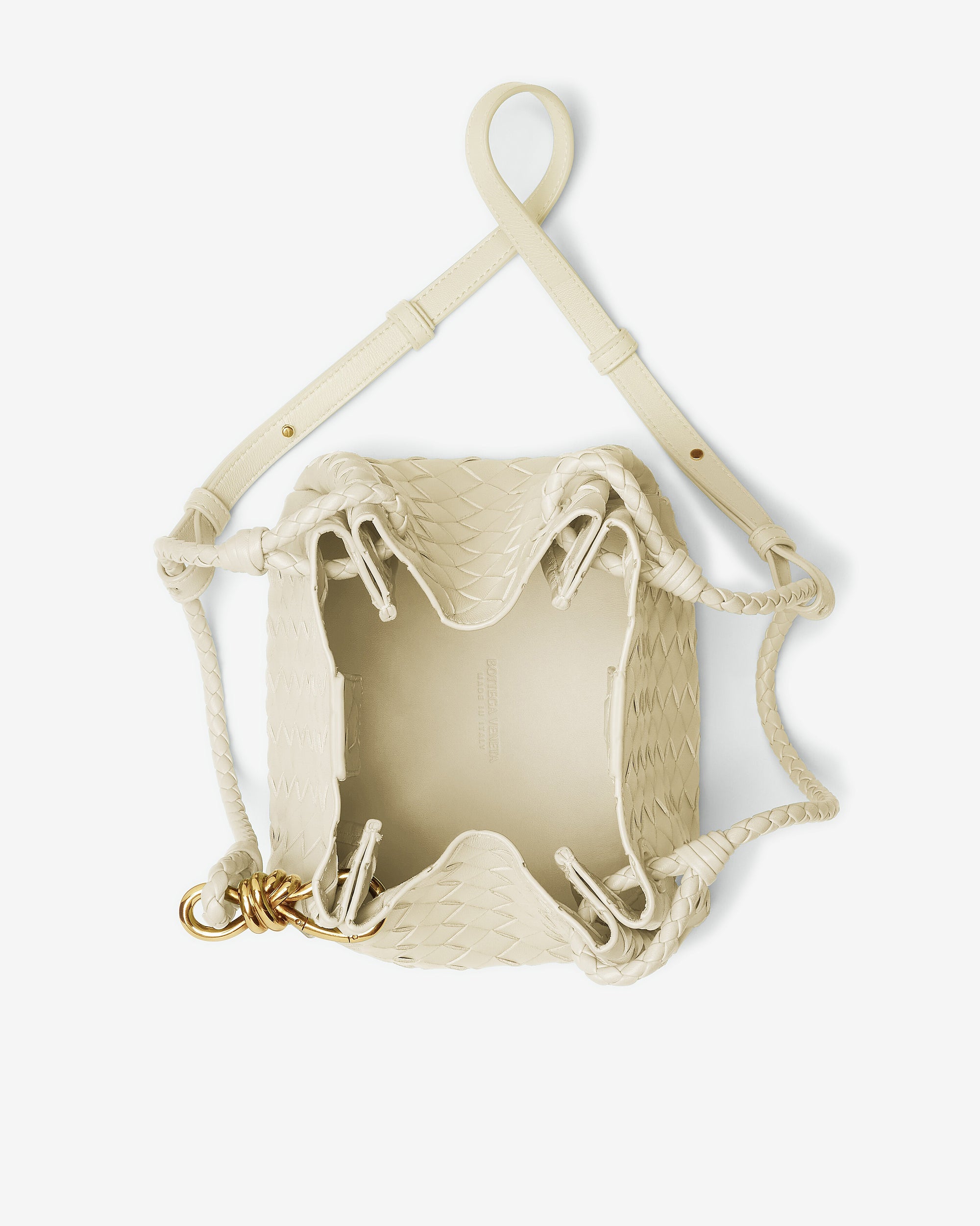 Shoulder bag in supple Intrecciato leather with signature knot detail and detachable cross-body strap.