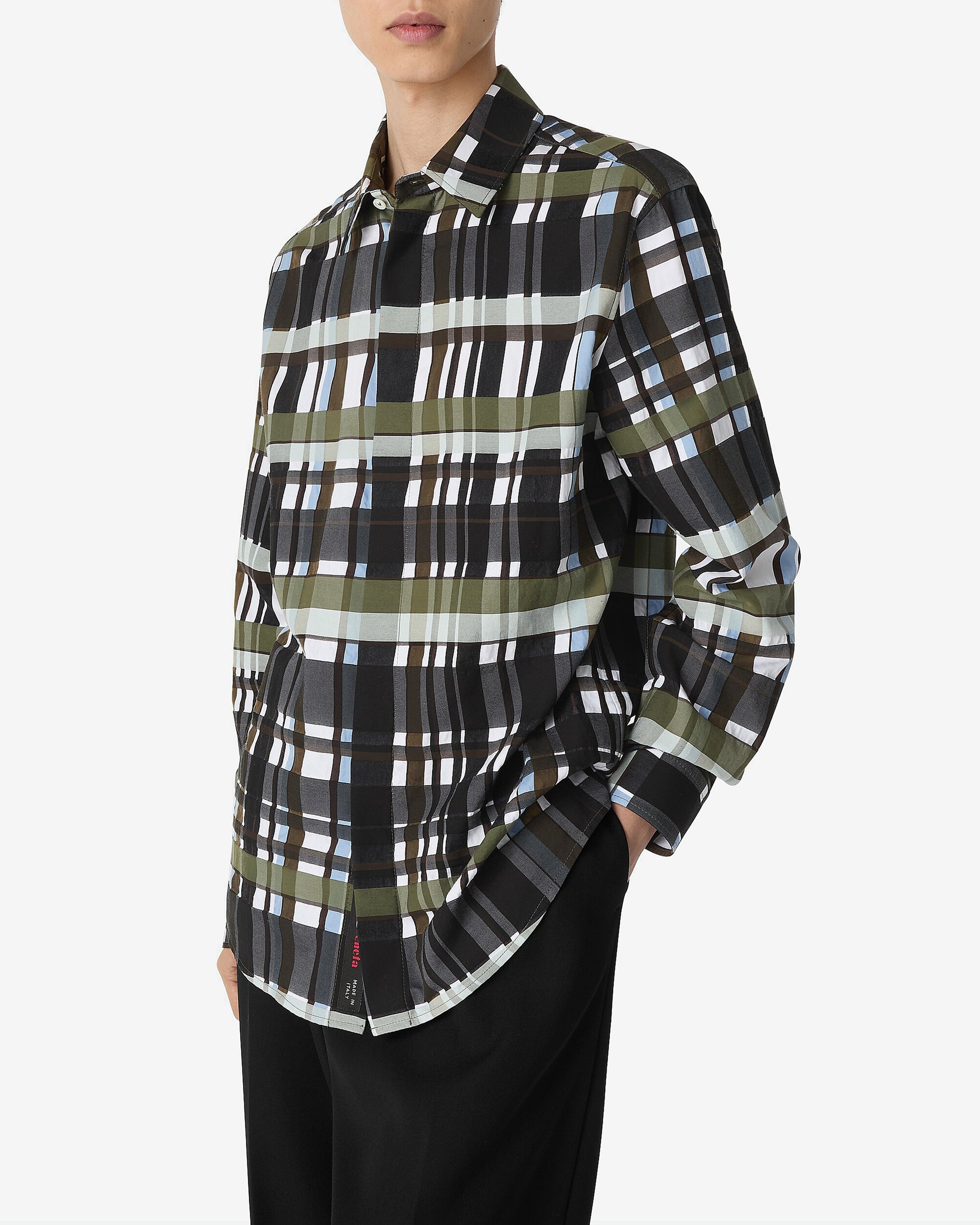 Check cotton shirt Hidden placket and button closure Label Regular fit