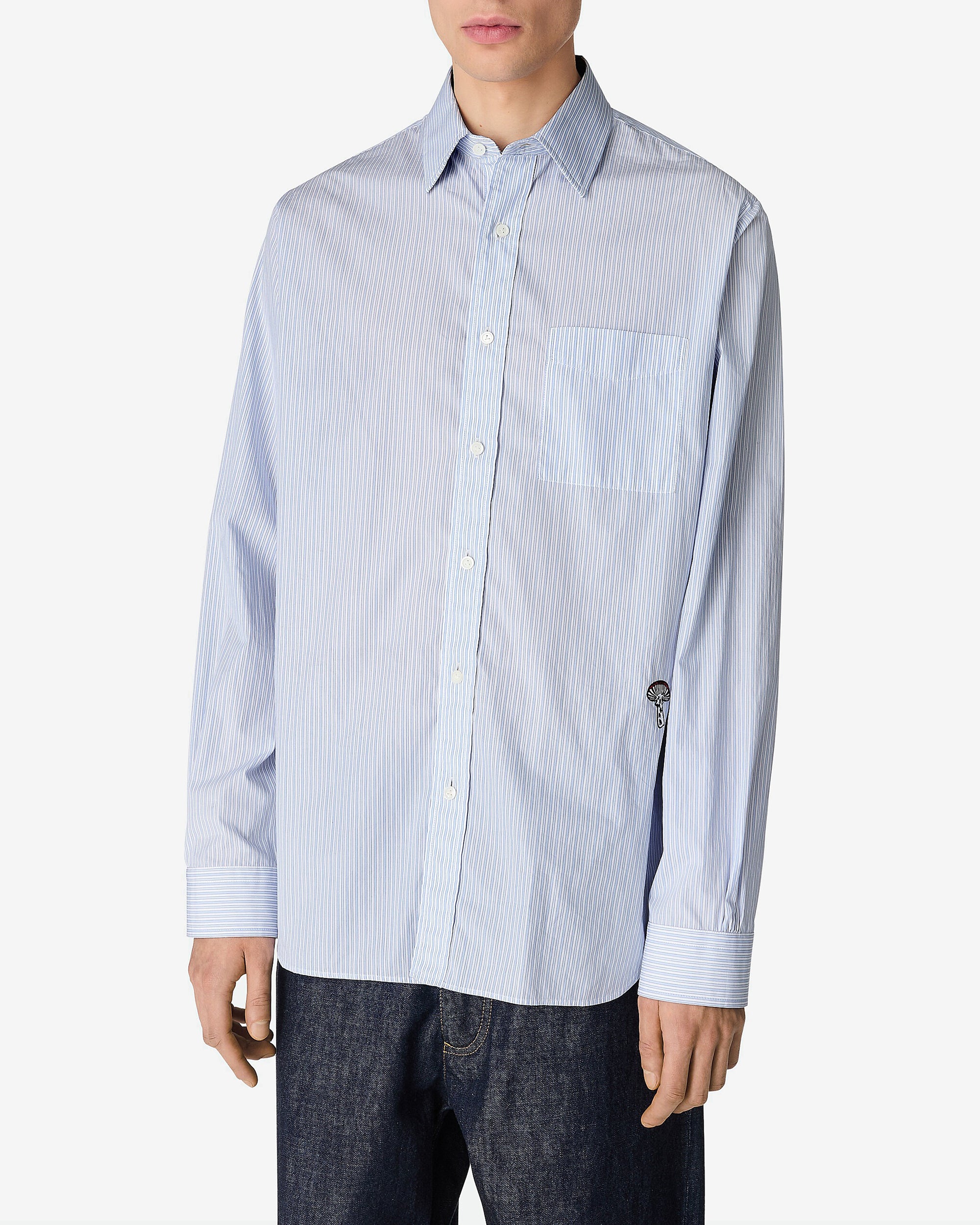 Outline stripe cotton poplin shirt Mushroom embroidery on the front Button closure Regular fit