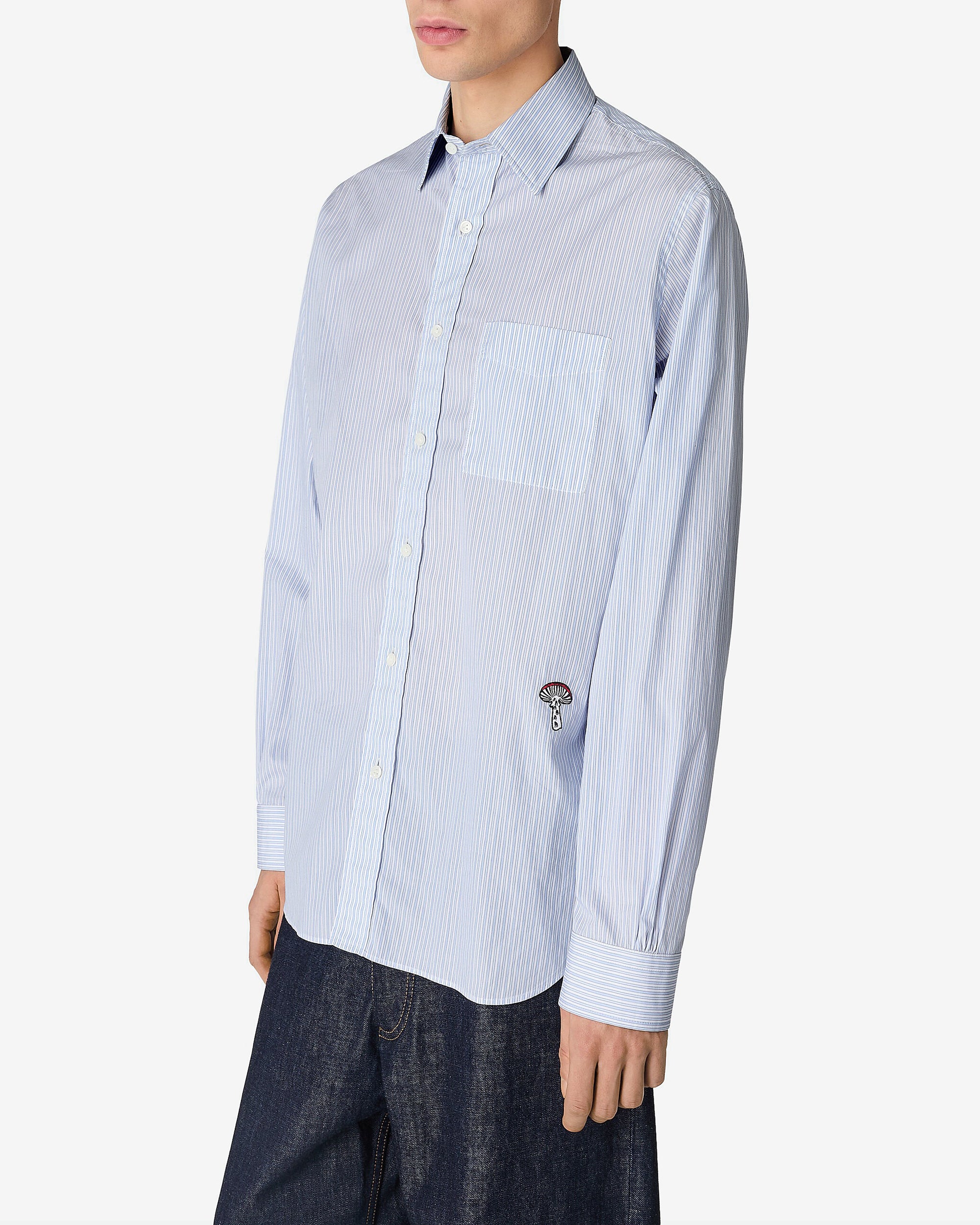 Shirt in striped cotton poplin with embroidered mushroom detail.