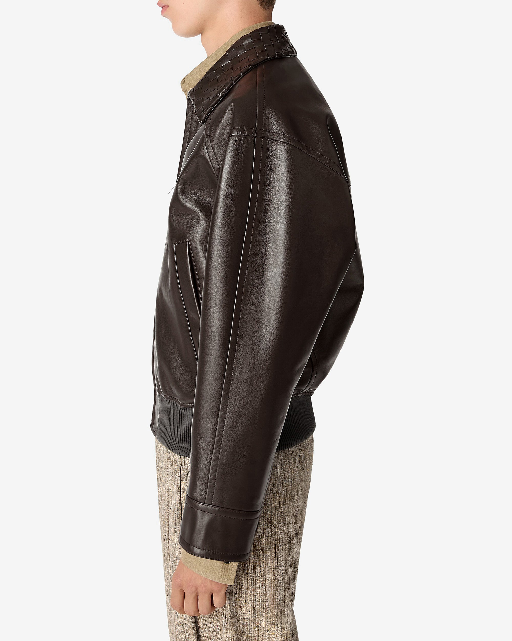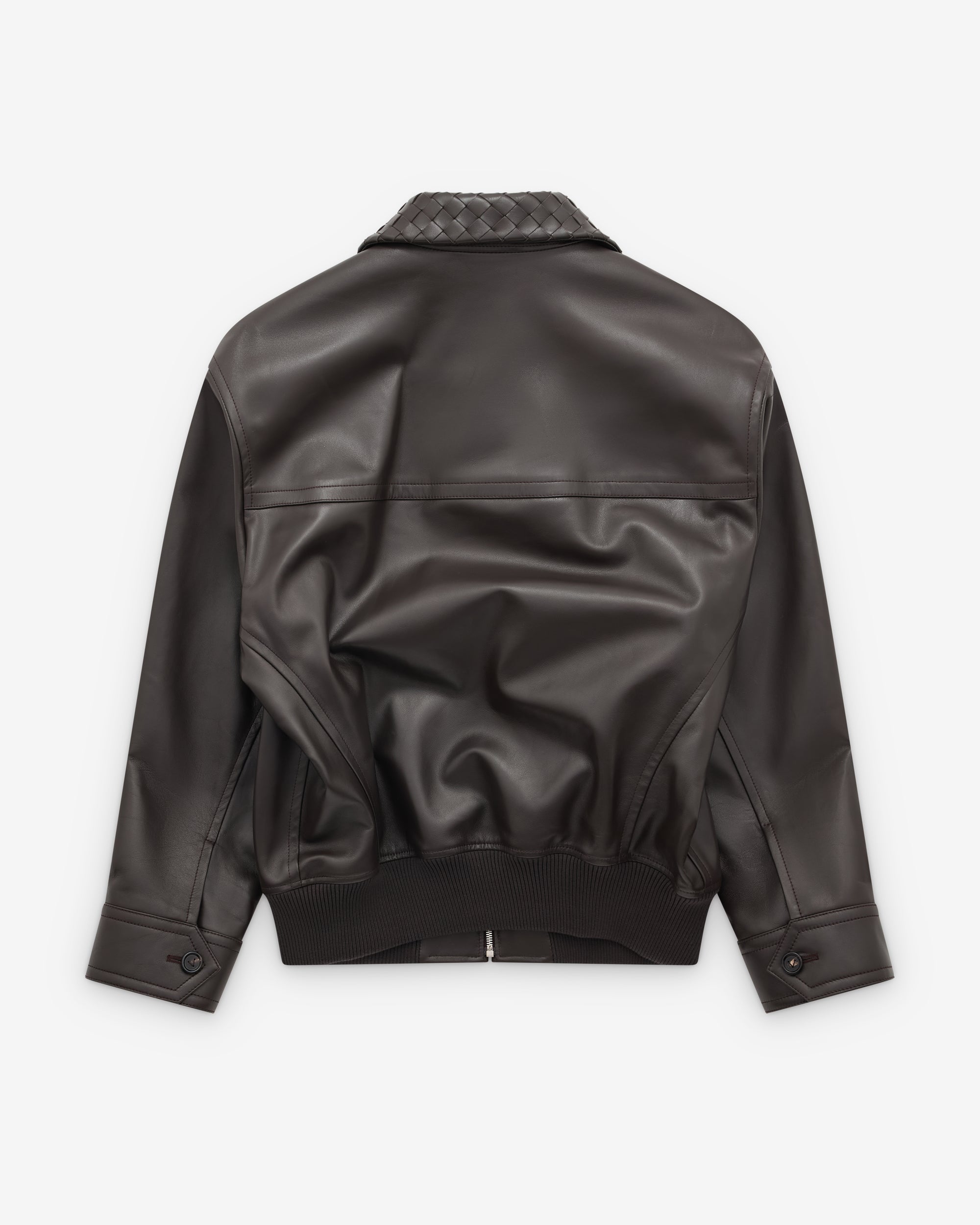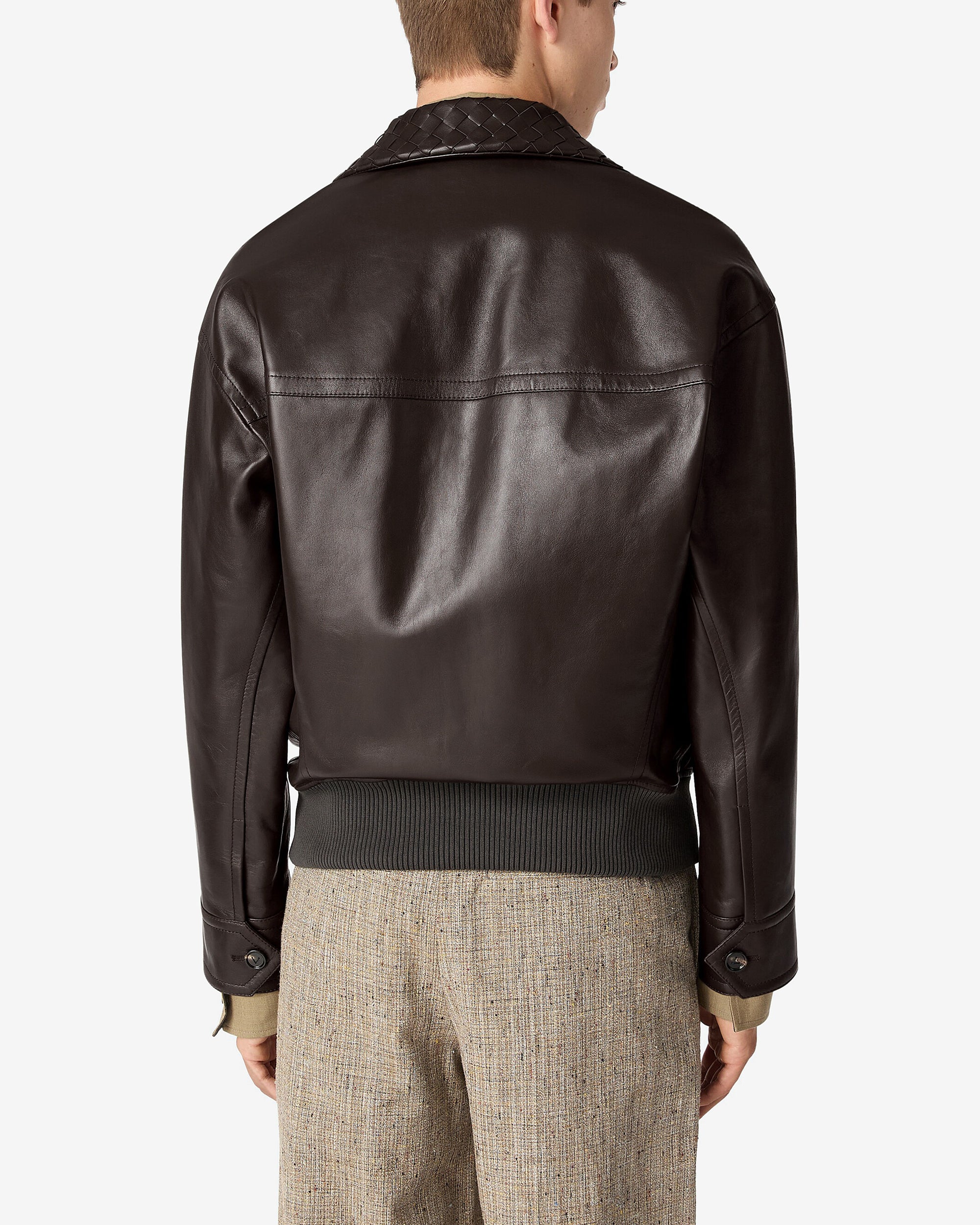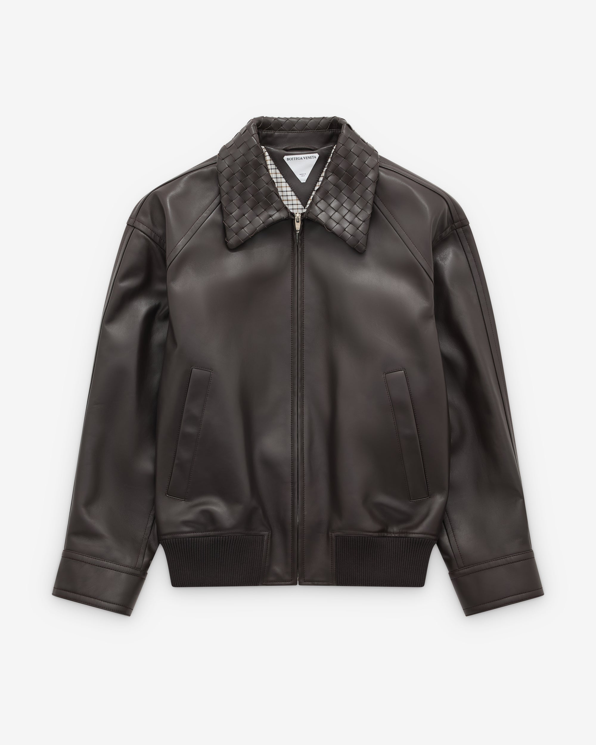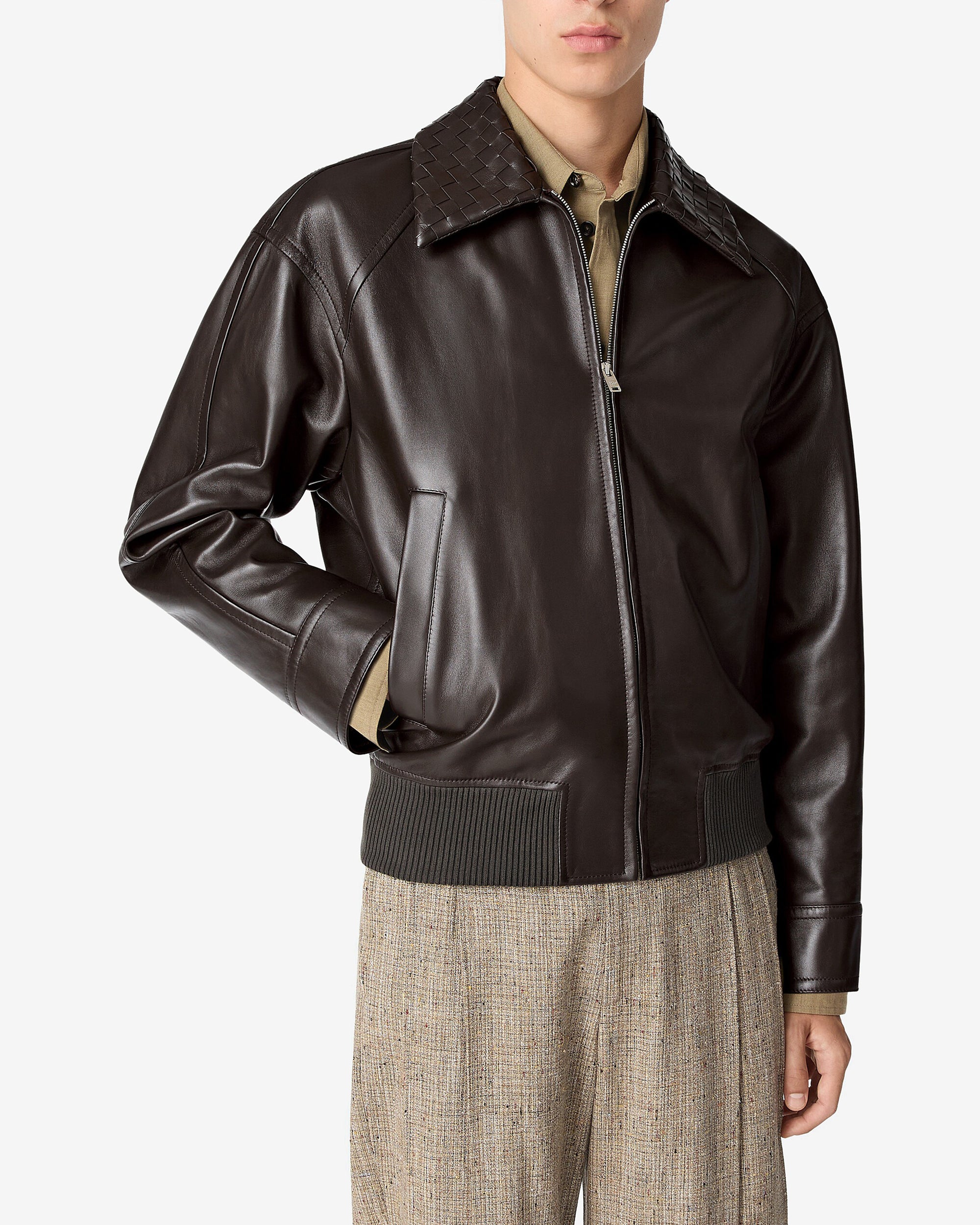 Midweight soft nappa lambskin blousonIntrecciato leather collarZip closureChecked liningRegular fit