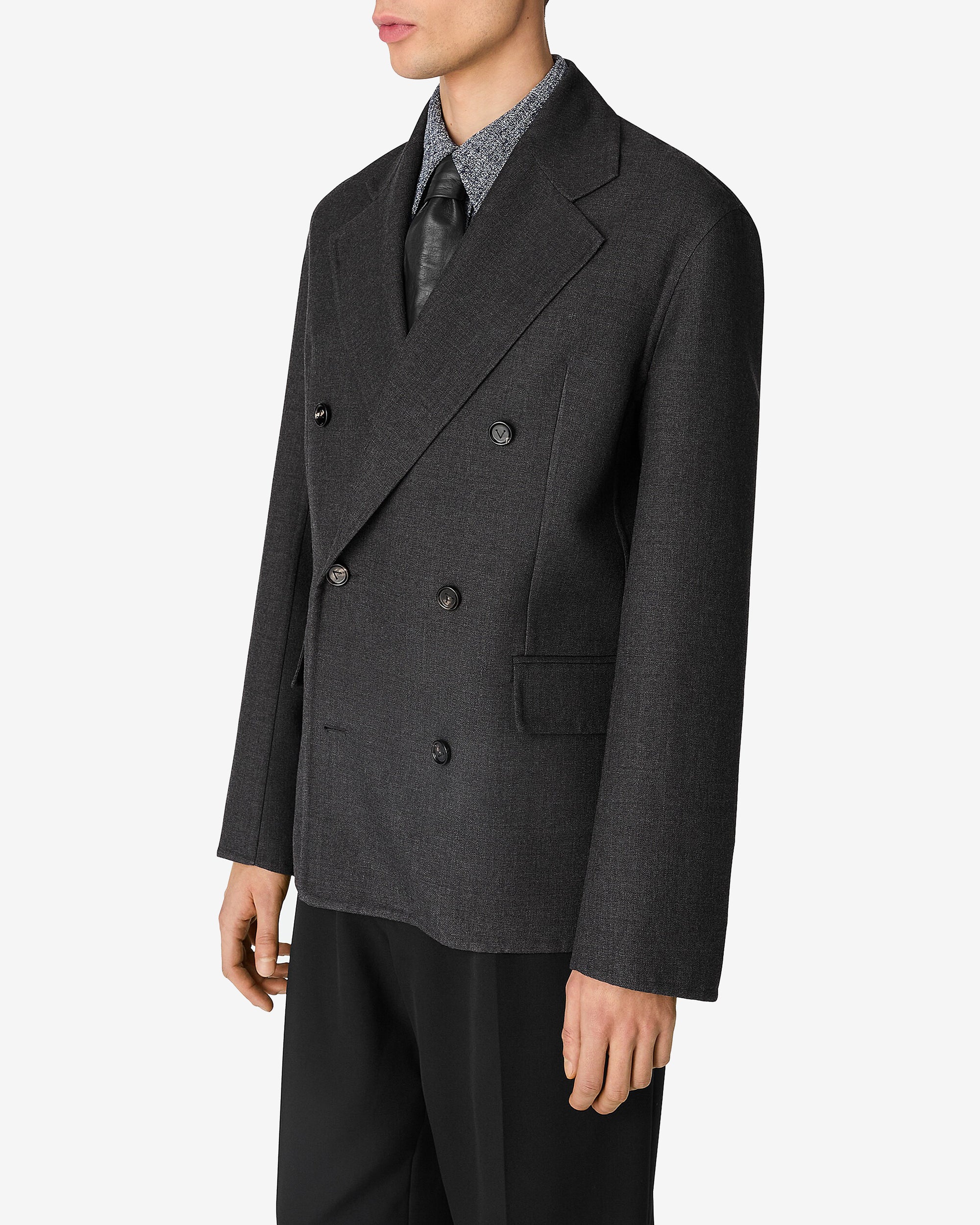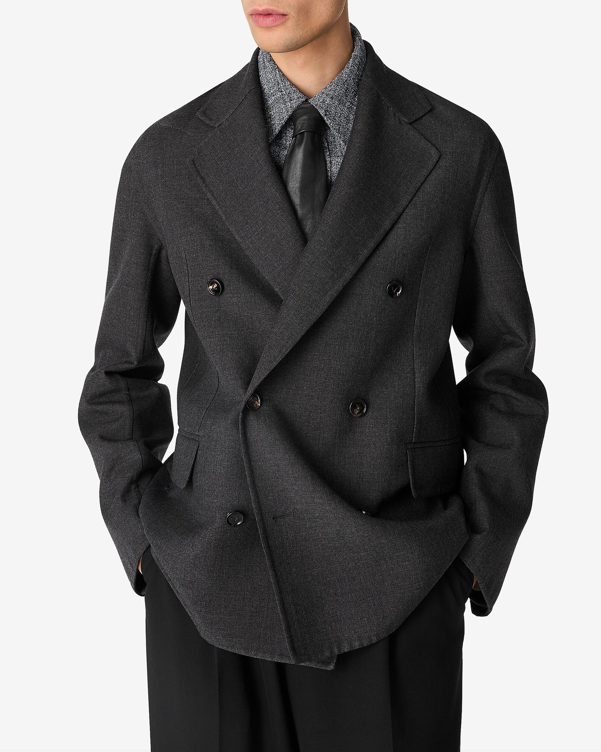 Structured splitable wool double breasted jacket Button closure Semi lined Regular fit