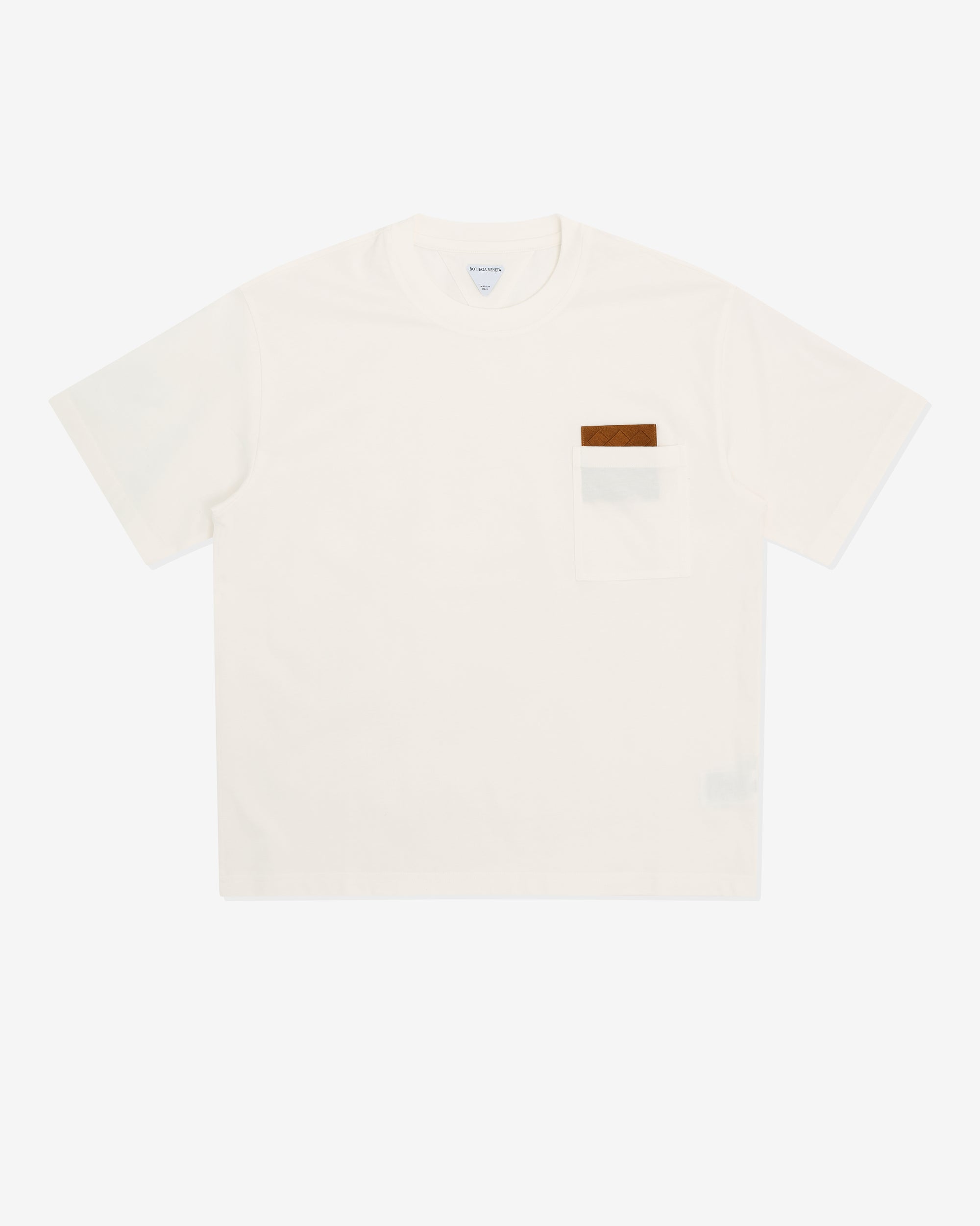 T-shirt in pima cotton jersey with Intrecciato leather detail.