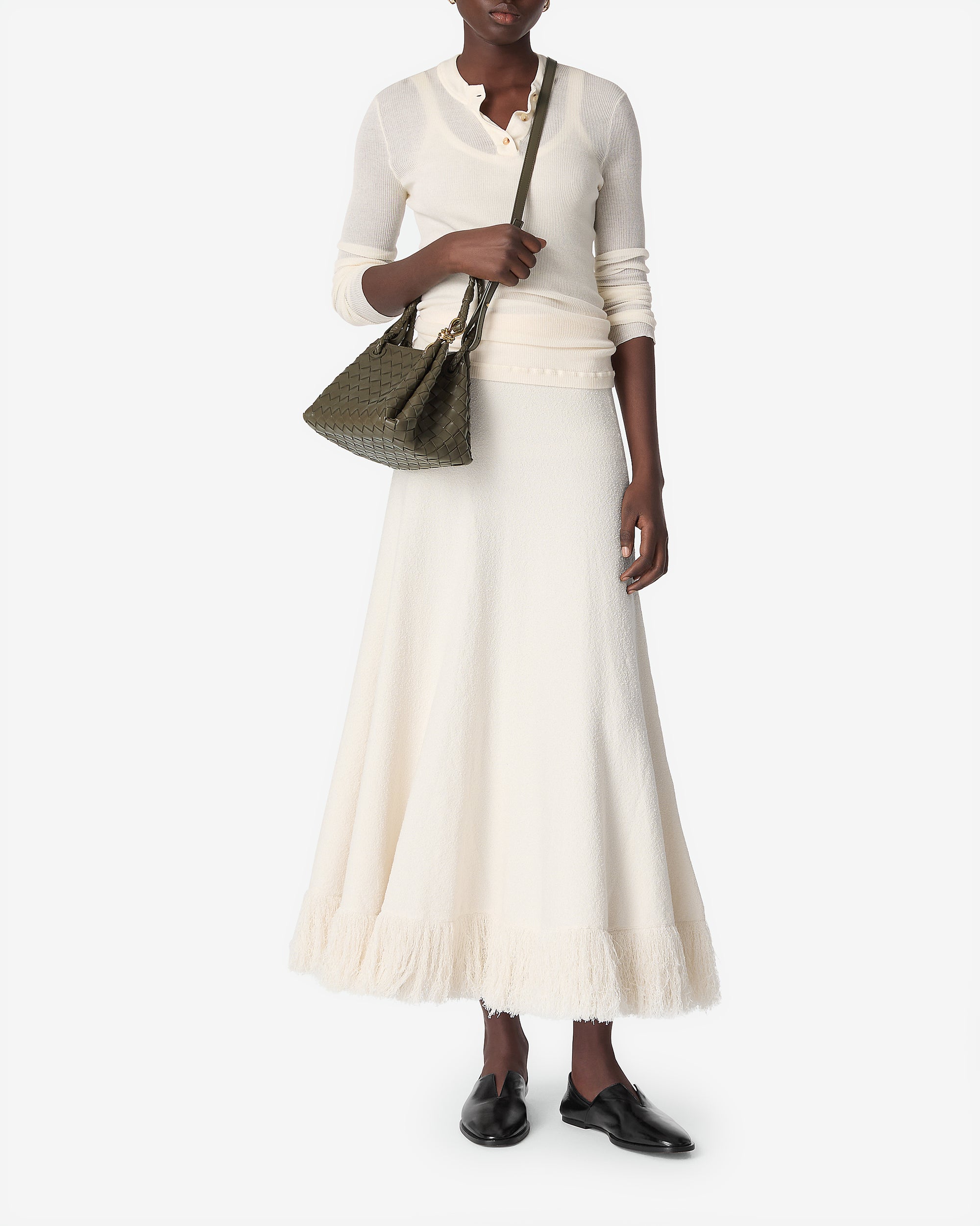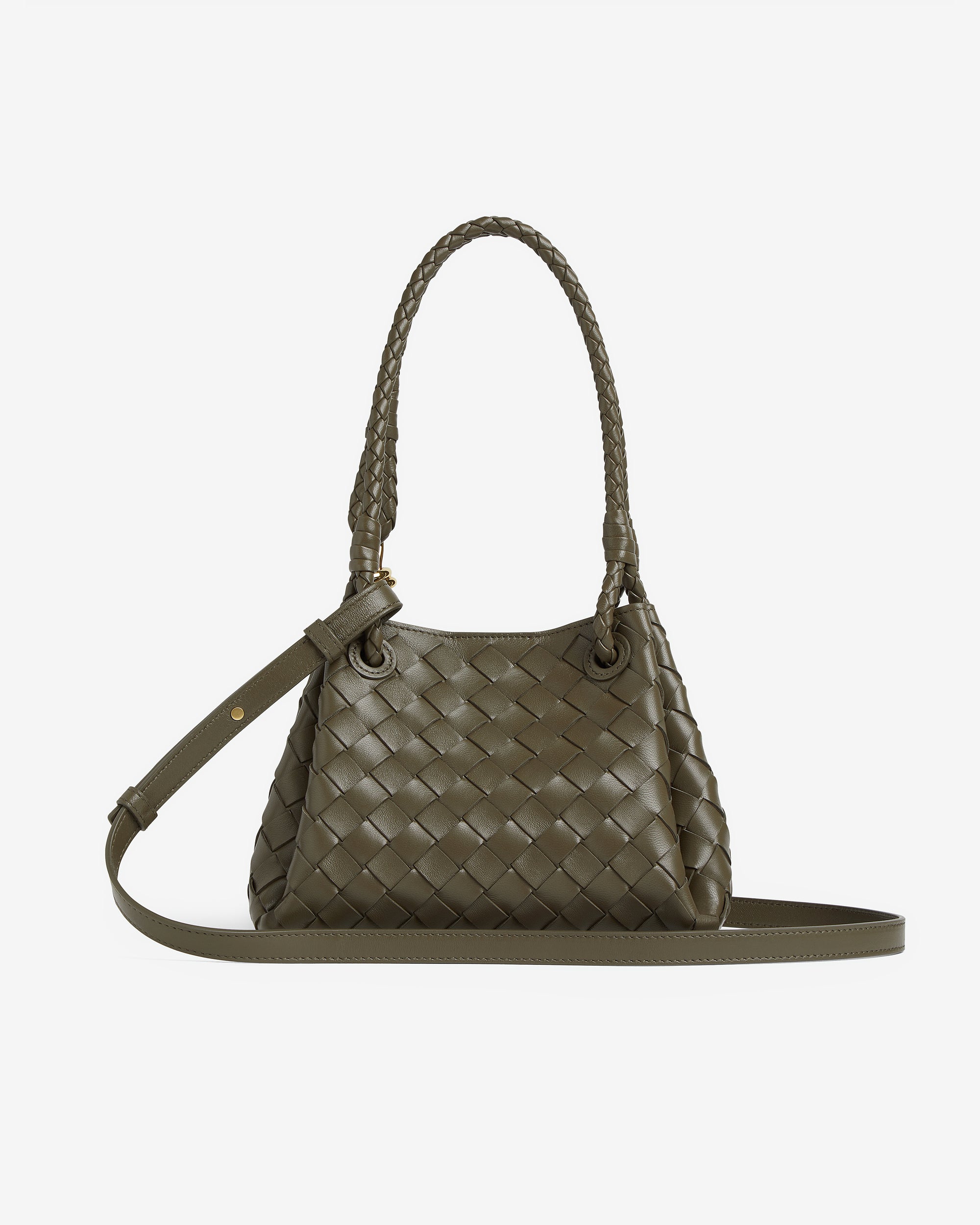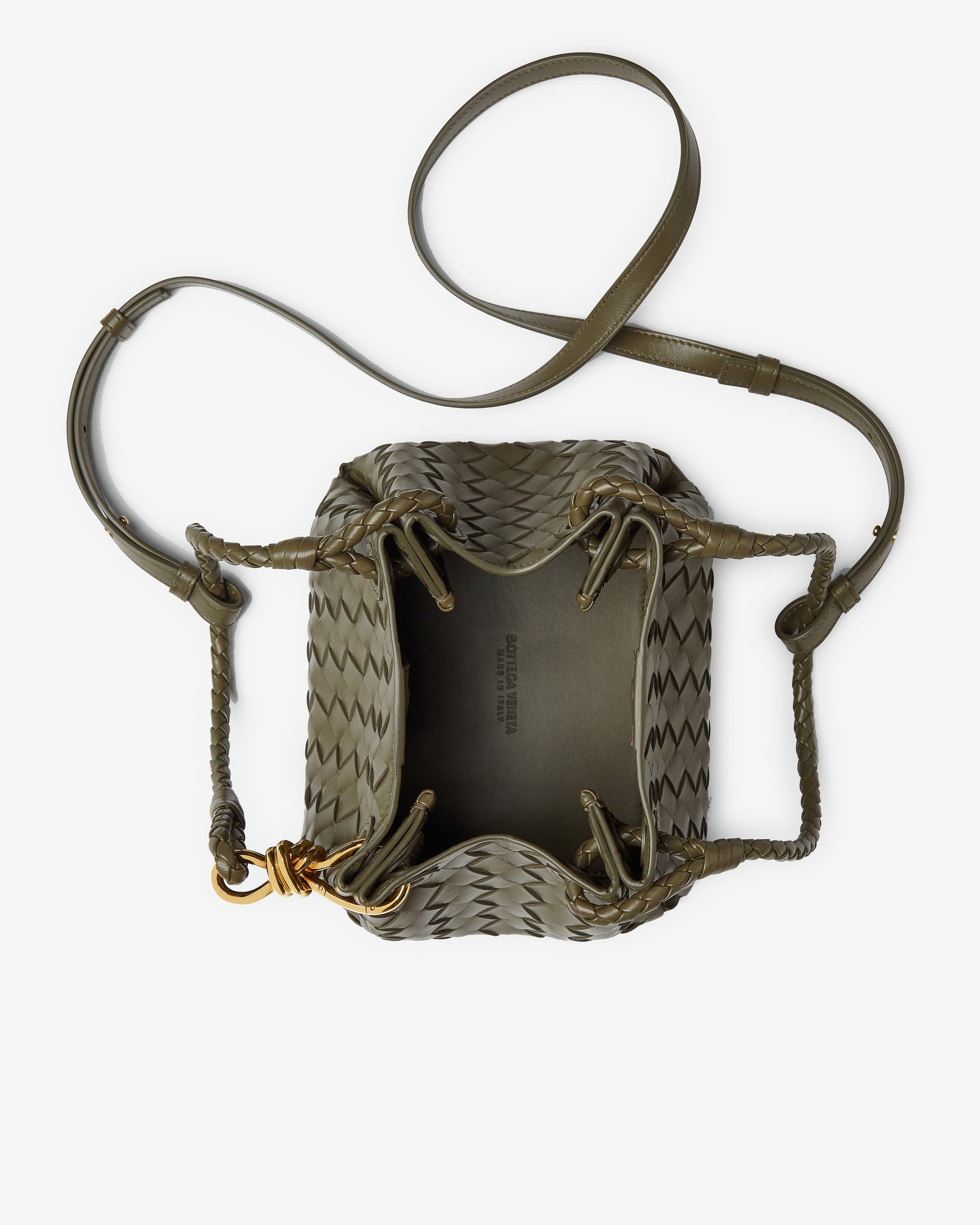 Shoulder bag in supple Intrecciato leather with signature knot detail and detachable cross-body strap.