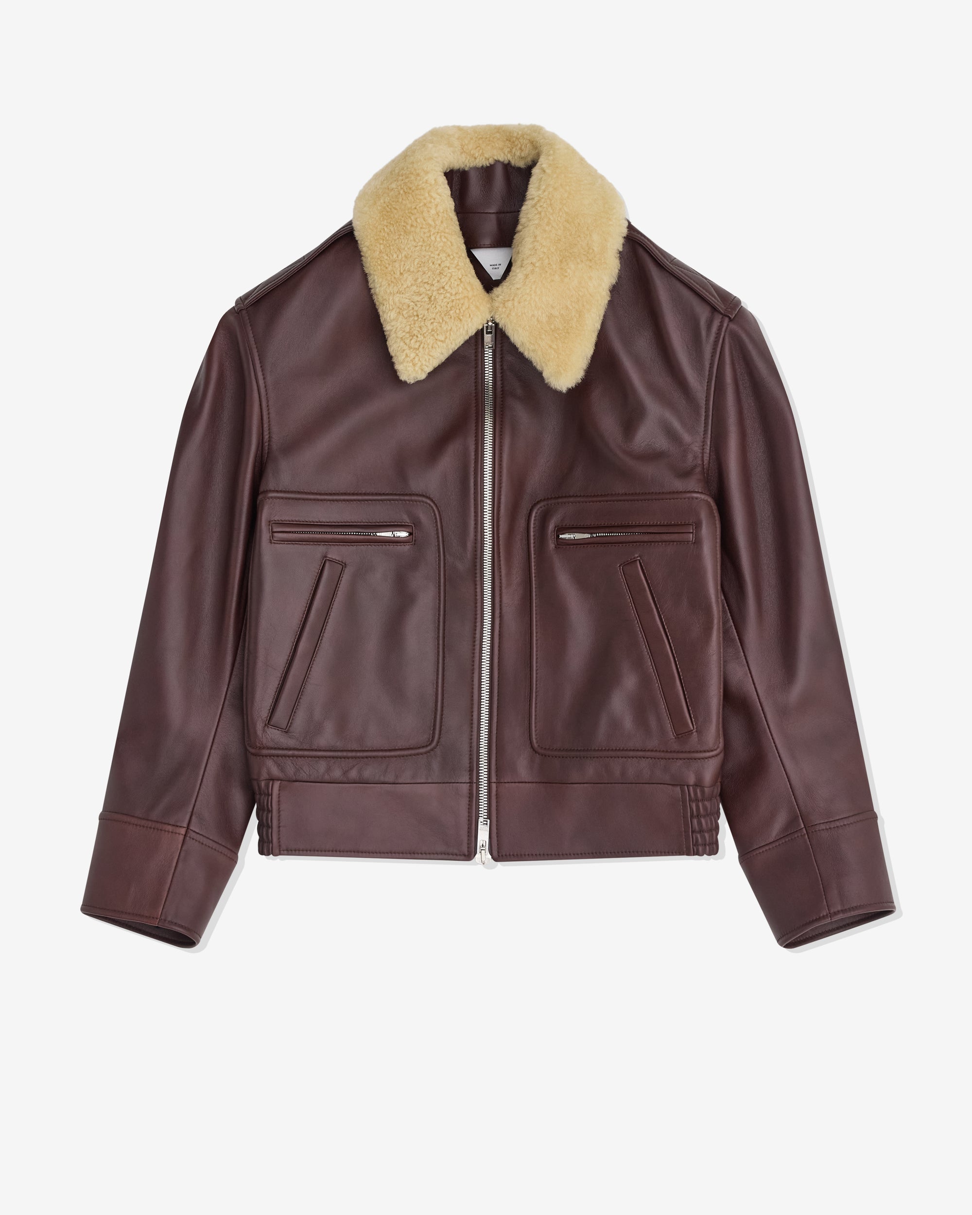 Padded cloudy nappa leather blouson Shearling collar Zip closure Fully lined Regular fit