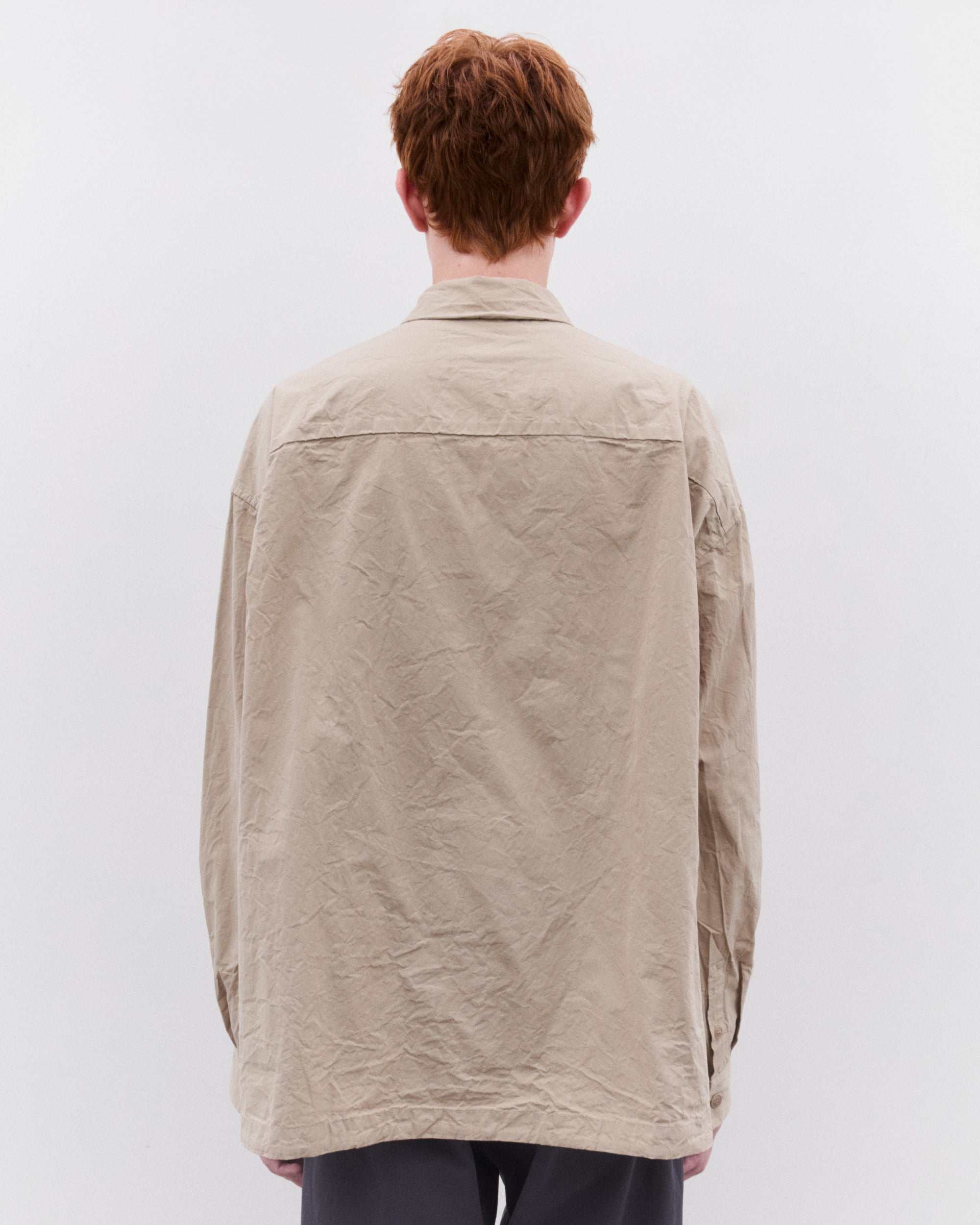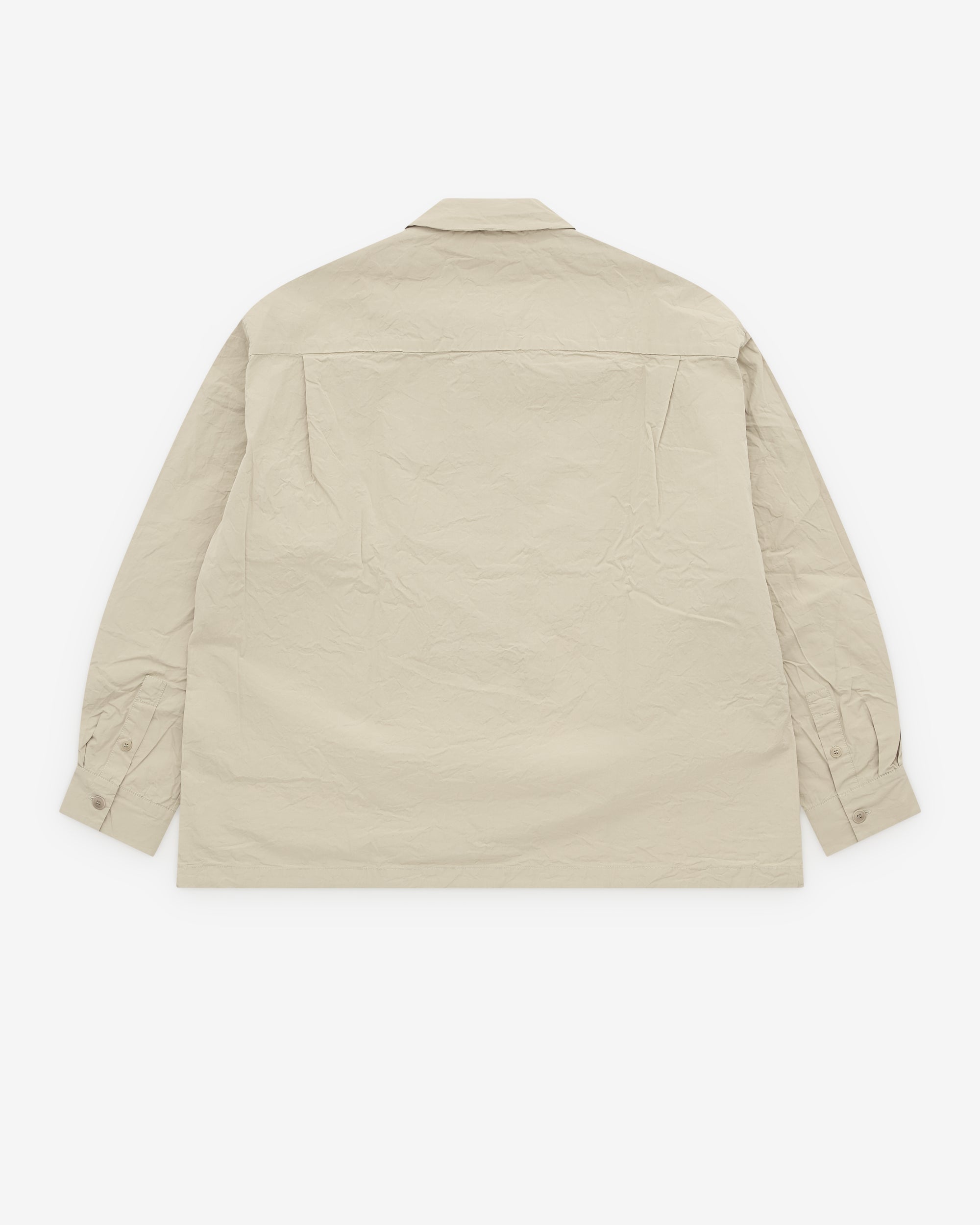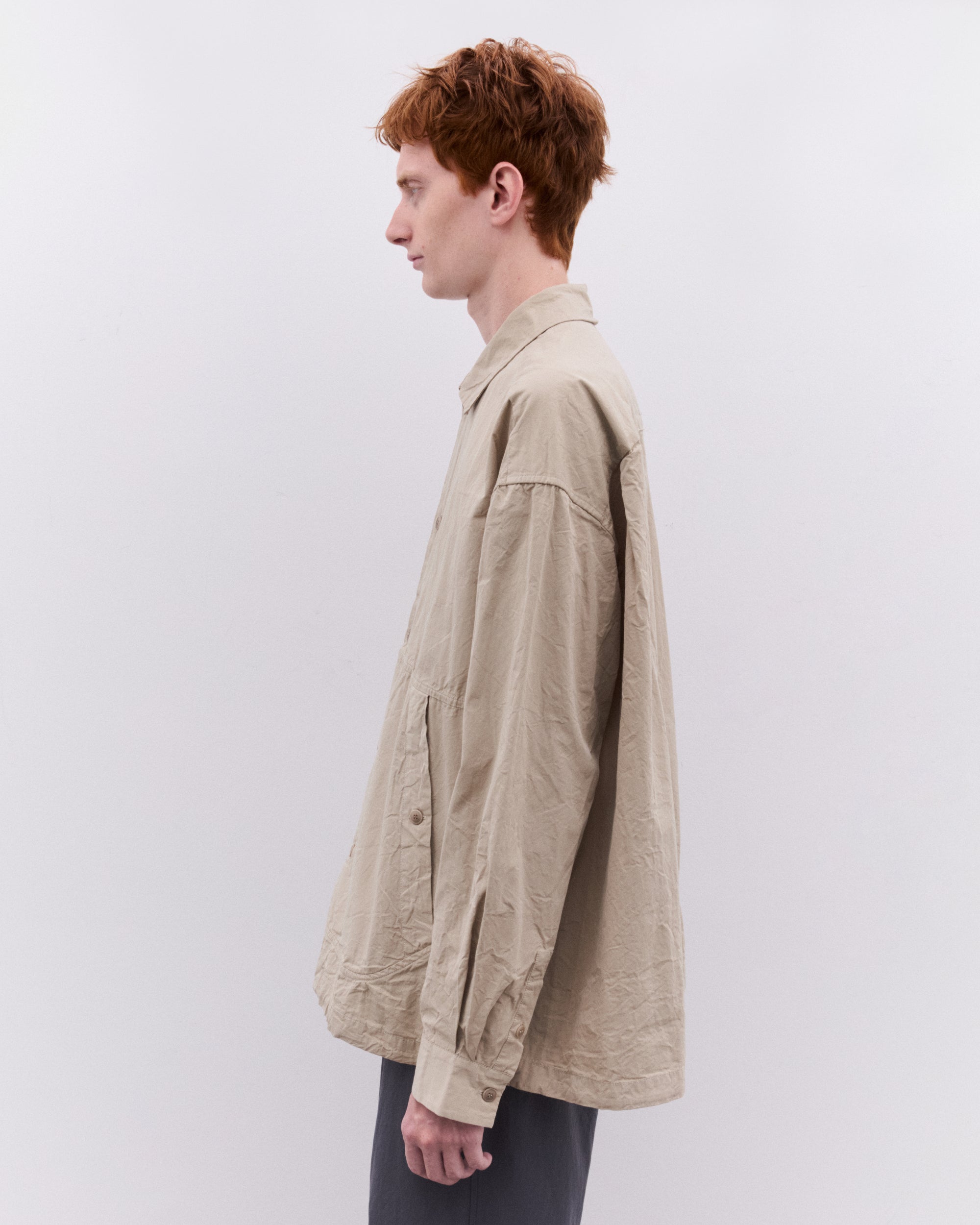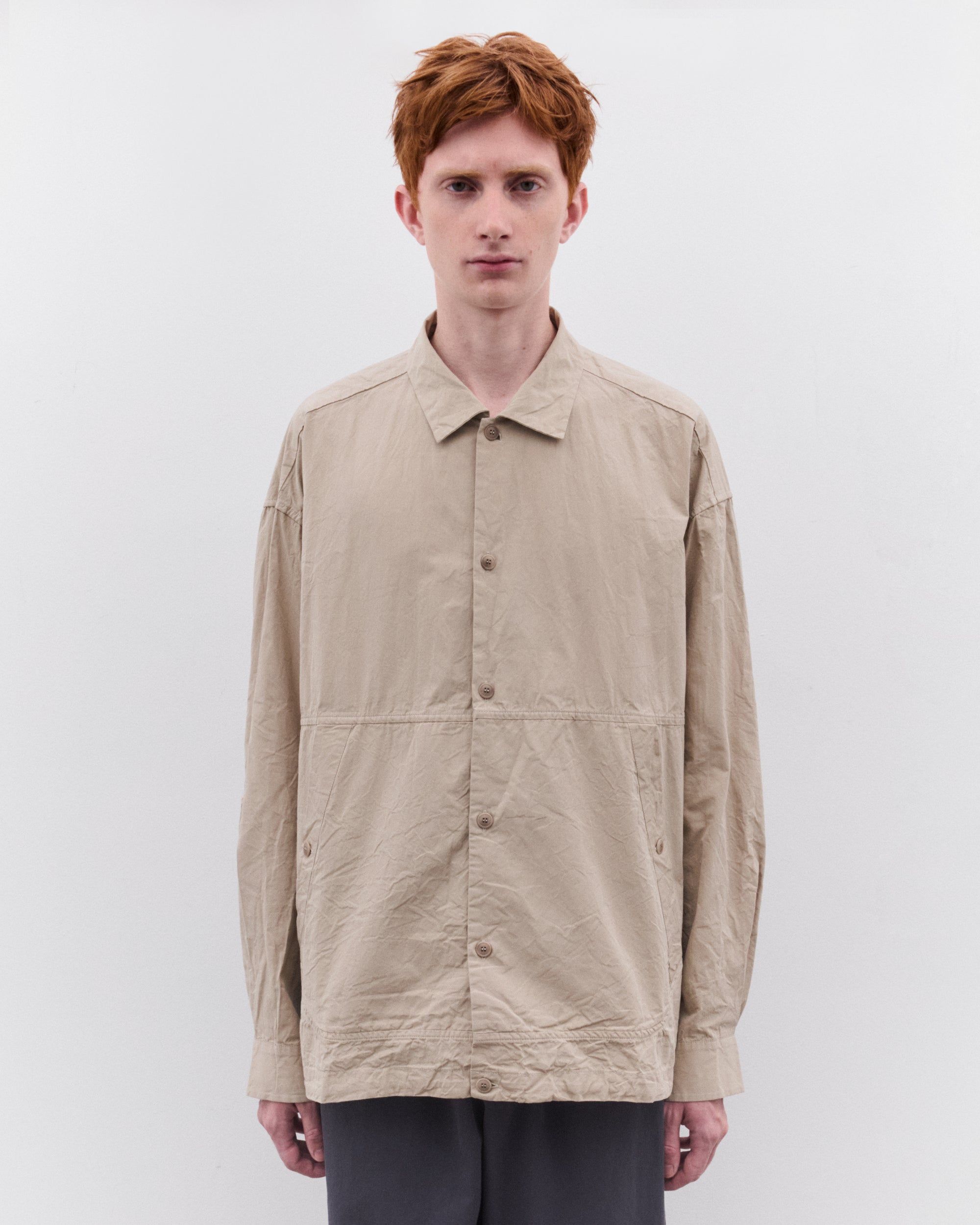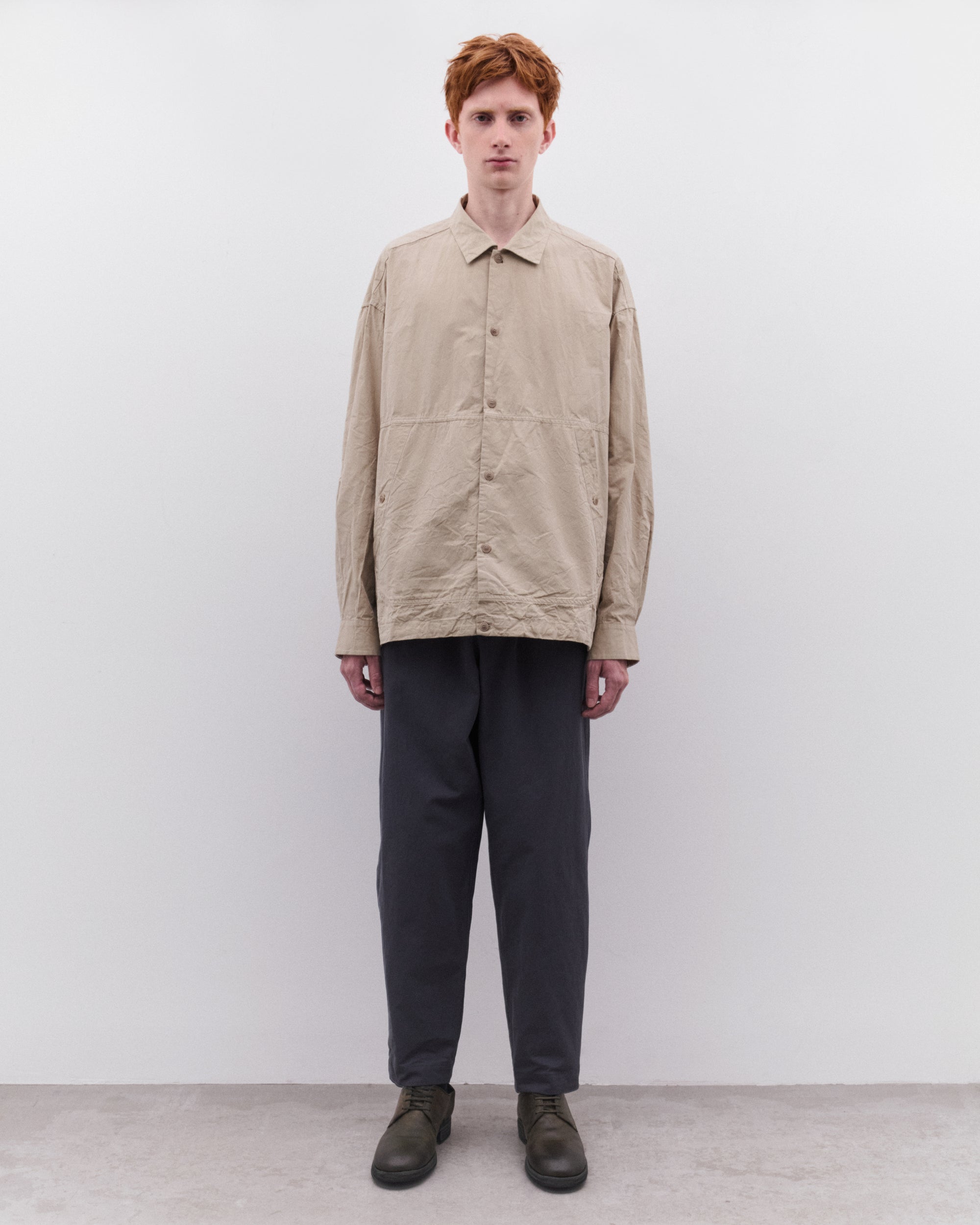 Classic shirt collarFront button closureTwo front button close pocketsStraight hemRear box pleatBoxy fitButton close cuffs