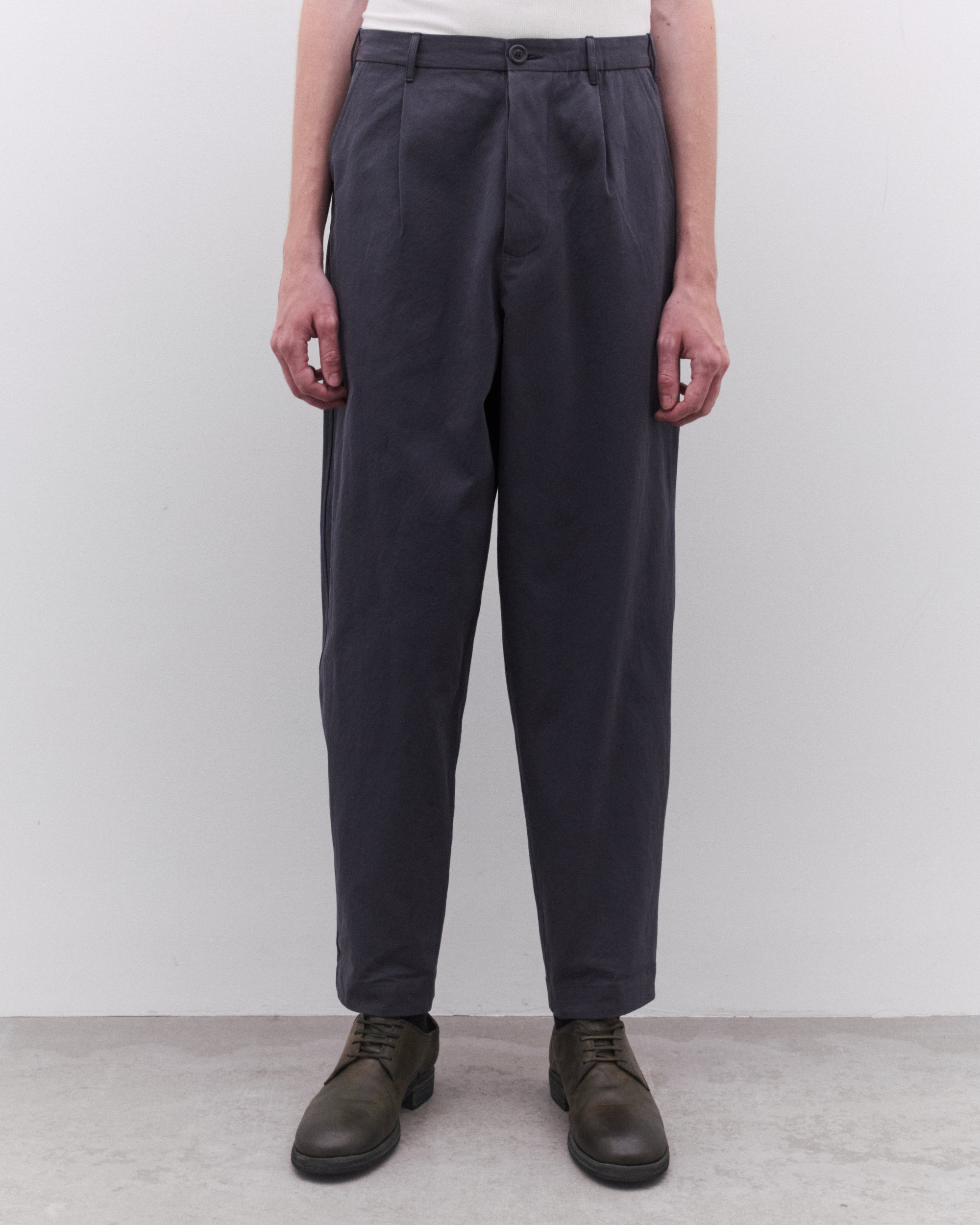 Button and fly closureBelt loopsSide seam pocketsPleated frontTapered leg