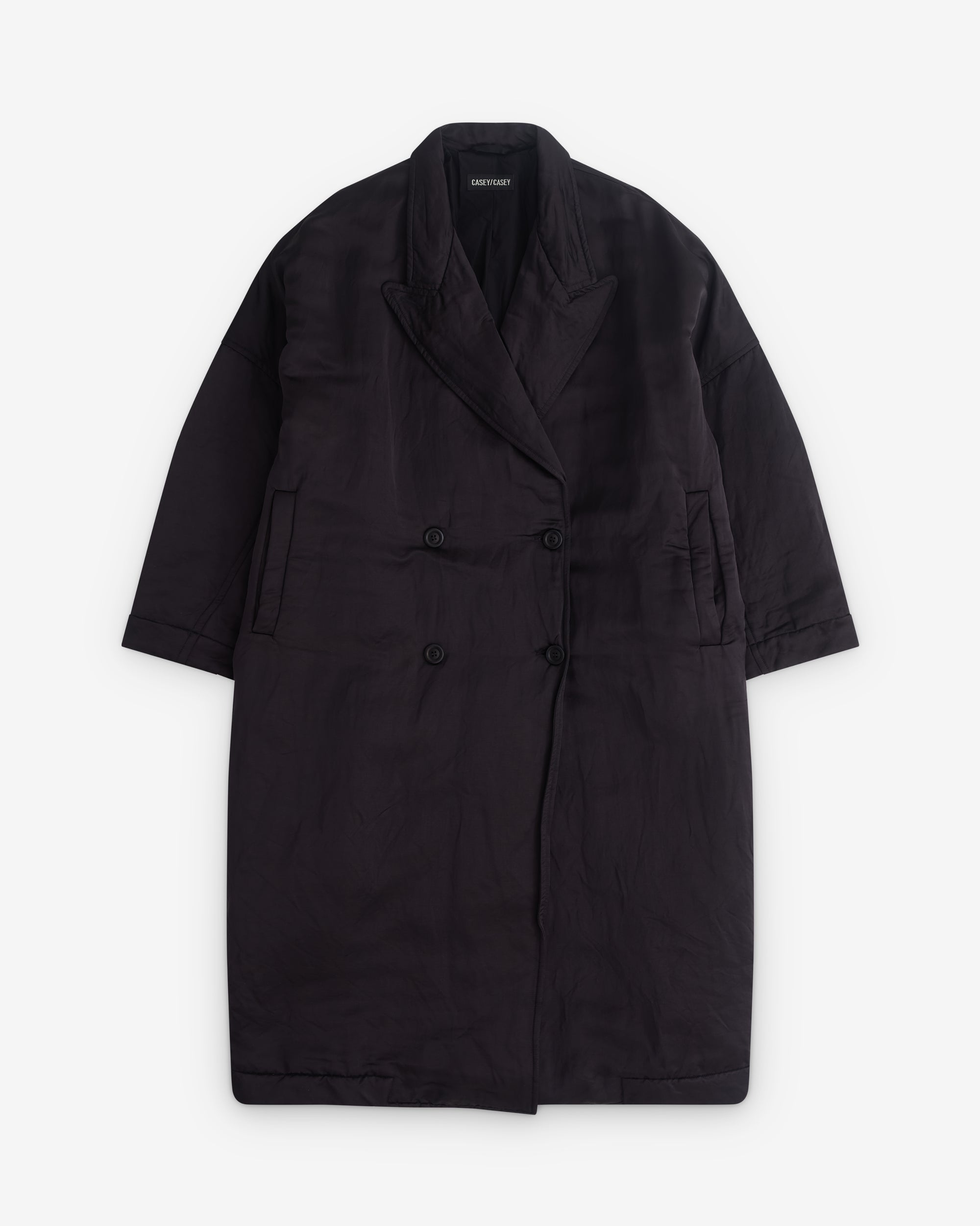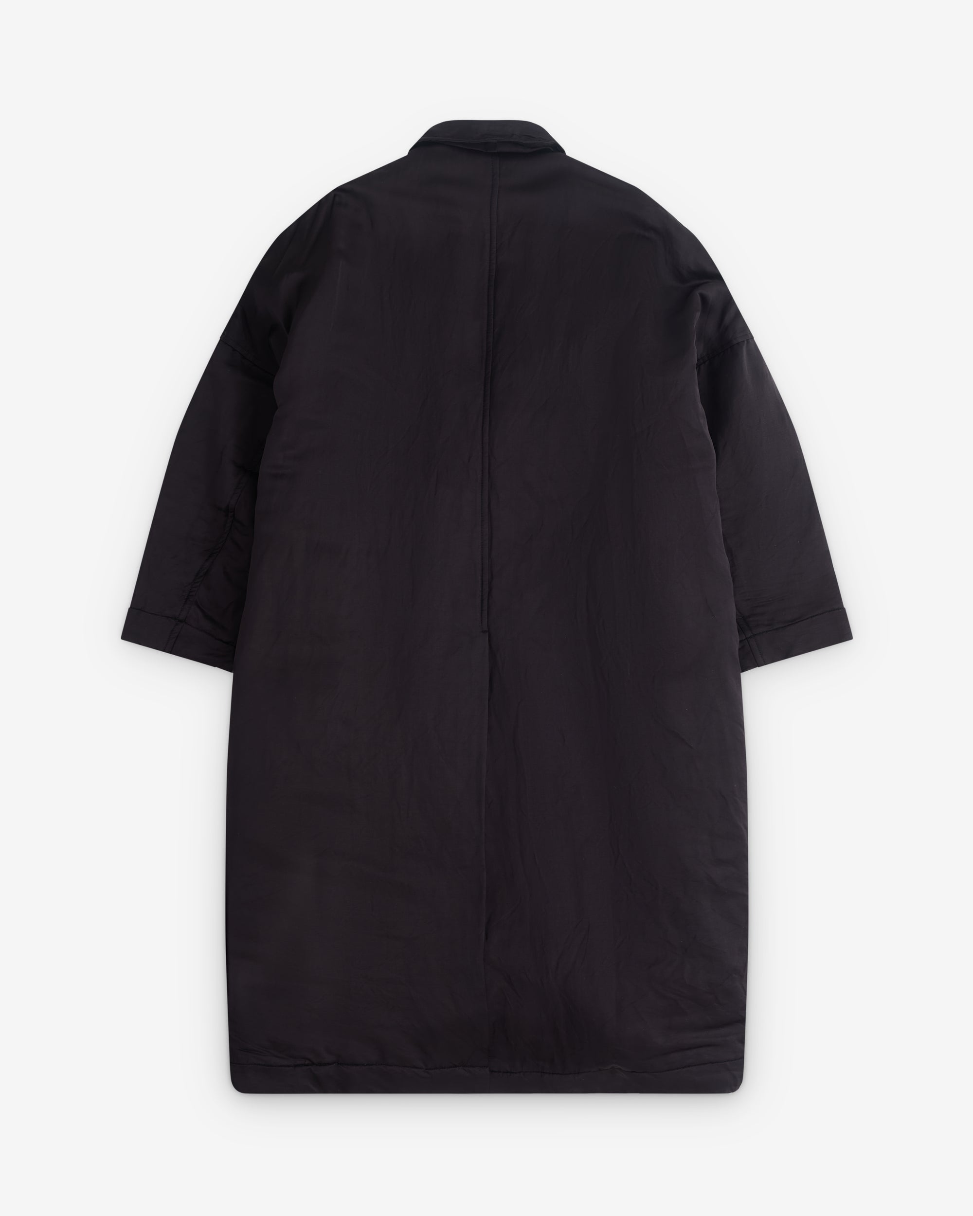 PaddedDouble breastedSide belt pocketsOpen collarDrop shouldersFull length
