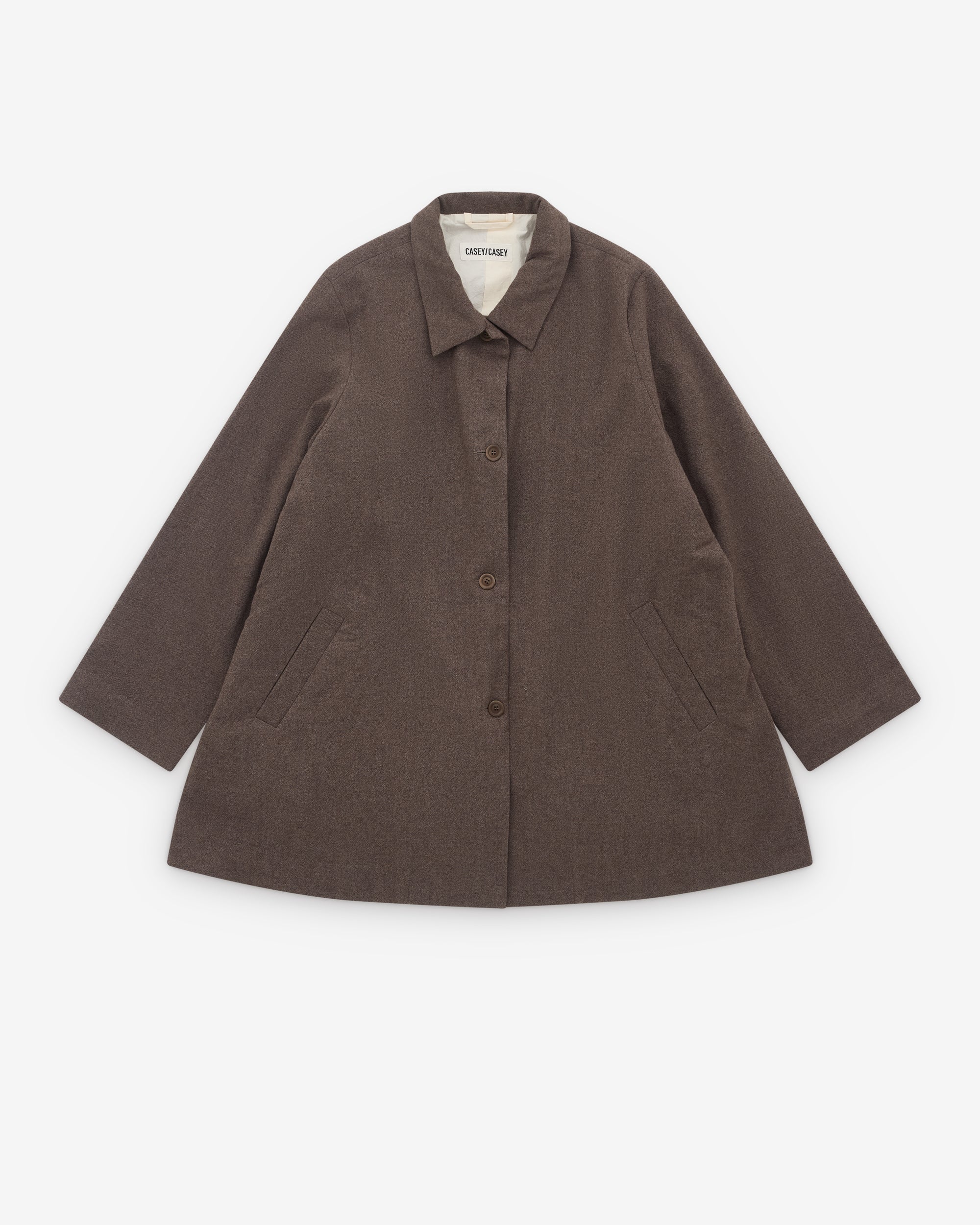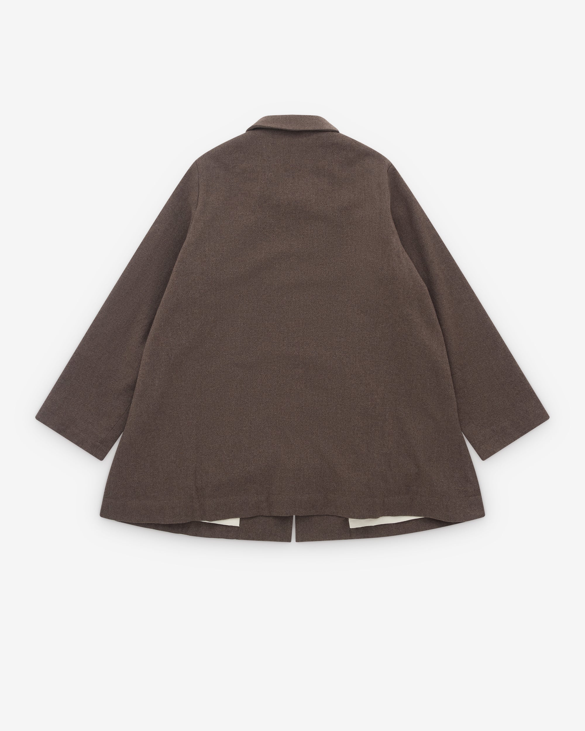Point collarButton fasteningDrop shoulderWelt pocketA-line silhouetteLined