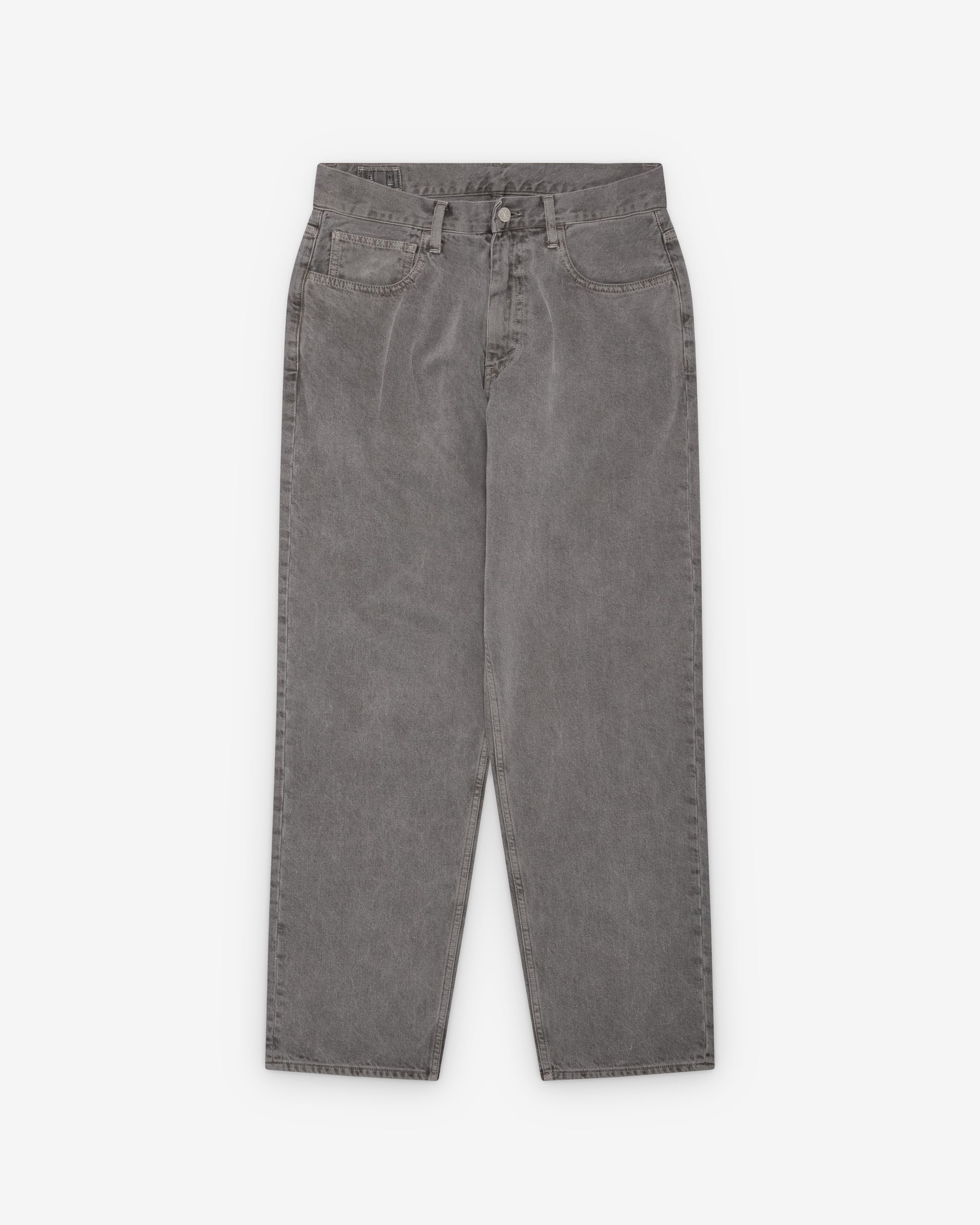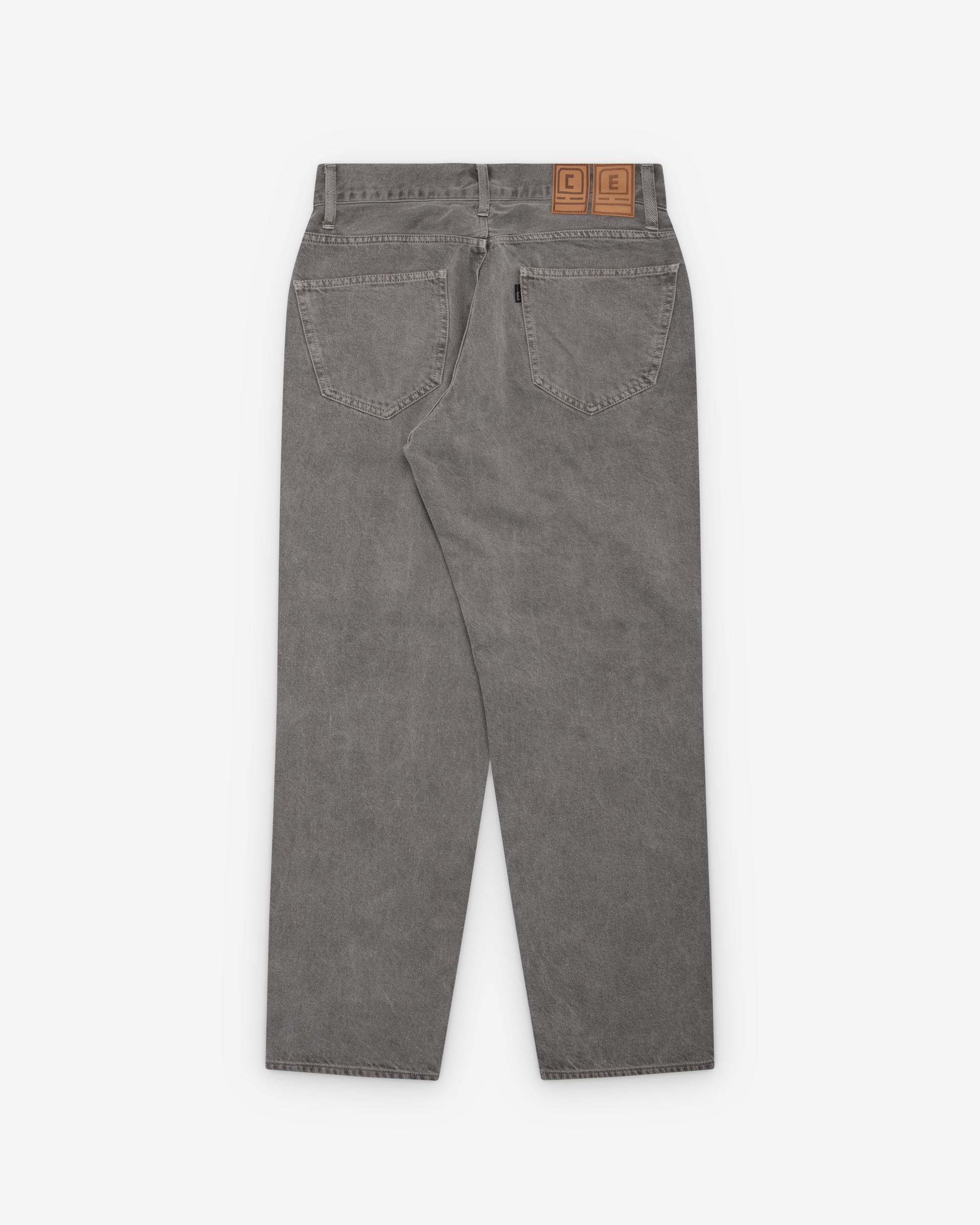 Slightly tapered cutFive pocket constructionButton and fly closureLeather patch on back