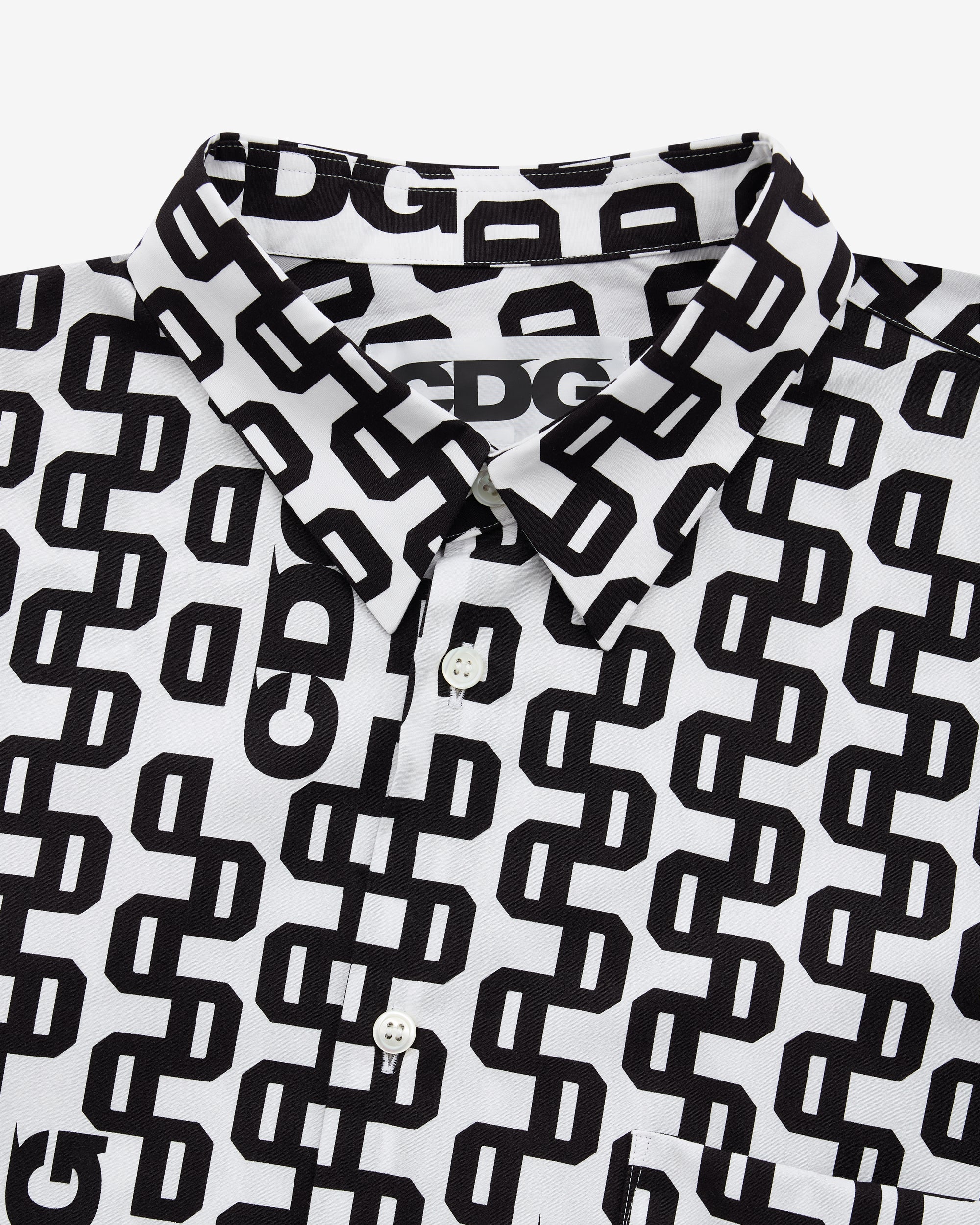 Point collarAsymmetric button fasteningPatch pocket at chestAll over print