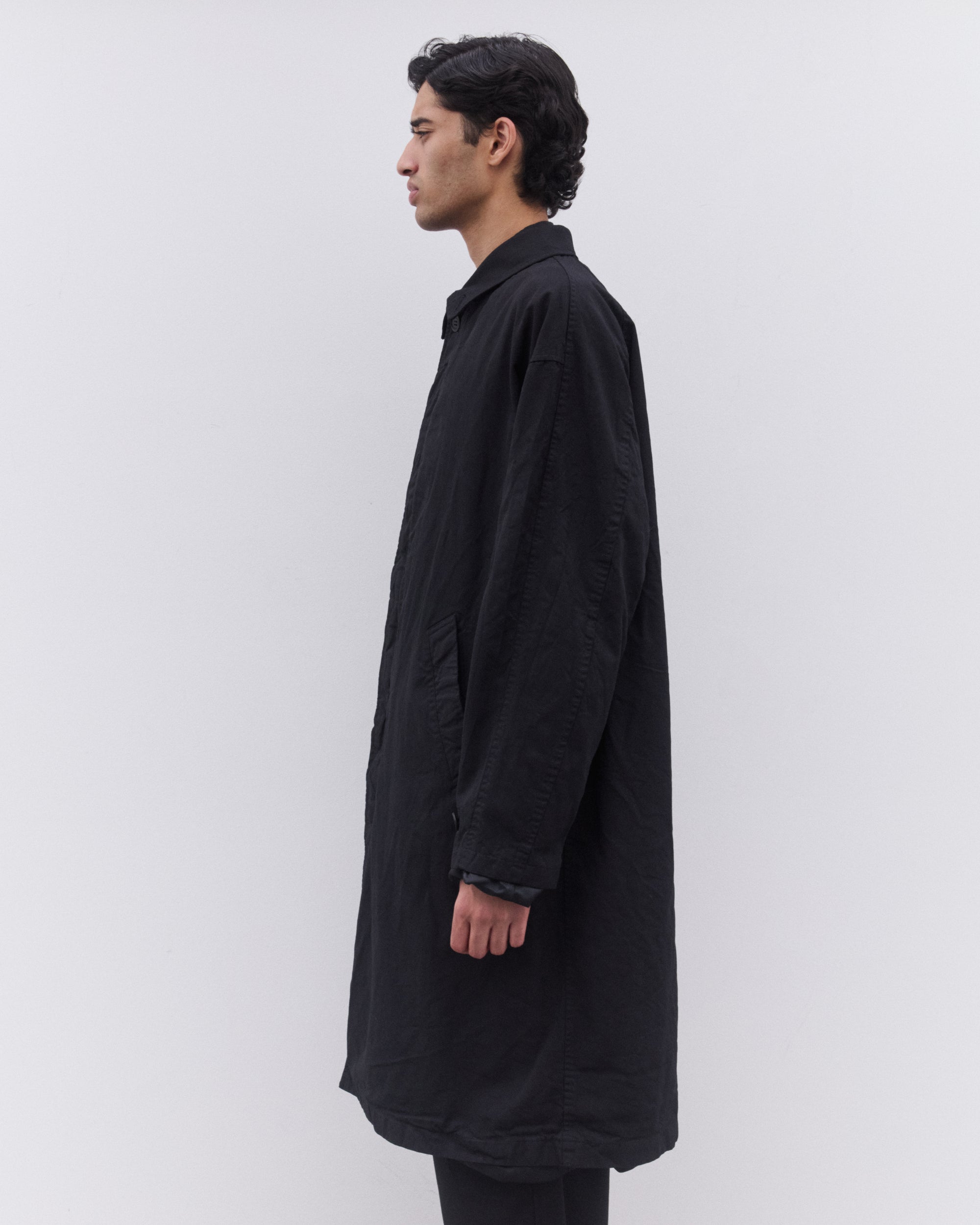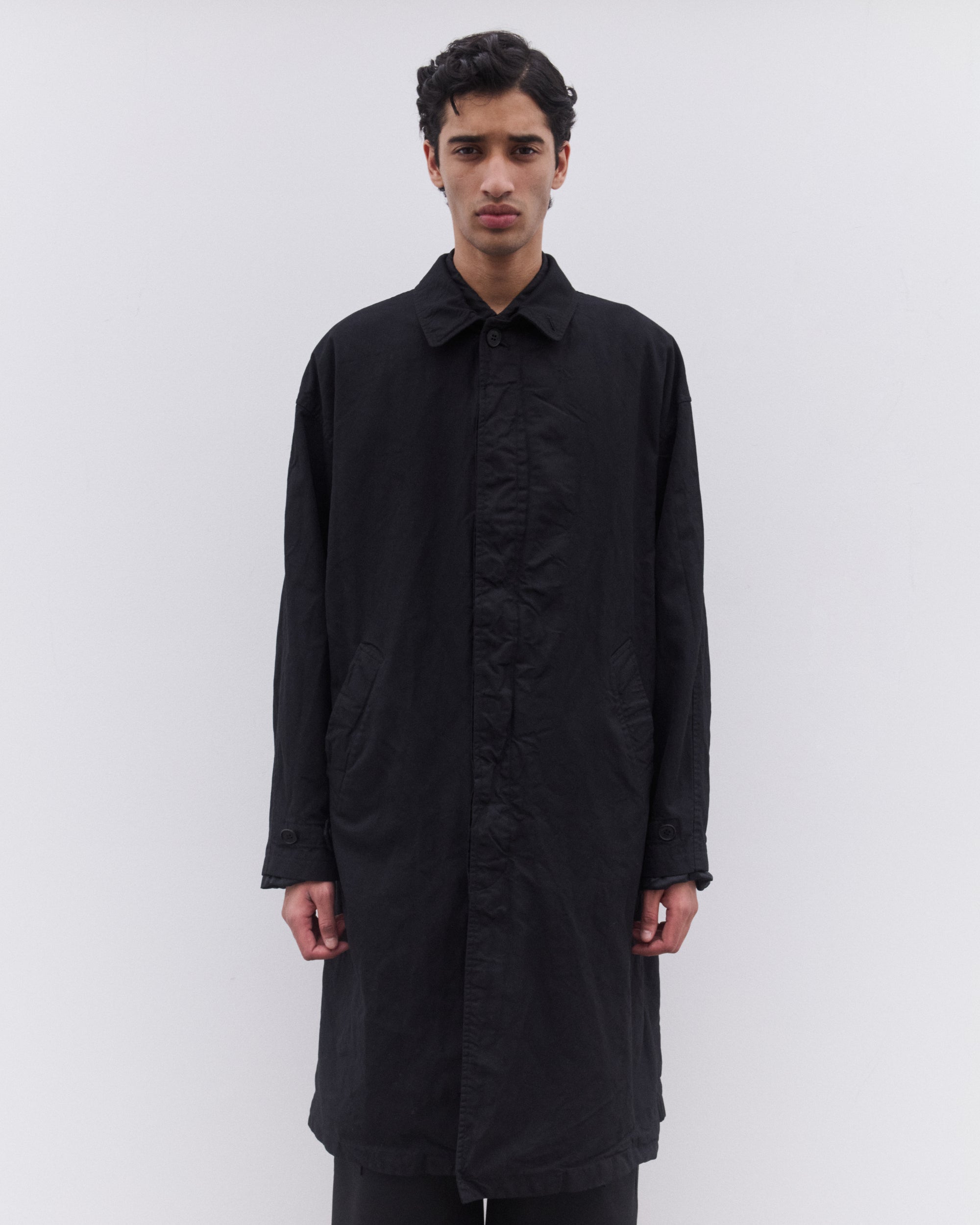 Garment dyed fabricClassic coat collarFront concealed button closureFront pocketsAdjustable button cuffsFull internal lining Split rear seam Drop shoulders