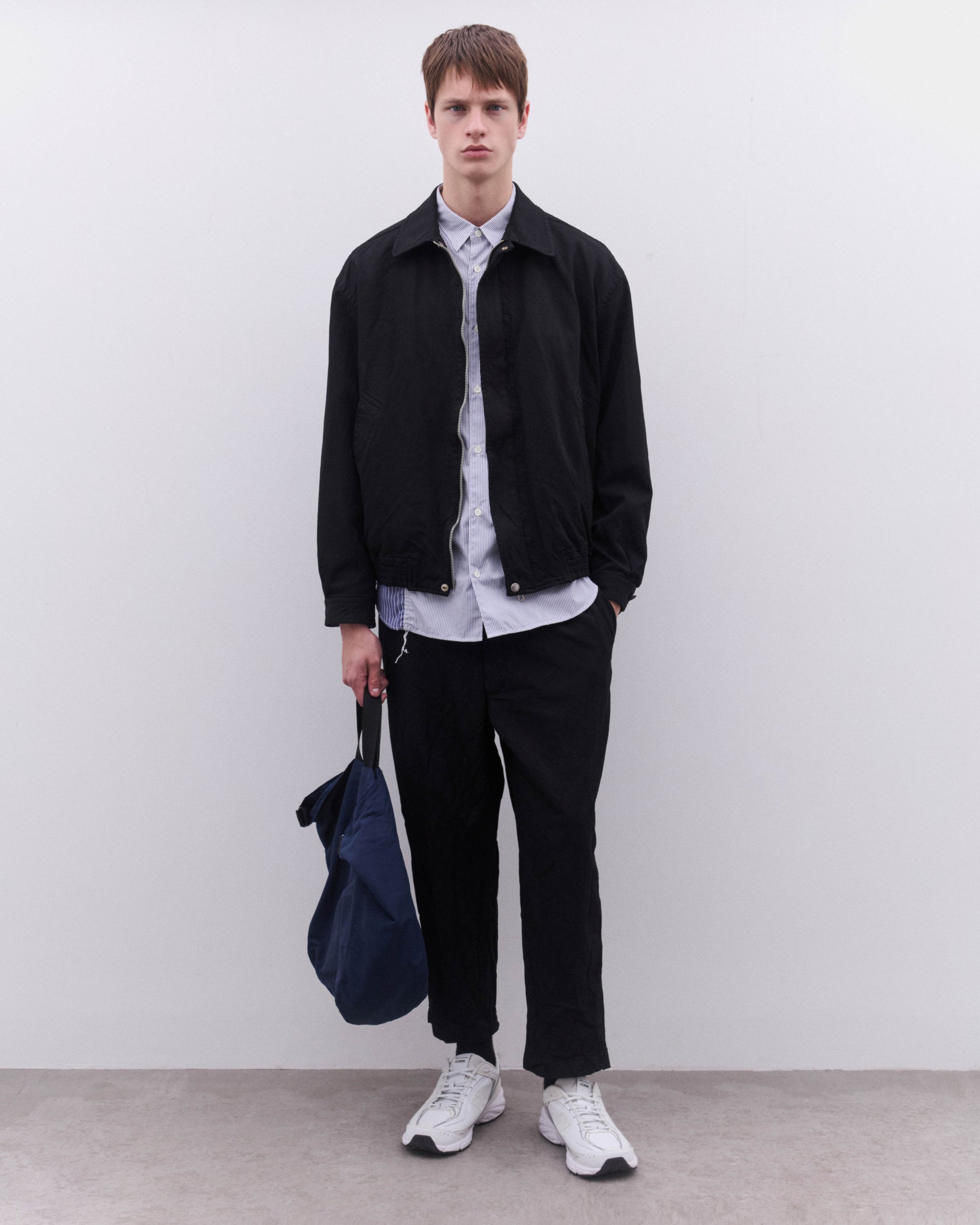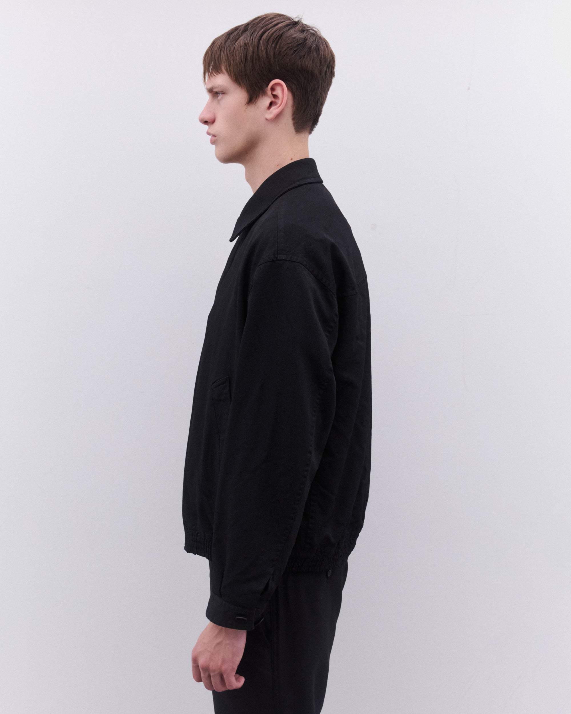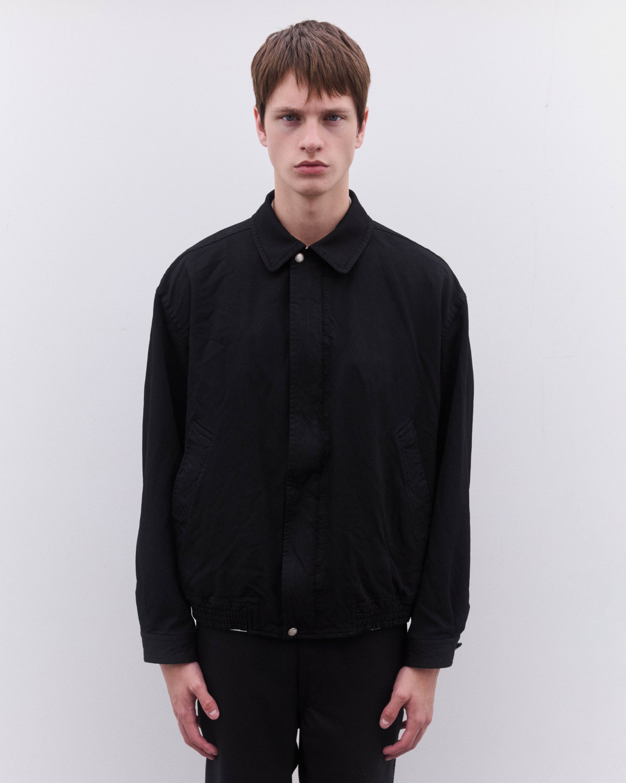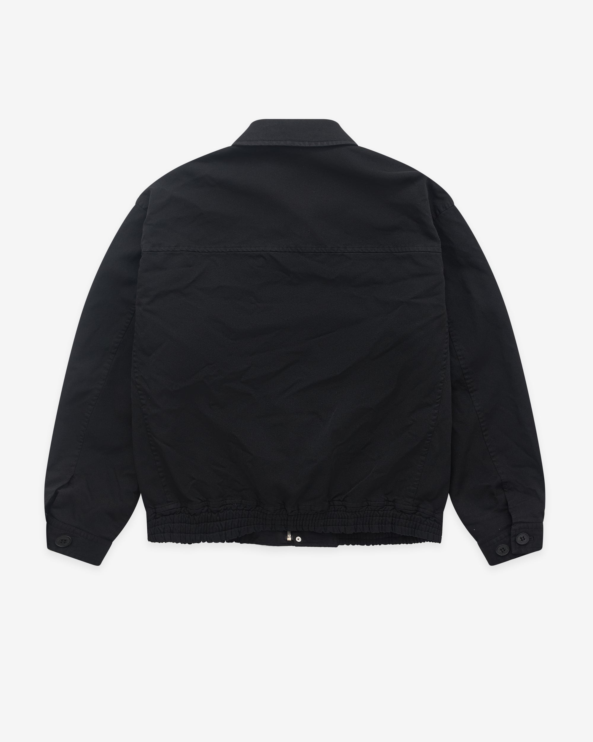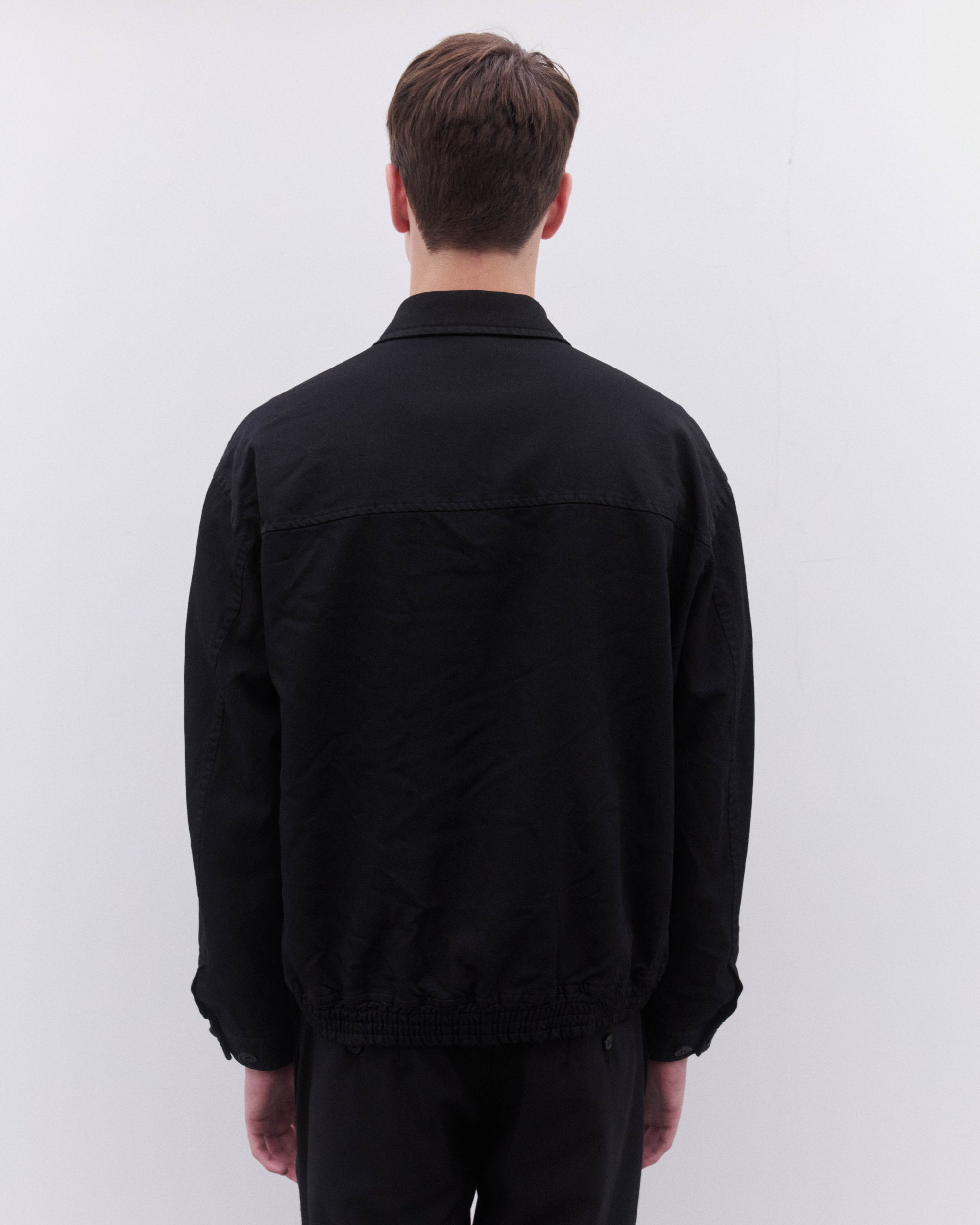 Point collarElasticated waist and cuffConcealed placket with zip and press stud fasteningLinedBoxy fitButton cuffs