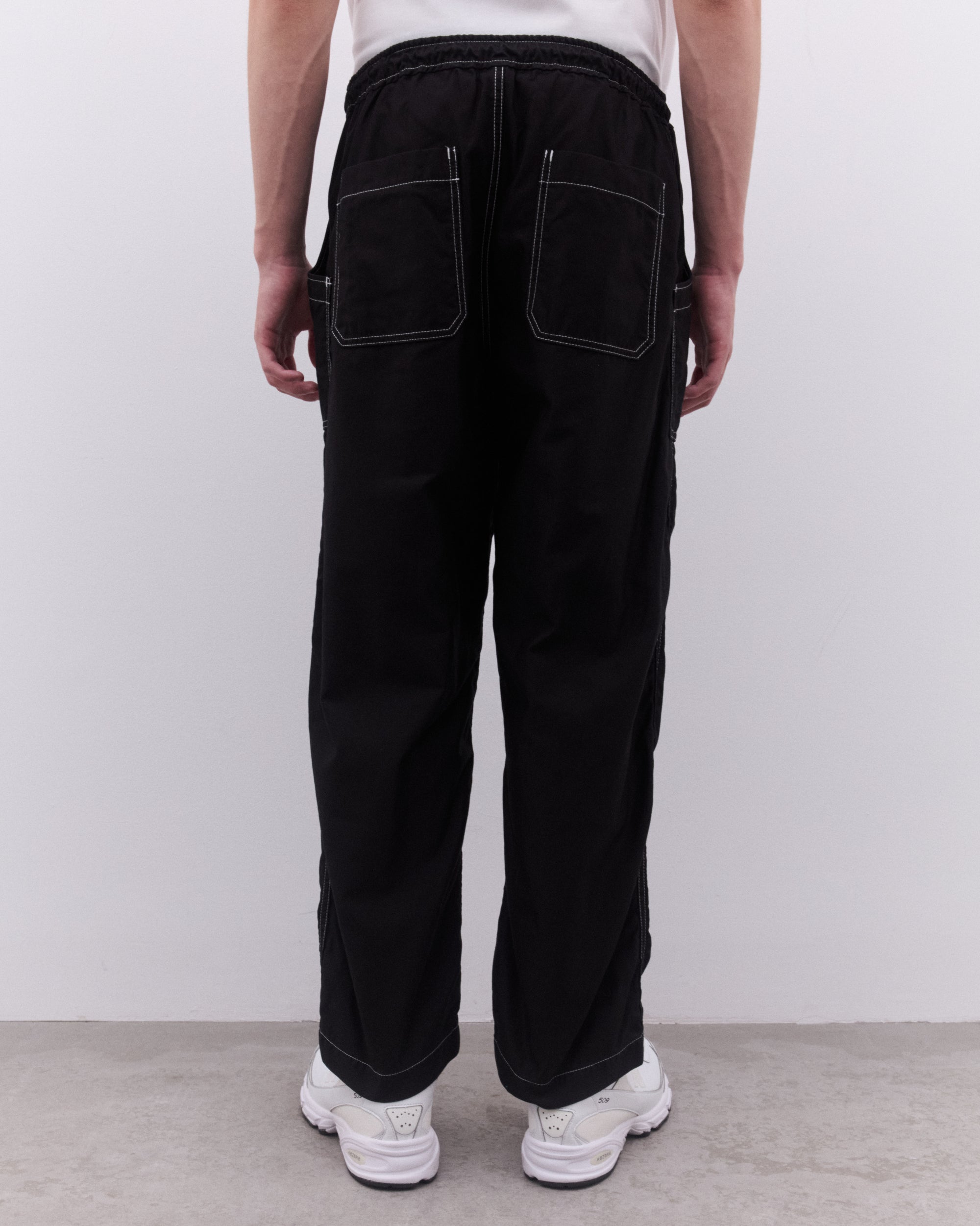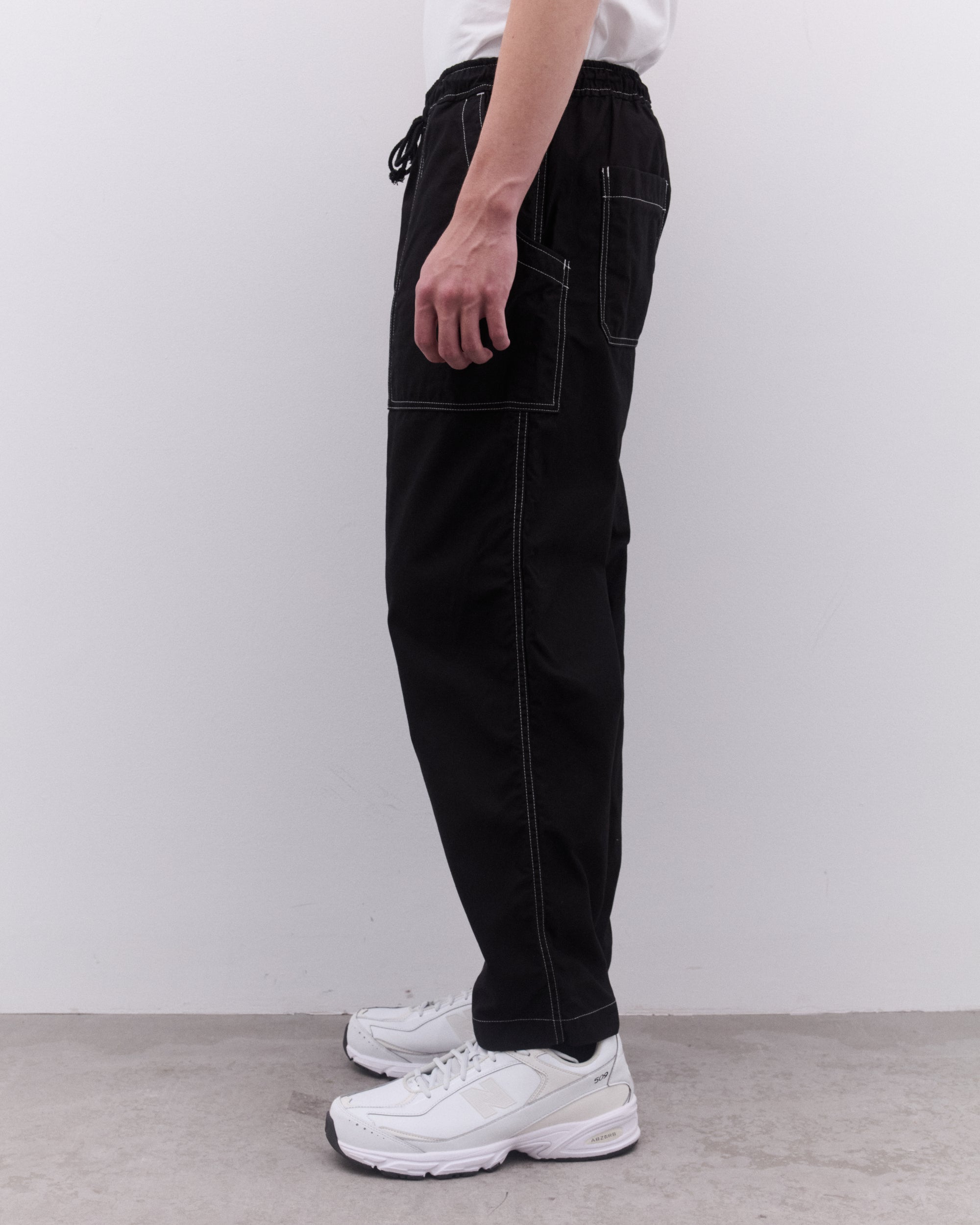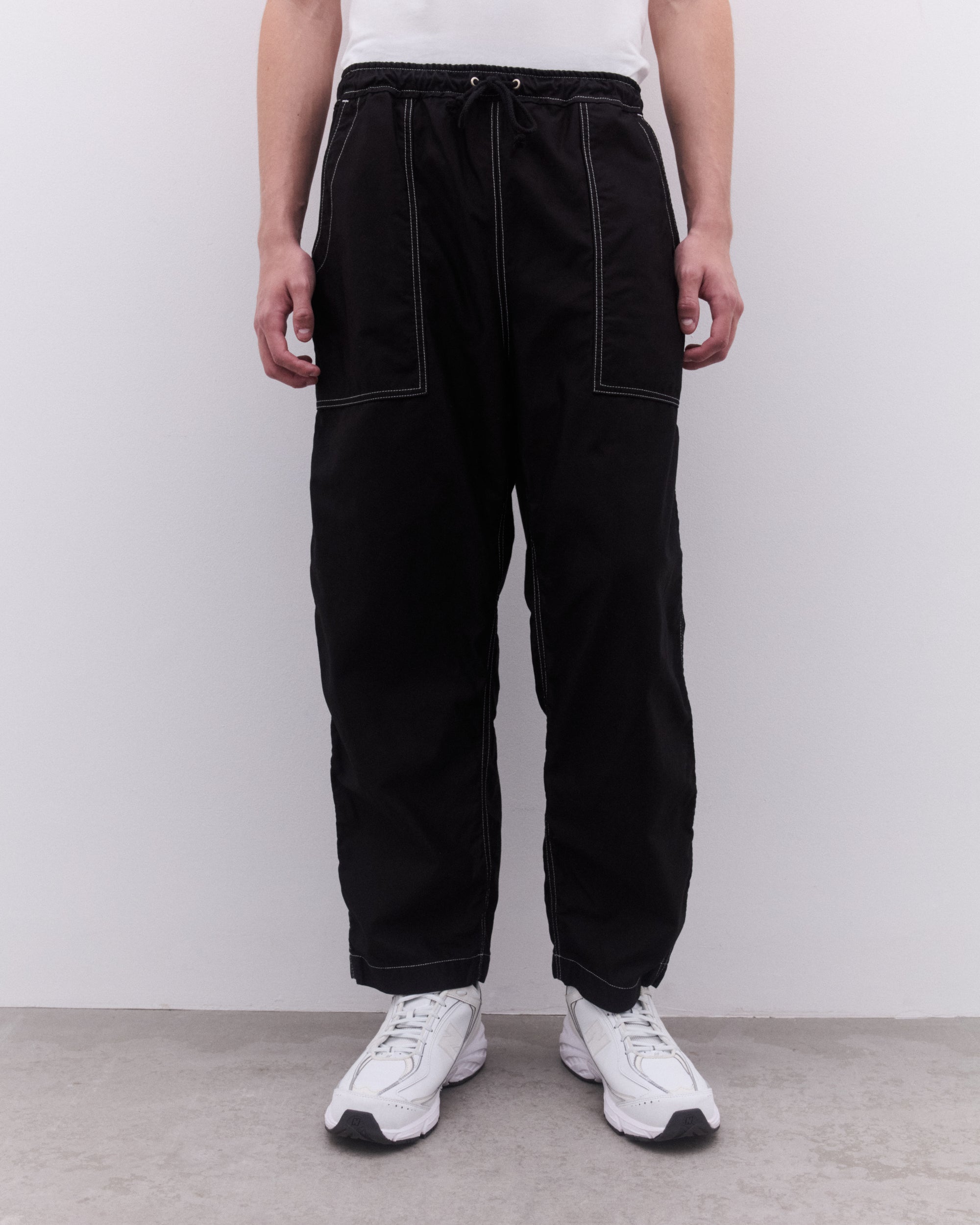 Elasticated waist with drawcord Top stitching throughoutTapered legPatch pockets at front and rearSilver-tone hardware