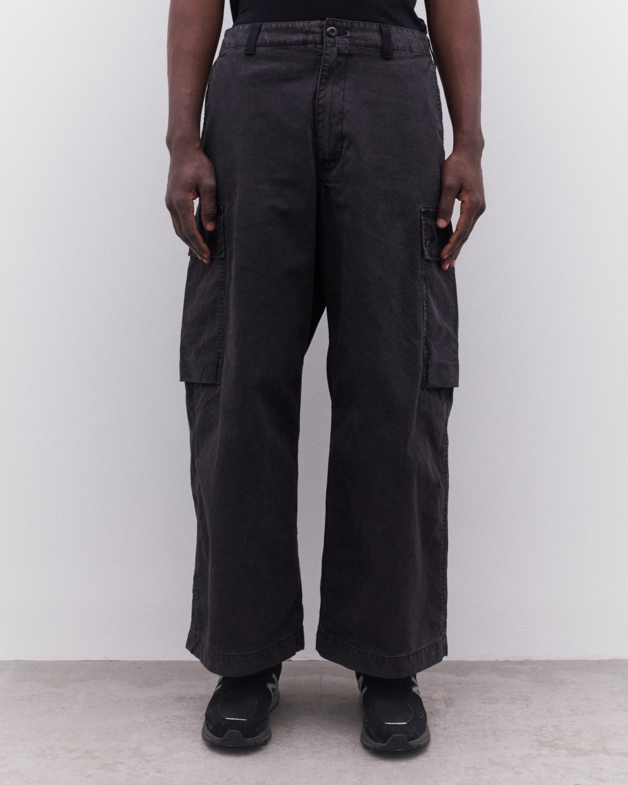 Wide legButton patch pockets at legButton and zip fly fasteningSide seam pocketsButton tap adjusters at waistRear button flap pockets