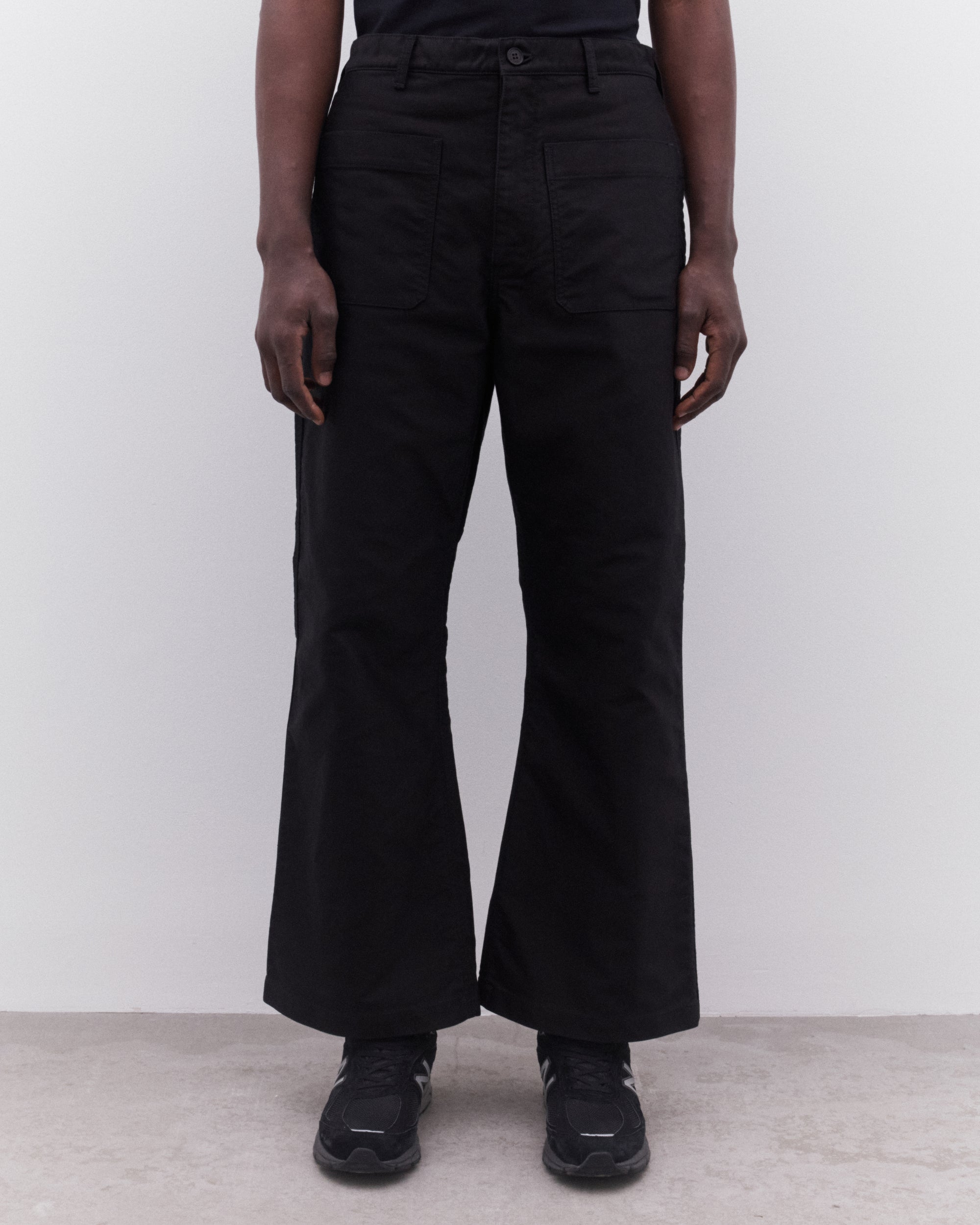Double front patch pocketsRear button patch pocketsStraight legButton and zip fly fasteningBelt loops