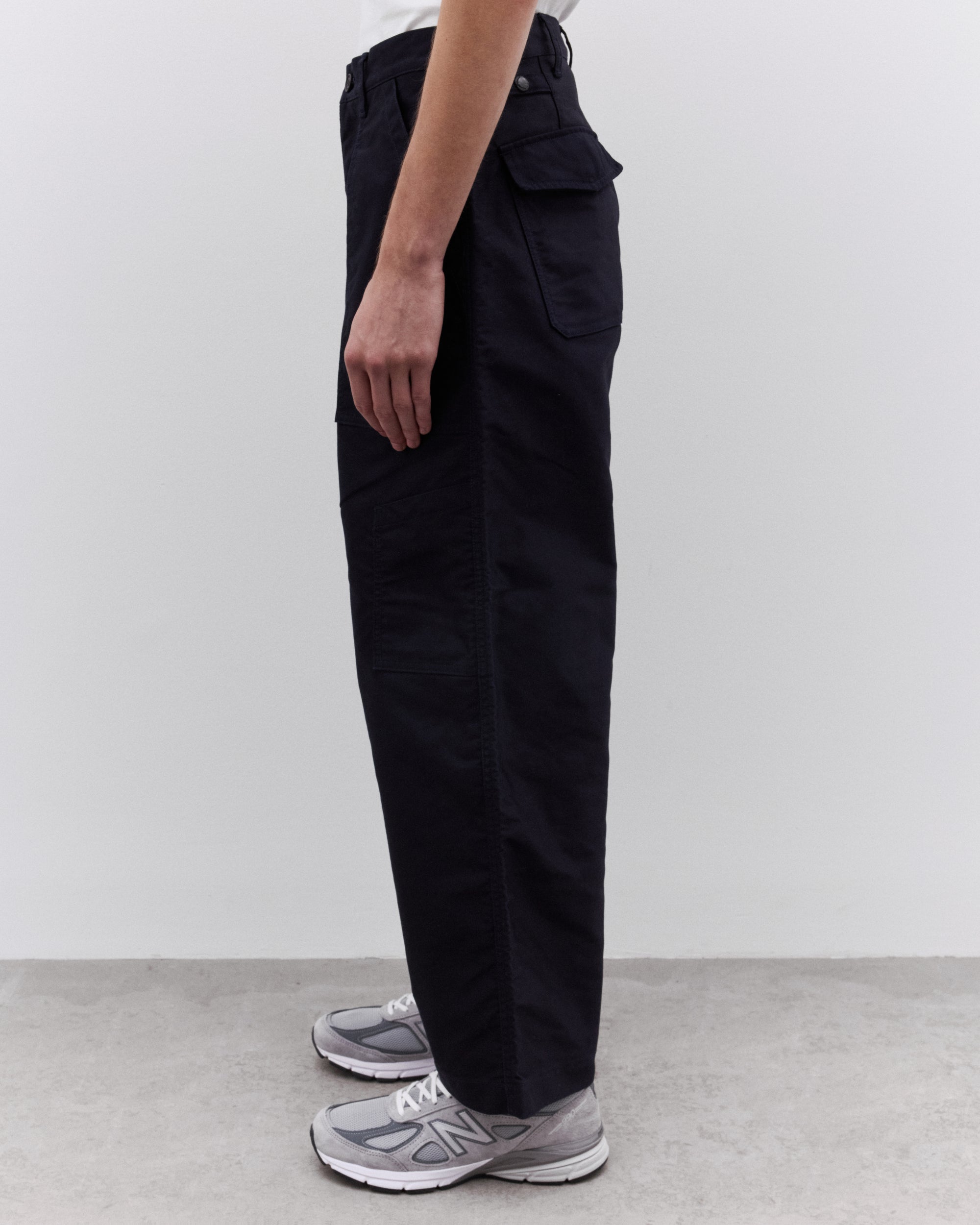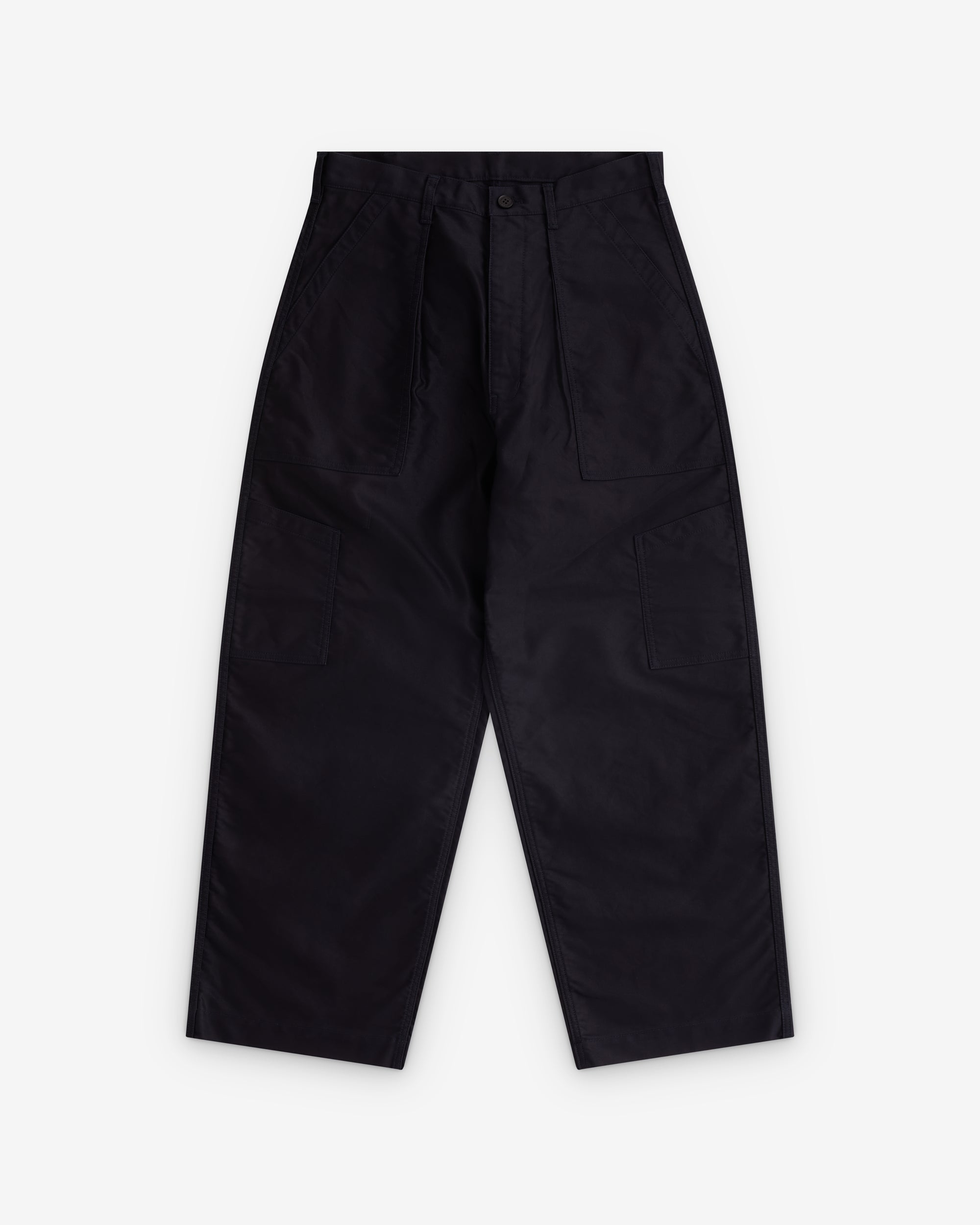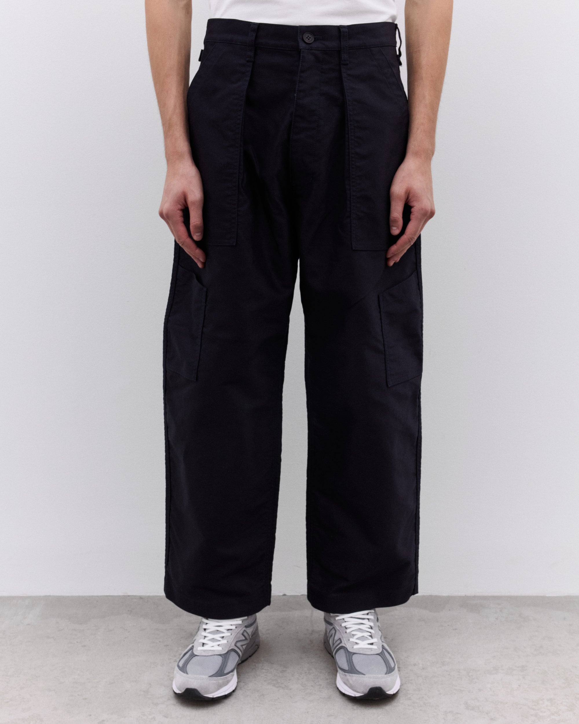 Tapered legFront patch pocketsButton and zip fly fasteningBelt loopsFull length