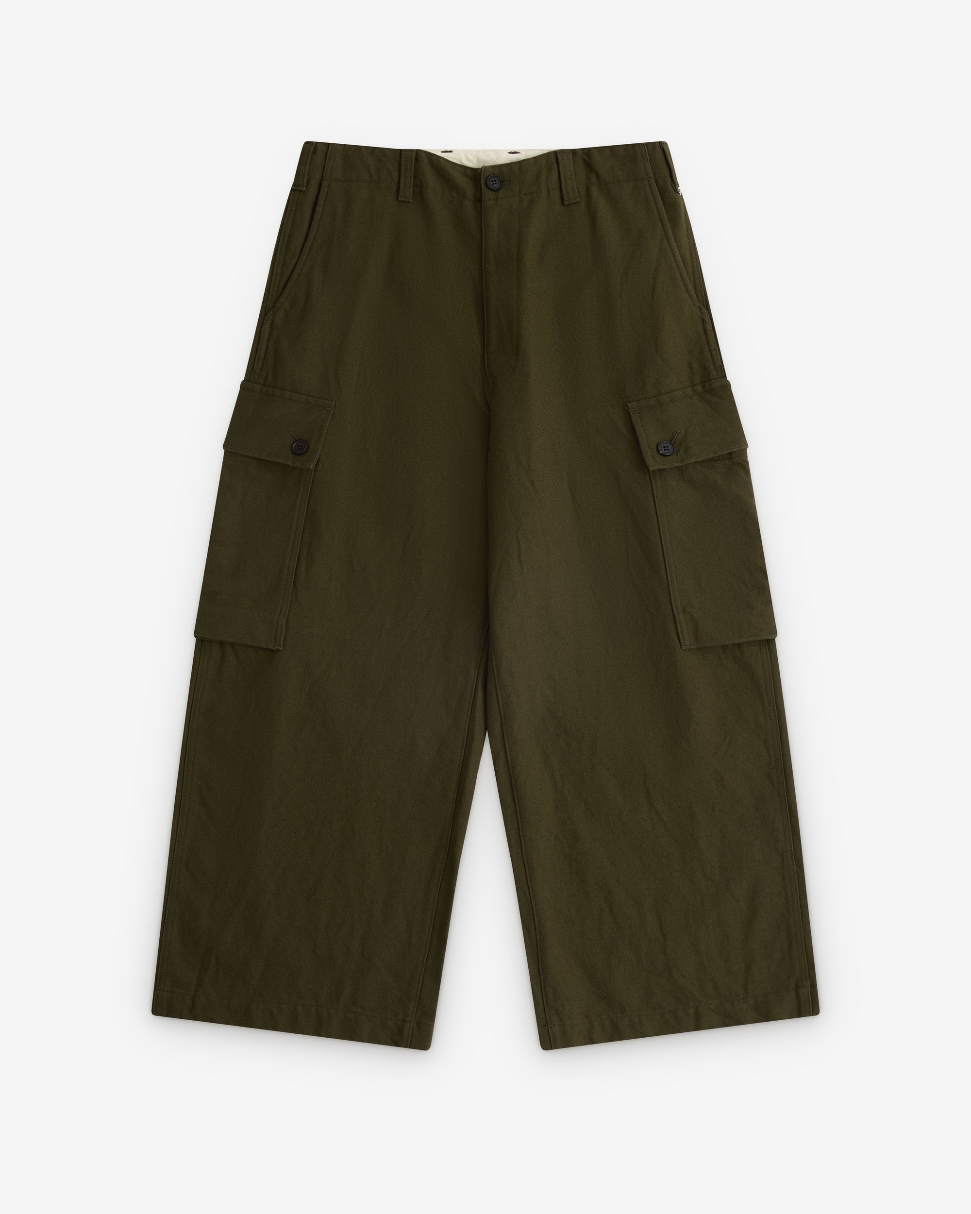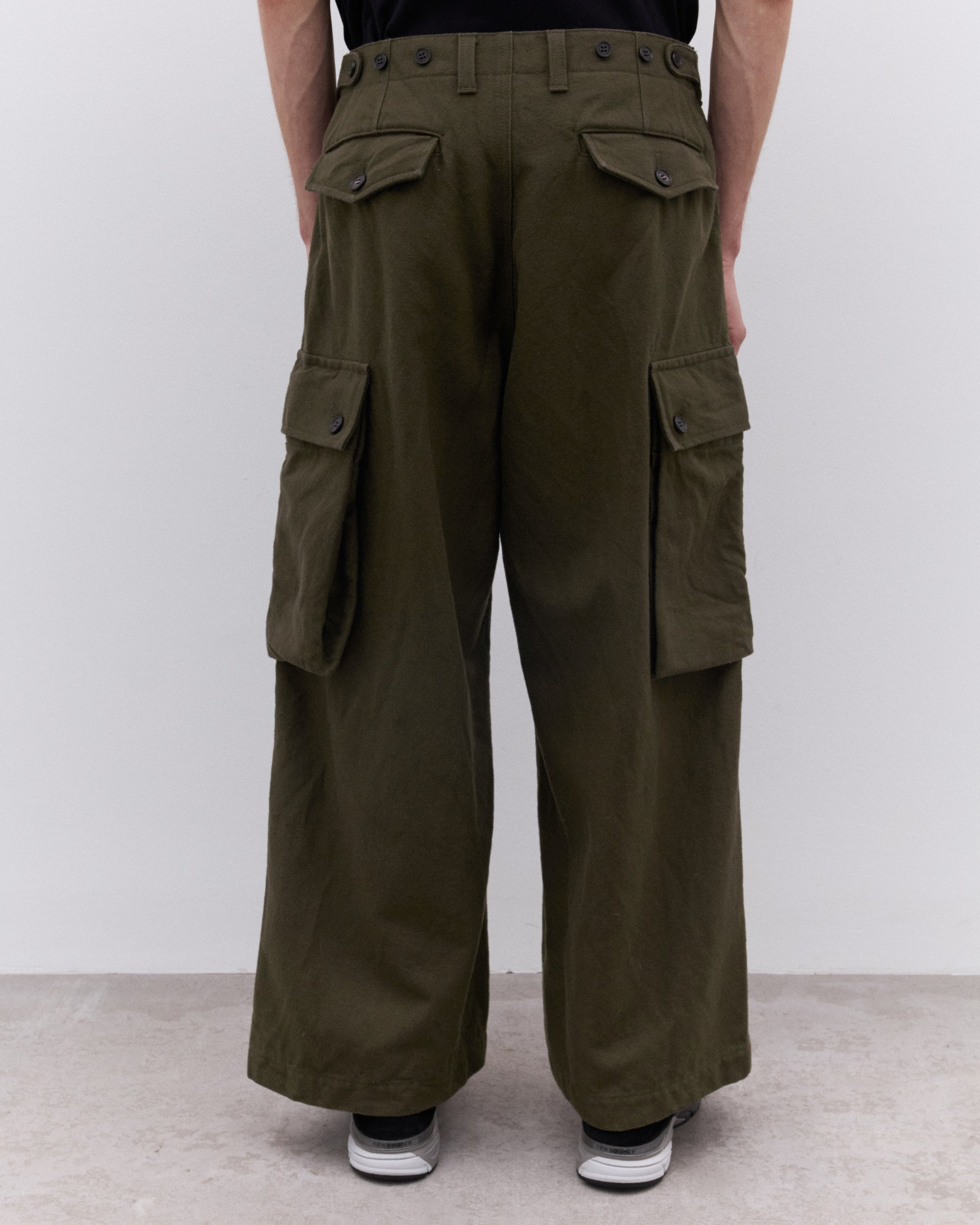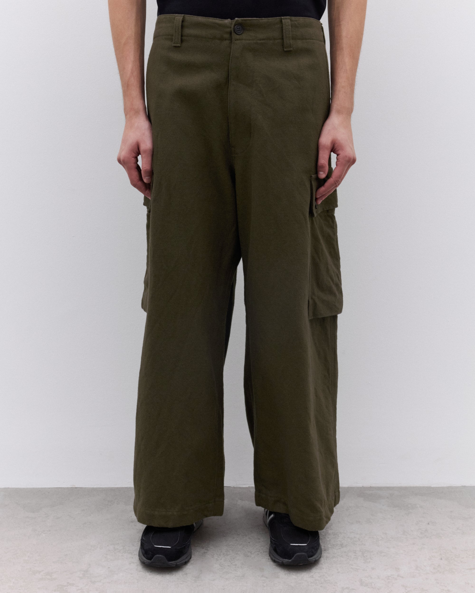Wide legButton flap pocketSide seam pocketsBelt loopsButton and zip fly fastening