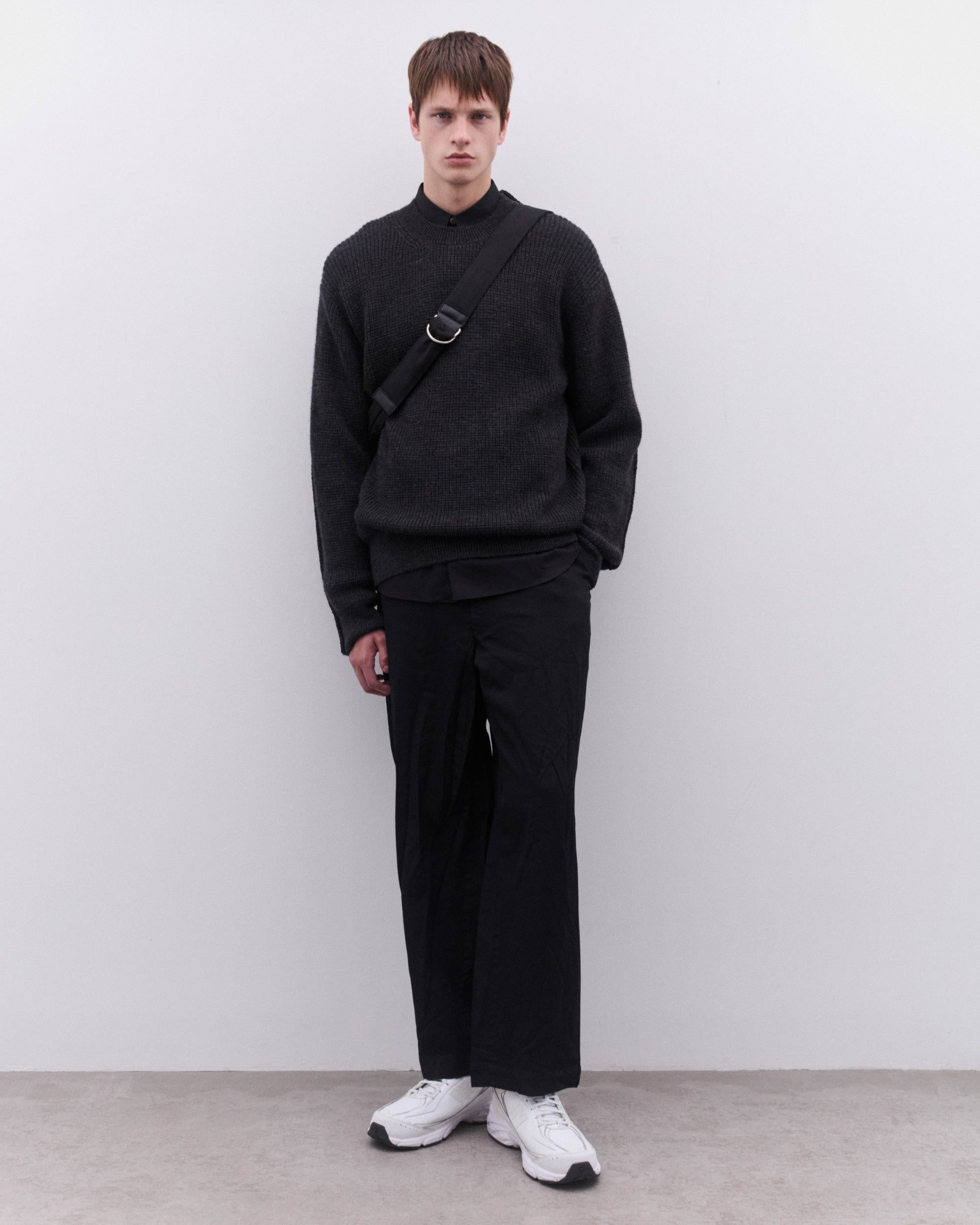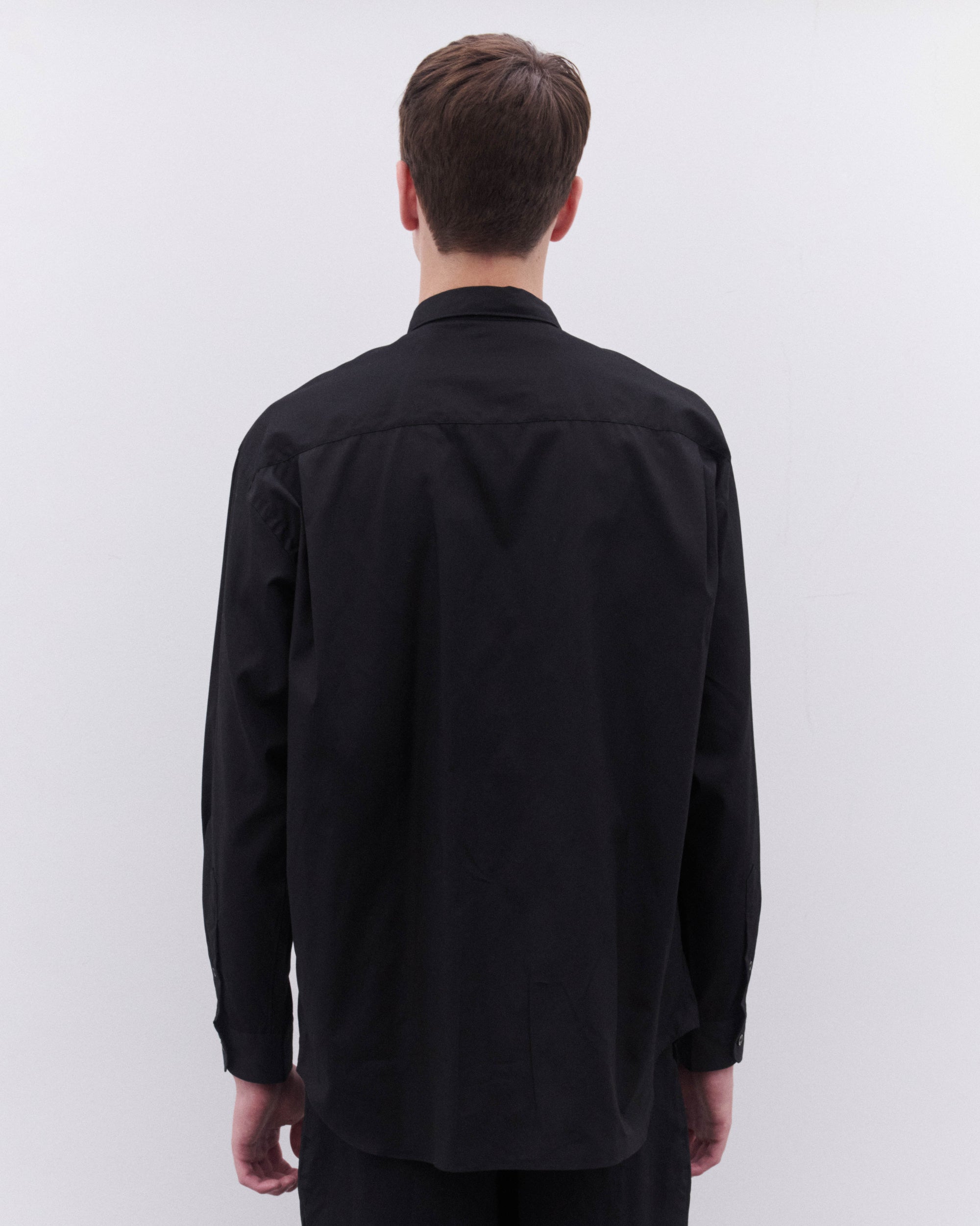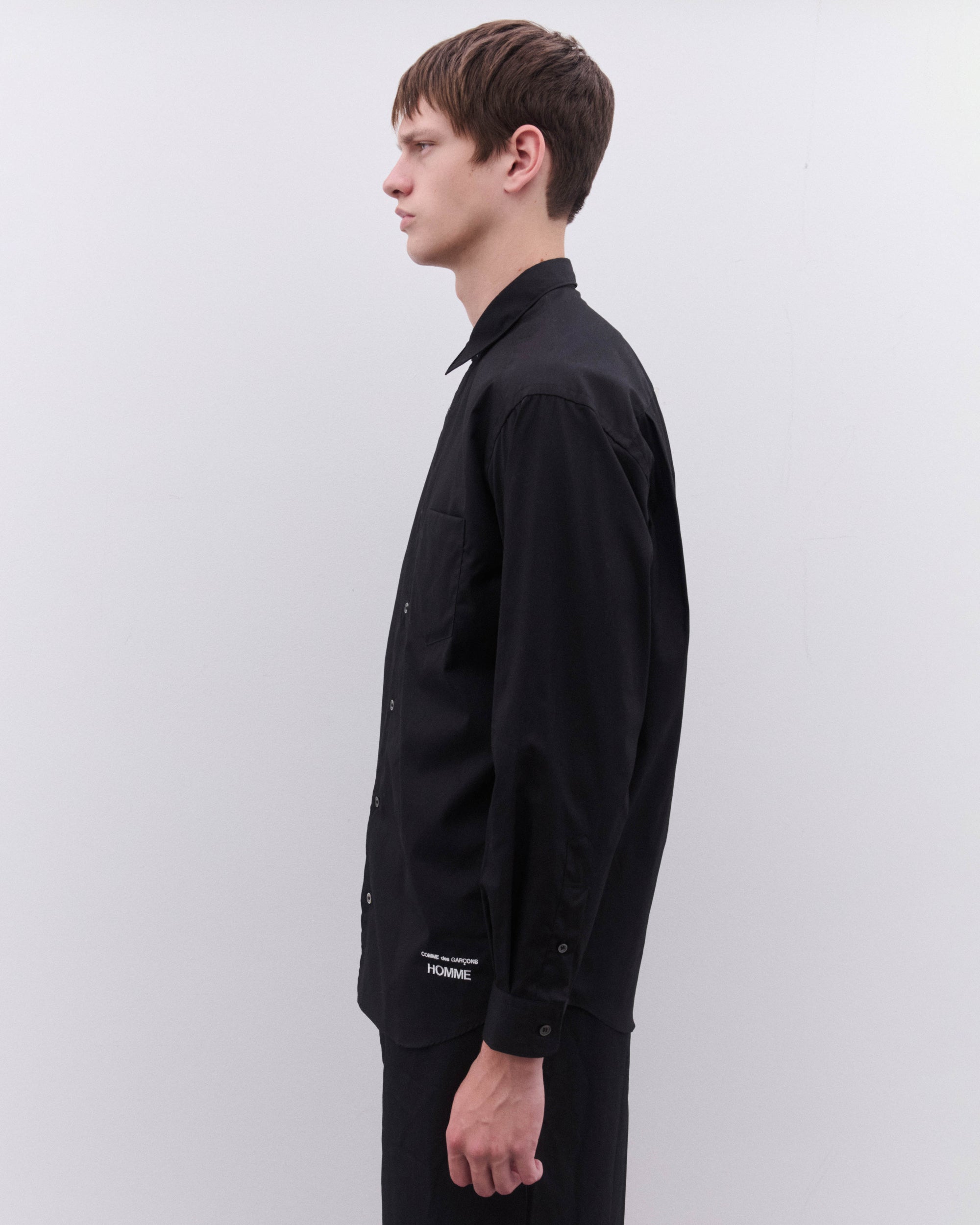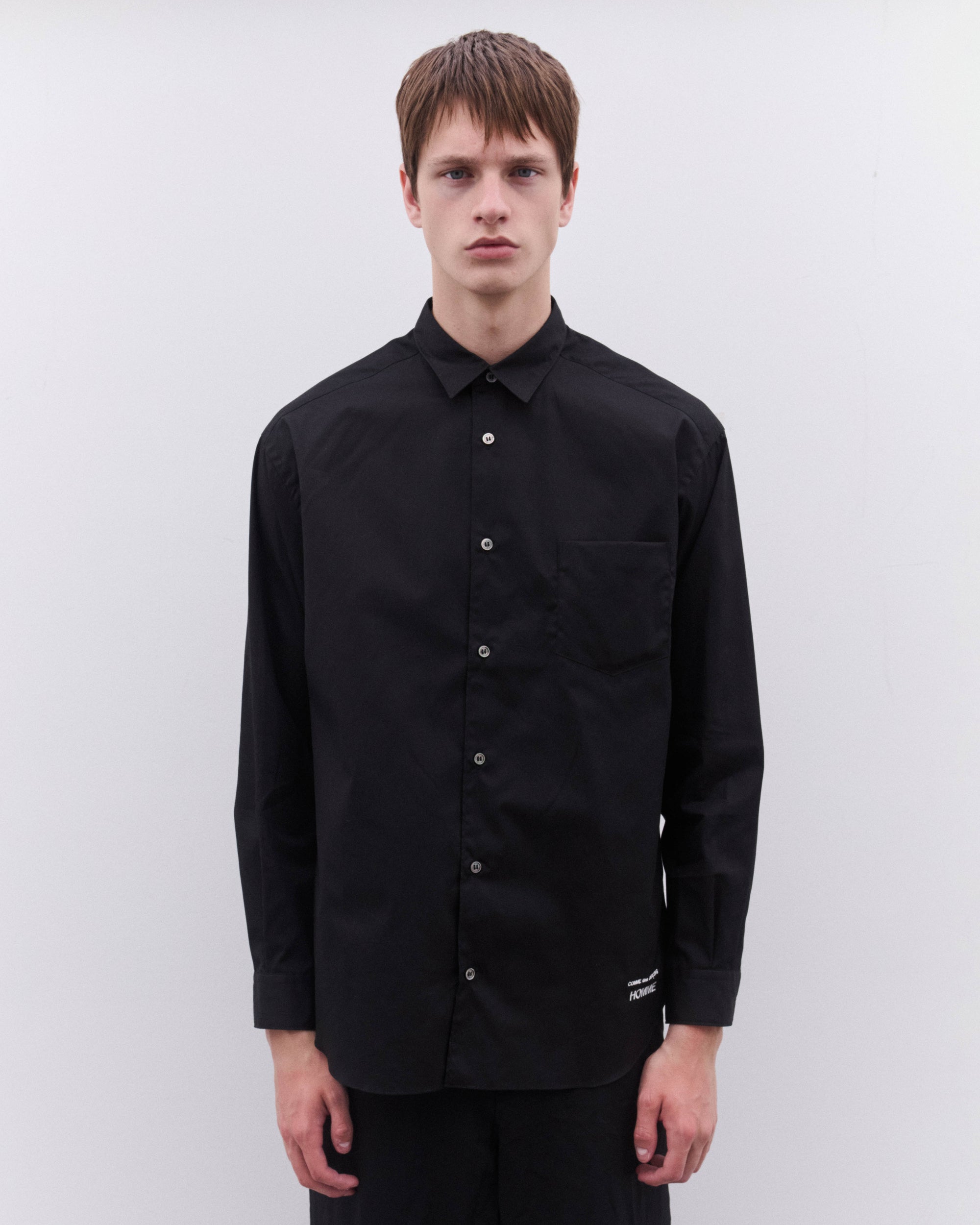 Point collarCurved hemPatch pocketButton placketButton cuffsPrinted logo at hem